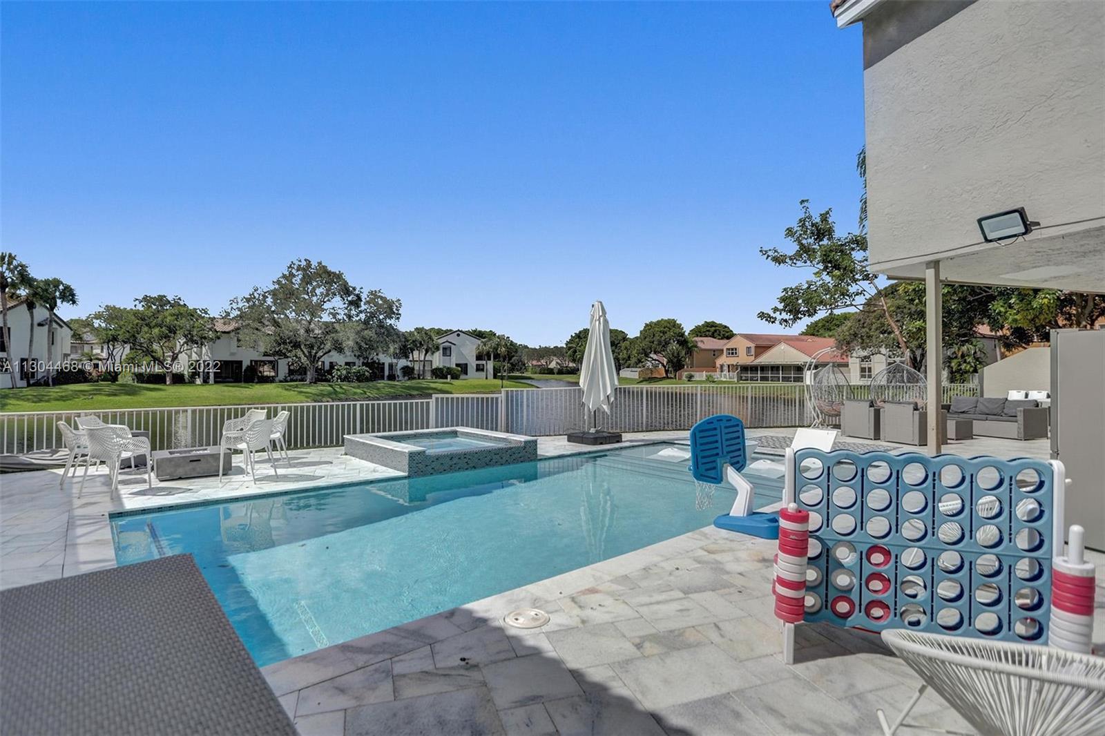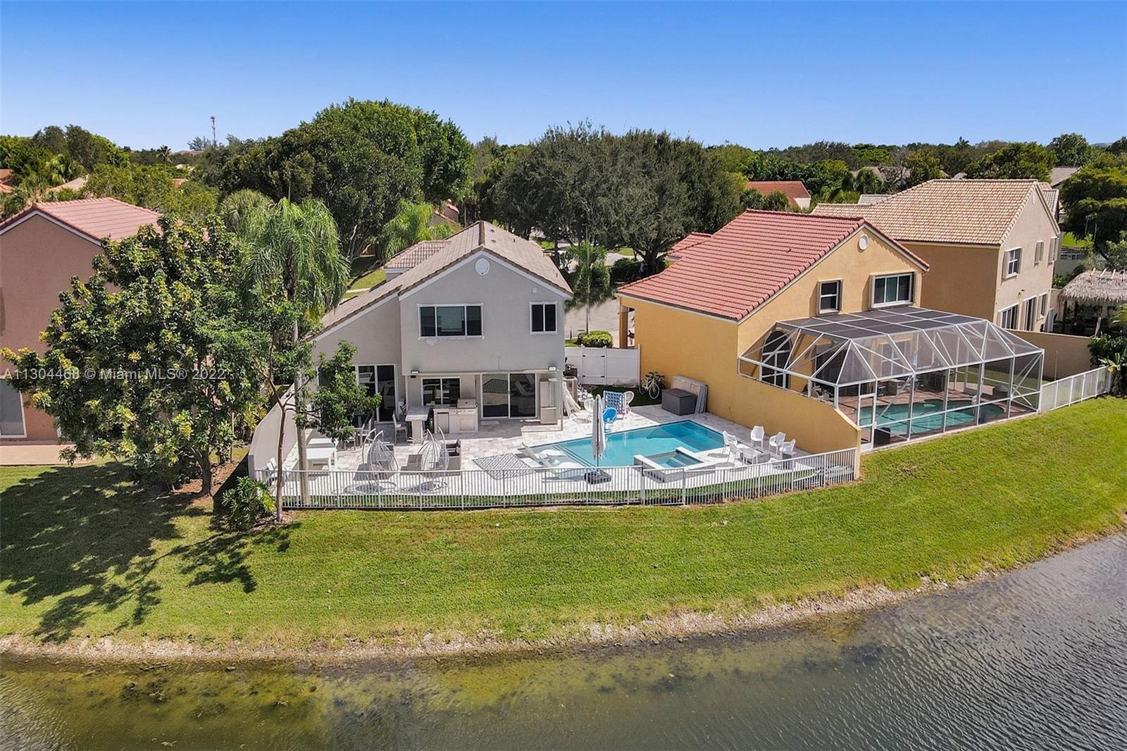 Fabulous Waterfront Pool Home in Mill Run Parkland. This 2,750 SQFT home is on a pie shaped lot and the largest in Mill Run. Brand new 2021 Modern heated pool and Jacuzzi overlooking the water with a sundeck. 1500 SQFT brand new Patio deck to enjoy and entertain. This house has 5 bedrooms and 2 and a half bathrooms. All bathrooms are beautifully remodeled with a modern touch. Additional playroom and office/ bedroom off of the garage. Brand new 2022 Hurricane impact windows. S.S Appliances, Upgraded bathrooms, High hats throughout the house, New Washer & Dryer, and Much More! Located in the city of Parkland within the a Grade A School District, and right across the Street from TERRAMAR Public Park. AA Rated public SchoolsHigh only 1 mile from the Chabad of Parkland.