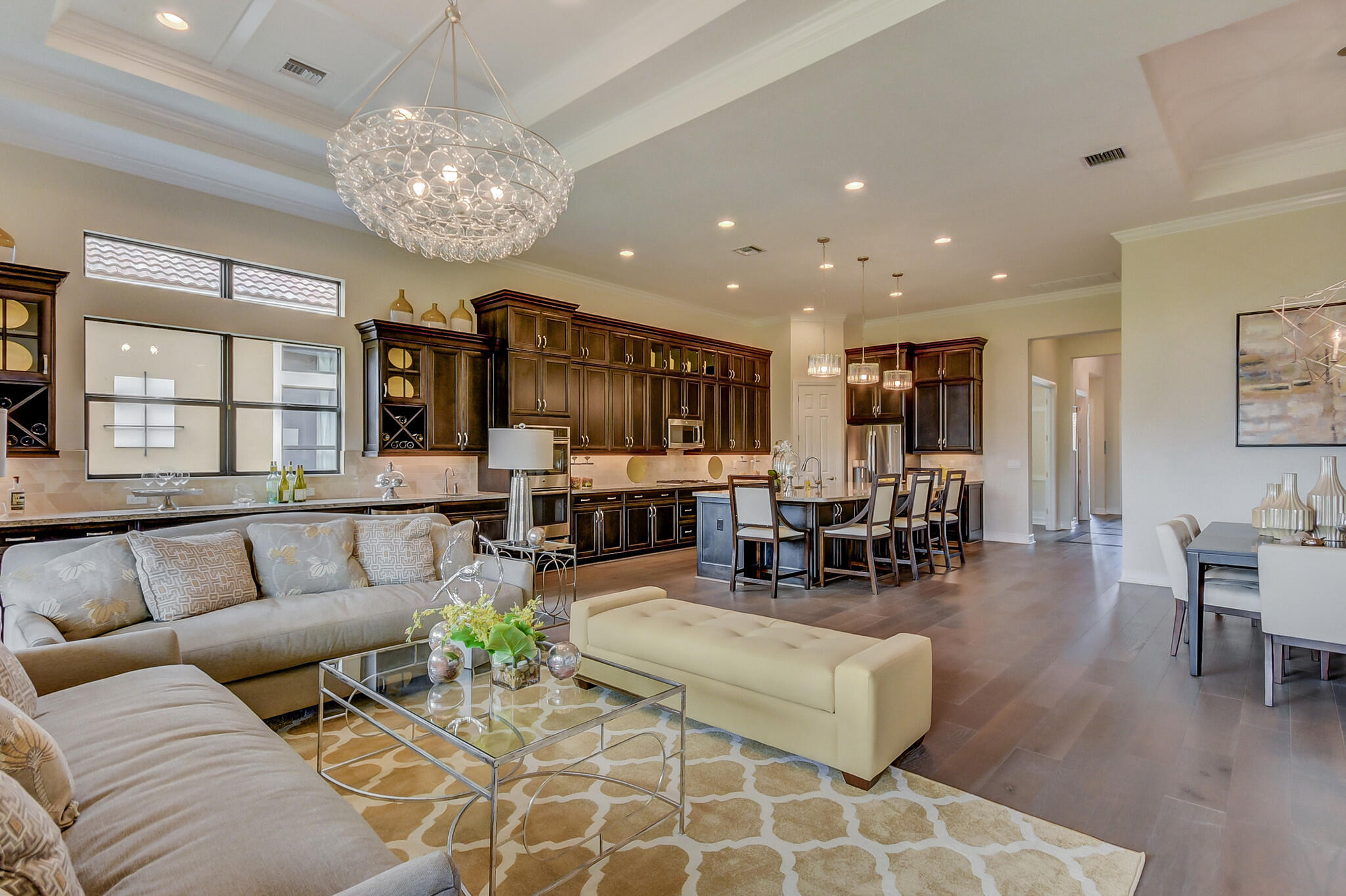 The Opal home design is a 1 story, 2 bedrooms, 2.5 Bath, 2 car garage. Gourmet-inspired kitchen and high-endfinishes, owner's ultra spa bath with frameless shower enclosure, great room with pocket sliding glass doors, GE stainless steel appliances, Coastal Bliss 7' Plank engineered hardwood floor throughout the home including in the bedrooms and 24 x 24 oversized tile in the bathrooms and laundry. Four Seasons at Parkland is an elegant master planned community that features luxury style homes situated around lakes and parklike settings. Community amenities include: clubhouse, tennis courts, pickle ball, bocce ball and 2 pools. Available December 2022.