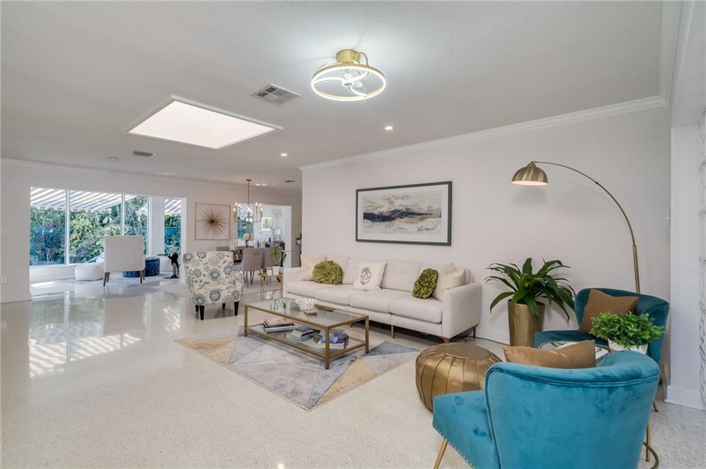 A perfectly placed corner lot in Coral Ridge, located in the much-desired Bayview school boundary;**2 bedroom plus Office/Den 2 bath. The office could easily be converted into the 3rd bedroom. This home has been recently renovated and finished throughout to high standards. It has an amazing large open floor plan set off by restored polished terrazzo floors. The floor-to-ceiling impact windows along with a large skylight bring in an abundance of light. The backyard offers privacy with a swimming pool, tropical landscape and generous yard space. A mosquito misting system, a newer roof replaced in 2017, and an AC unit and ductwork in 2020. This home is within biking distance to the beach, the Galleria Mall, and premier dining destinations. Catch your breath on this beauty!