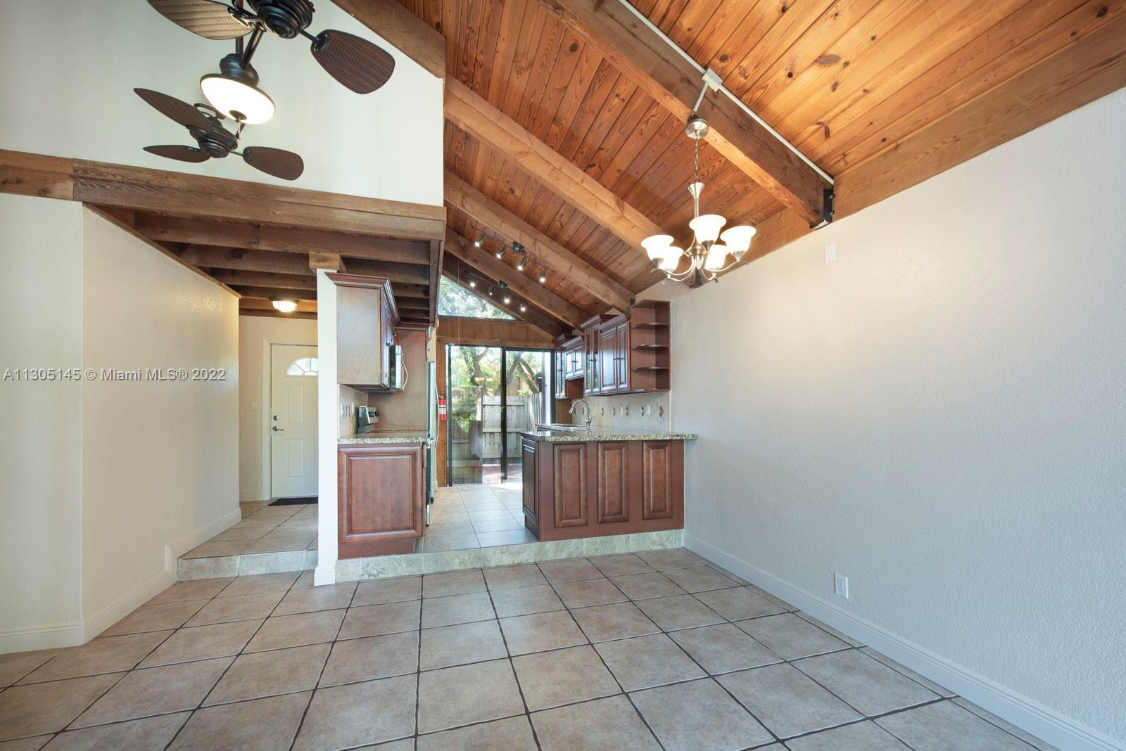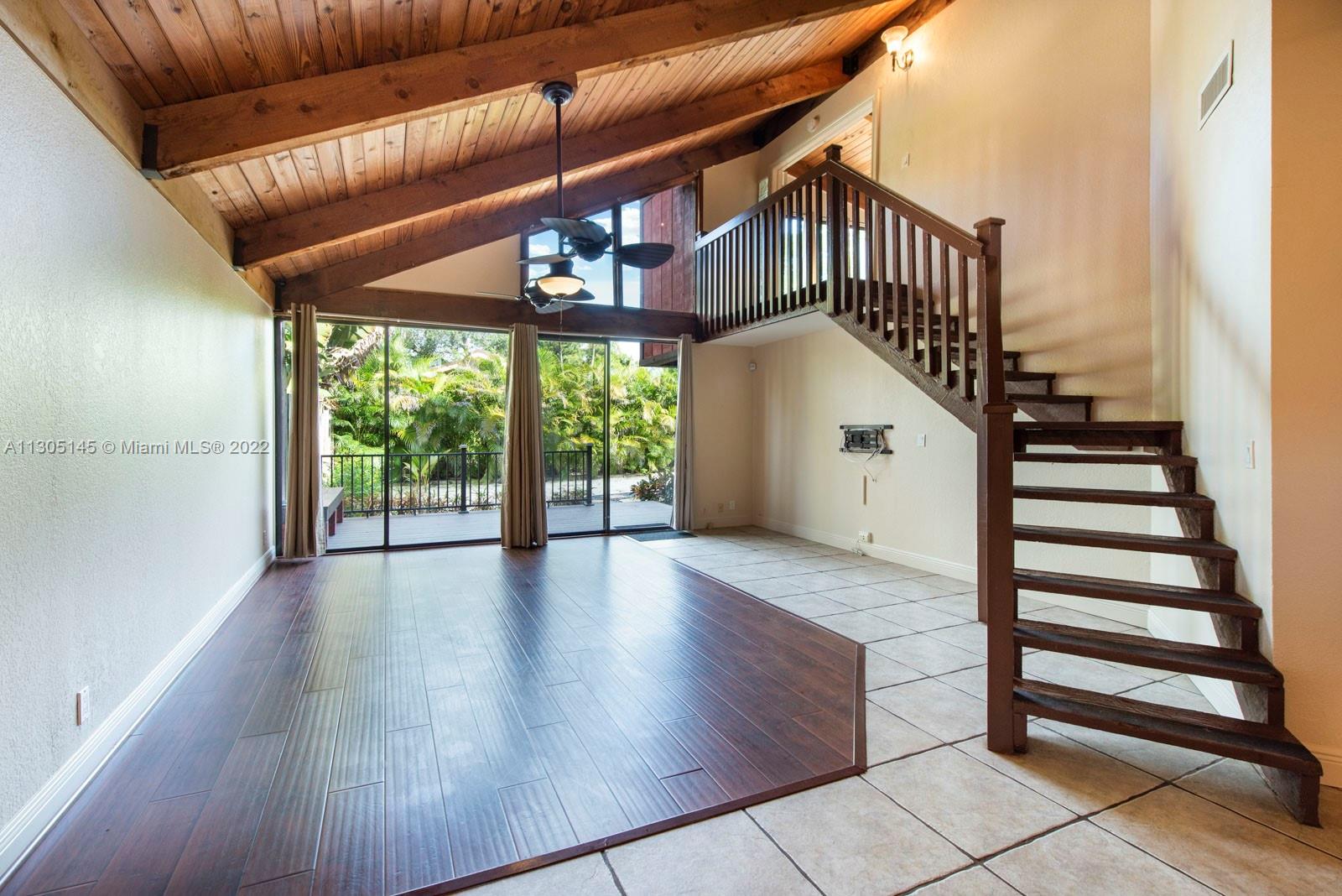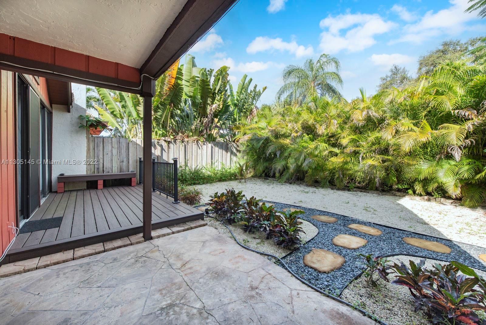 Rarely available bright townhome located on a large corner lot in Palm-Aire Villages! This spacious 3 Bedroom/2 Full baths home has dramatic chalet-like vaulted ceilings with beautiful views. Updated & move-in ready with an open kitchen featuring stainless steel appliances, beautiful granitite counter tops, & quality cabinets. The generously proportioned open layout also has a grand dining area. The primary bedroom suite features new double sinks and vanities in a generous-sized bathroom with an adjoining room for the potential of many uses. The inviting and private landscaped fenced yard has a high-quality composite Trex deck & a patio area with lots of room for unlimited possibilities. This beautiful tree-lined street is convenient to I-95, Turnpike, & Fort Lauderdale Executive Airport.