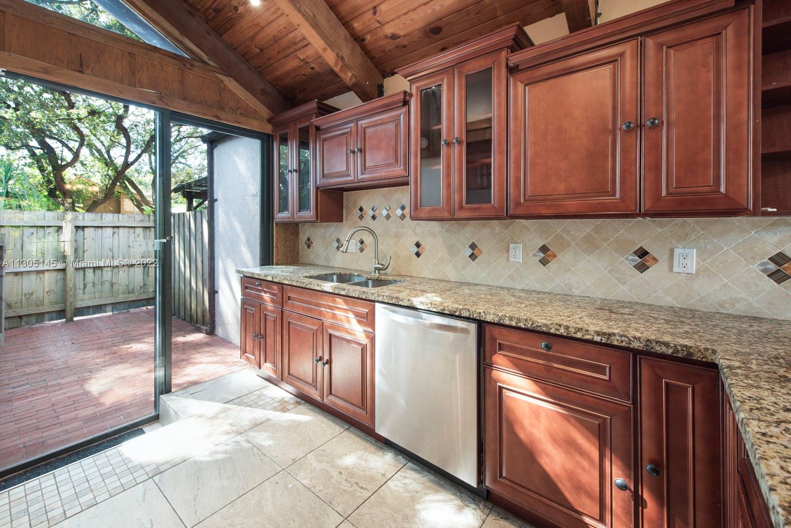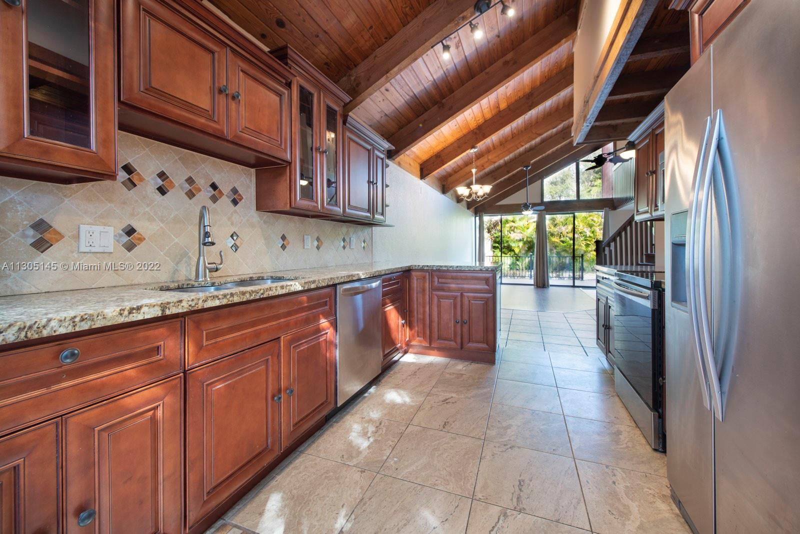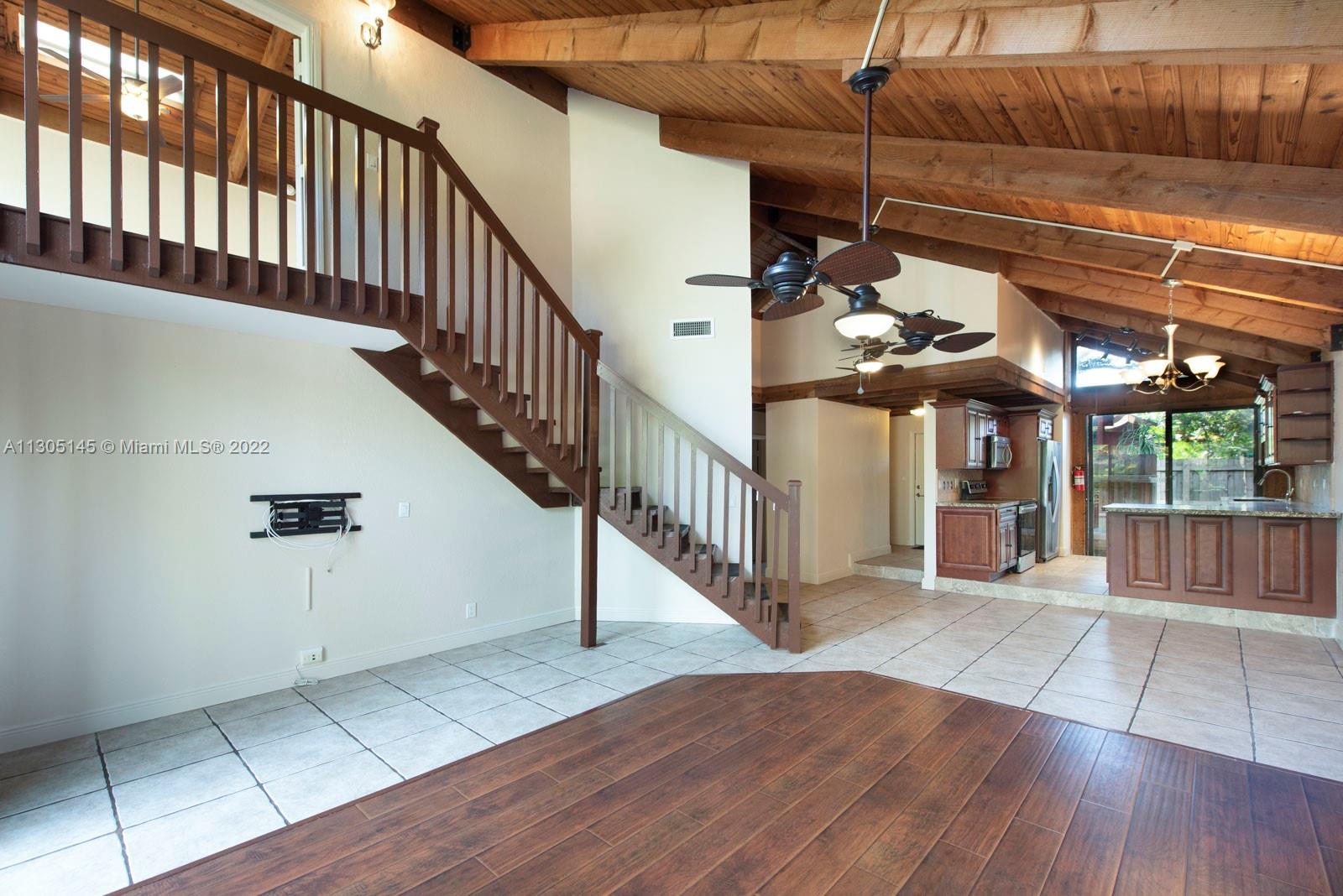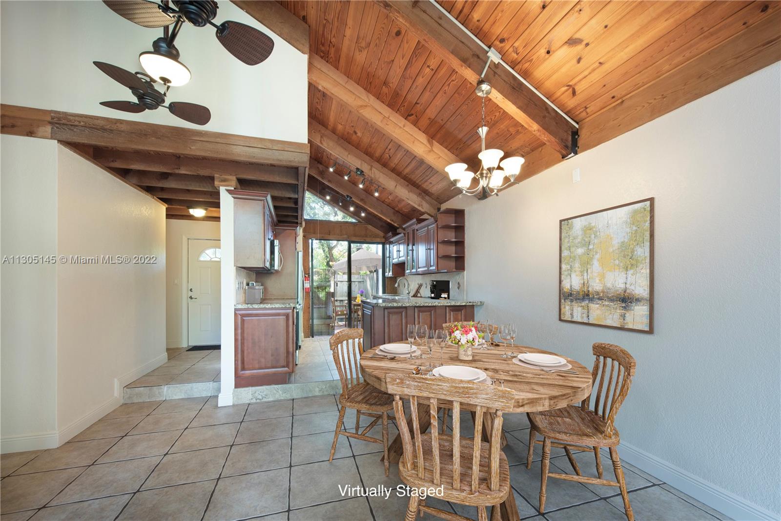 Rarely available bright townhome located on a large corner lot in Palm-Aire Villages! This spacious 3 Bedroom/2 Full baths home has dramatic chalet-like vaulted ceilings with beautiful views. Updated & move-in ready with an open kitchen featuring stainless steel appliances, beautiful granitite counter tops, & quality cabinets. The generously proportioned open layout also has a grand dining area. The primary bedroom suite features new double sinks and vanities in a generous-sized bathroom with an adjoining room for the potential of many uses. The inviting and private landscaped fenced yard has a high-quality composite Trex deck & a patio area with lots of room for unlimited possibilities. This beautiful tree-lined street is convenient to I-95, Turnpike, & Fort Lauderdale Executive Airport.