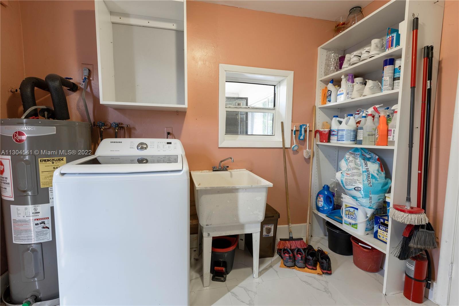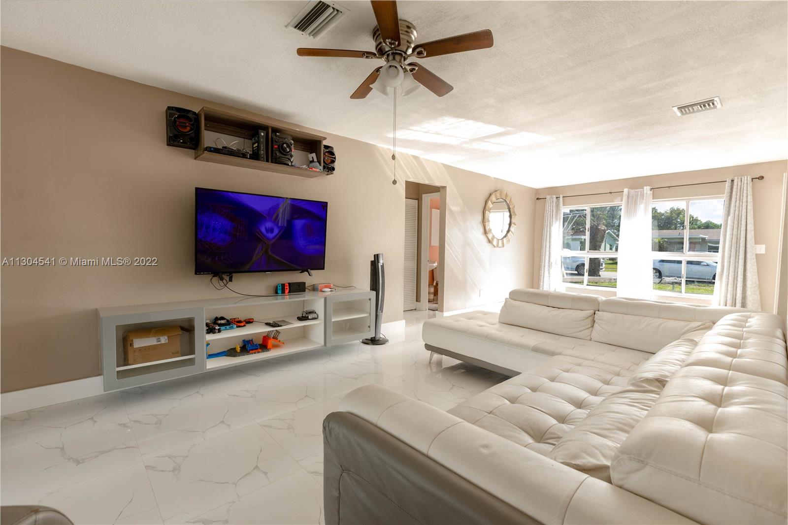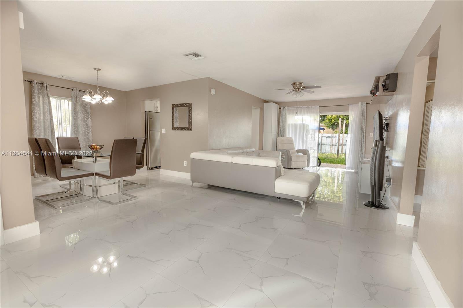 Recently painted interior with beautiful tile throughout. Dinning area overlooks the living room and kitchen. HVAC system and water heater were replaced 3 years ago. Very spacious laundry room with new washer and built in storage cabinets. Large fenced yard with plenty of space to expand or add a pool. Carport and driveway can easily accommodate 5+ cars.