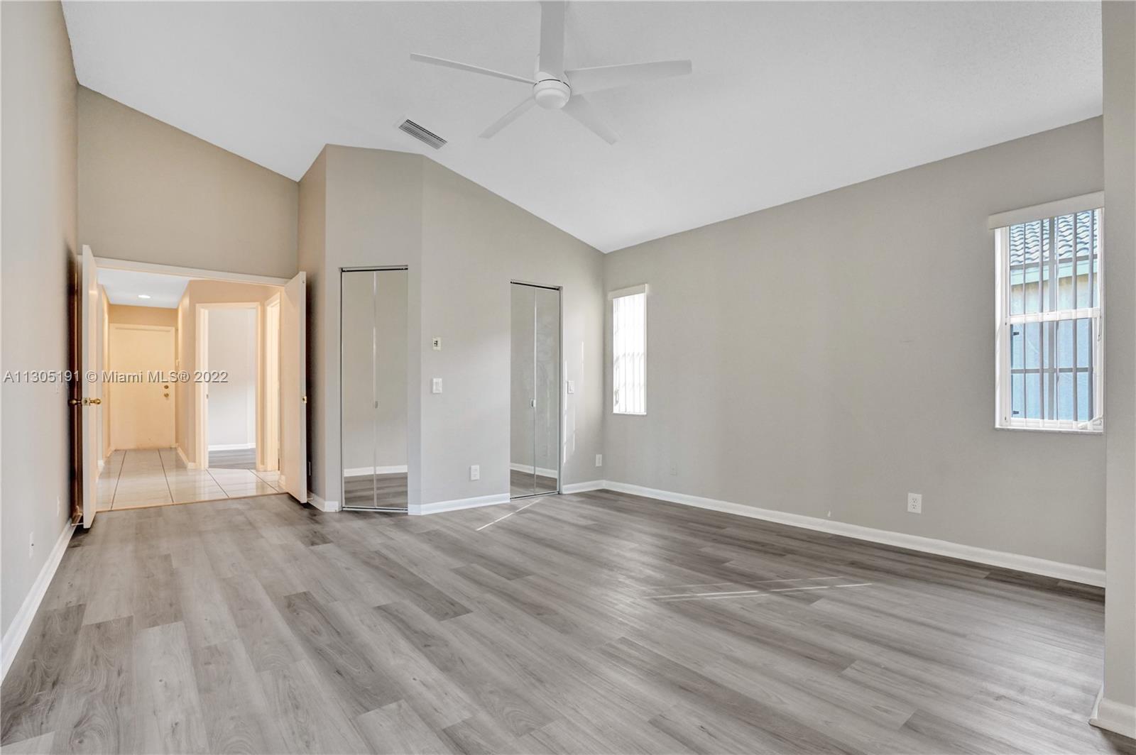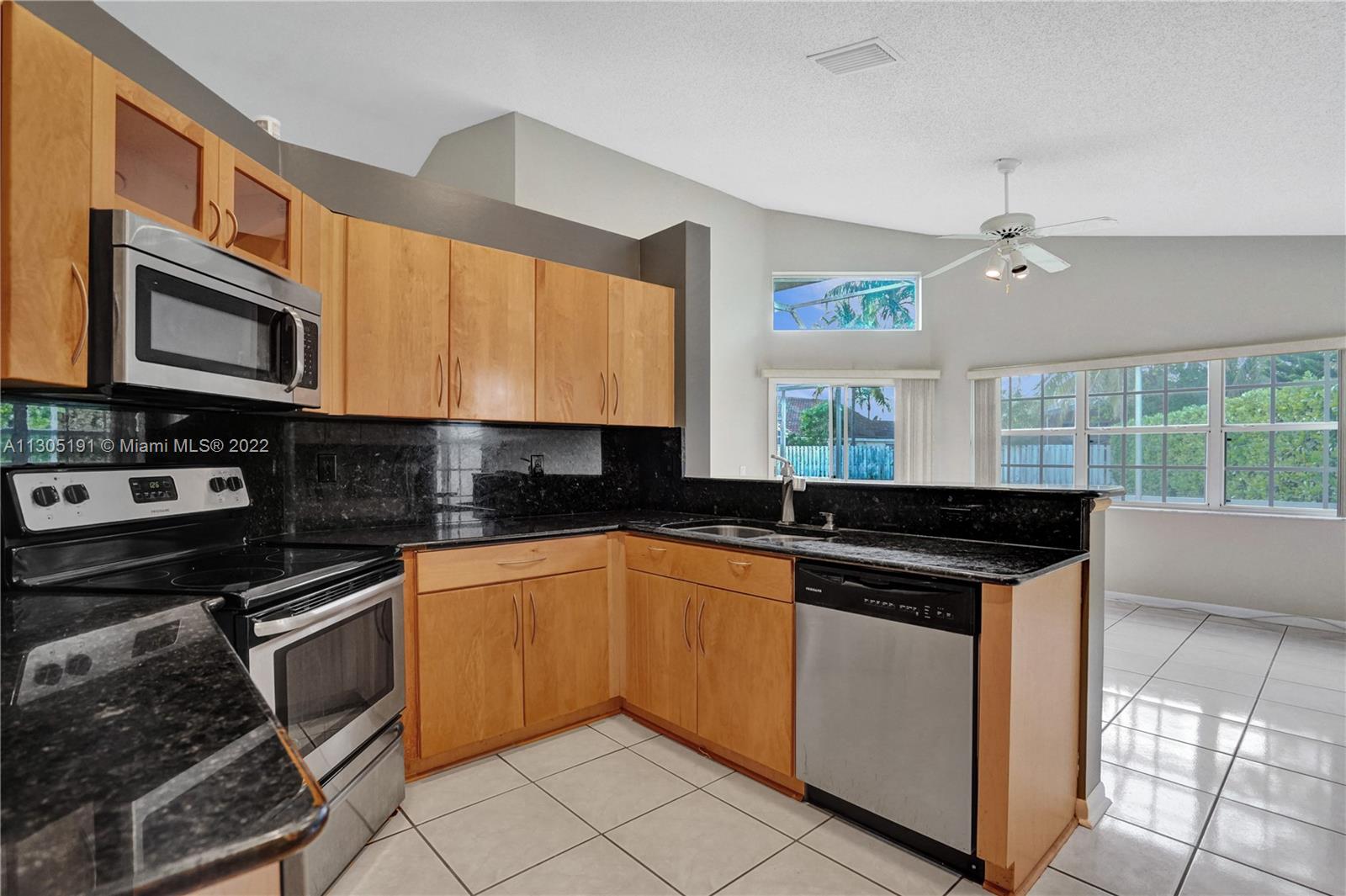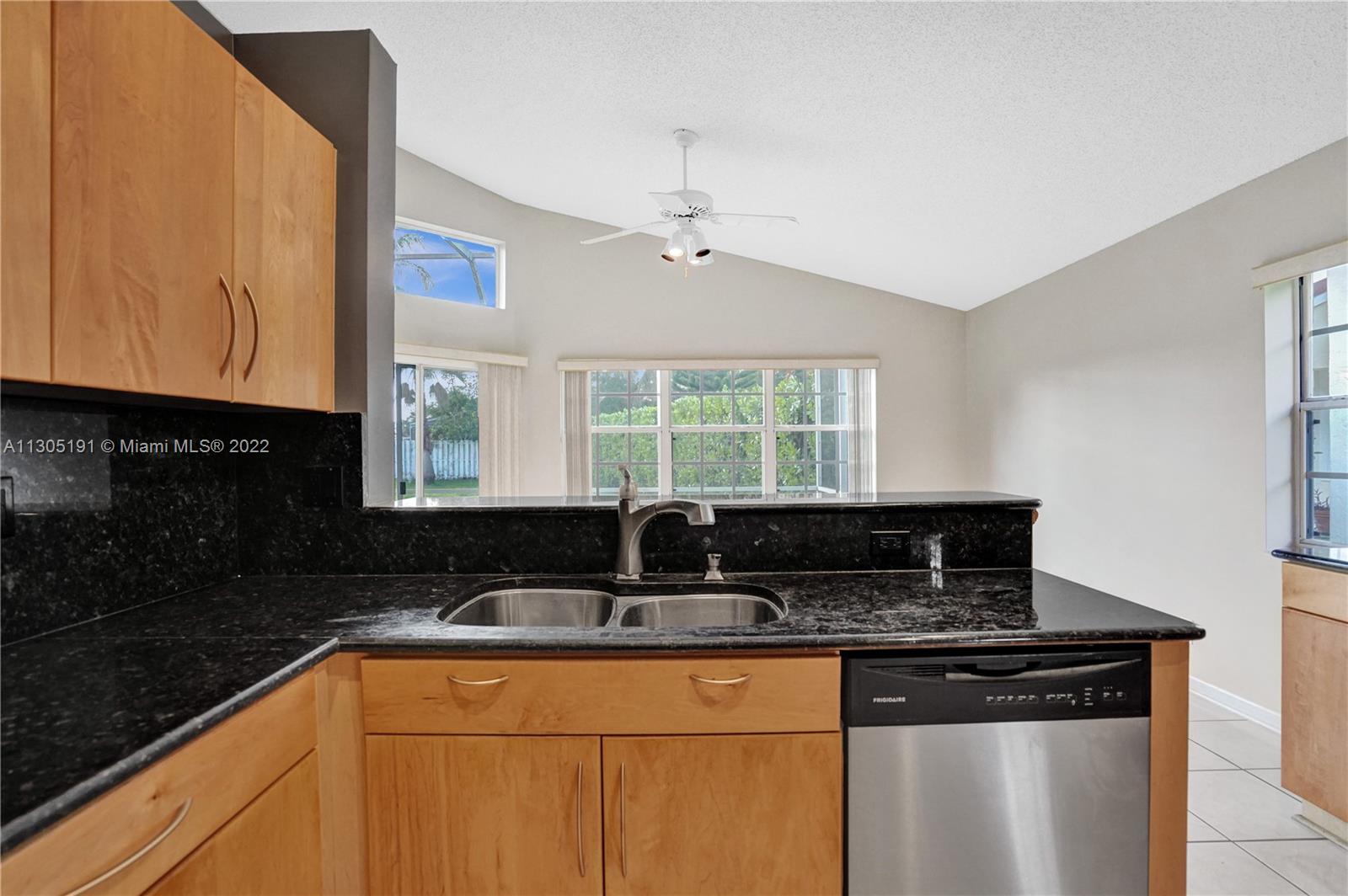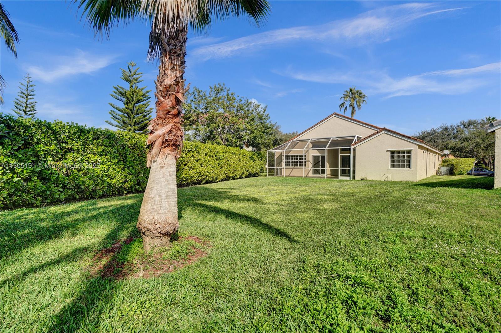 Very large 4/3 one story home on a huge 10,000 sf corner lot. Light and bright home that truly shows great with a nice open floor plan and high cathedral ceilings. Ceramic tile flooring in main areas and new laminate flooring in bedrooms. All bathrooms have been beautifully remodeled. Upgraded kitchen with granite, wood cabinets and newer stainless steel appliances. Big covered screened patio and a huge backyard with room for a pool. Great neighborhood with community pool, A-rated schools and close to shopping and restaurants. Will not last!