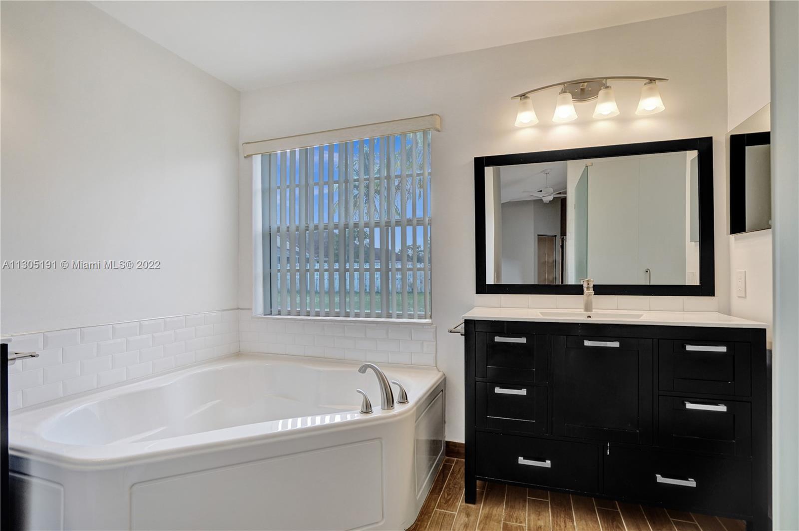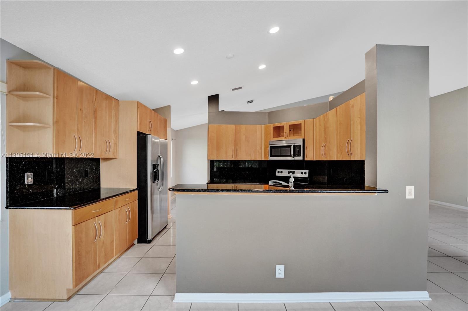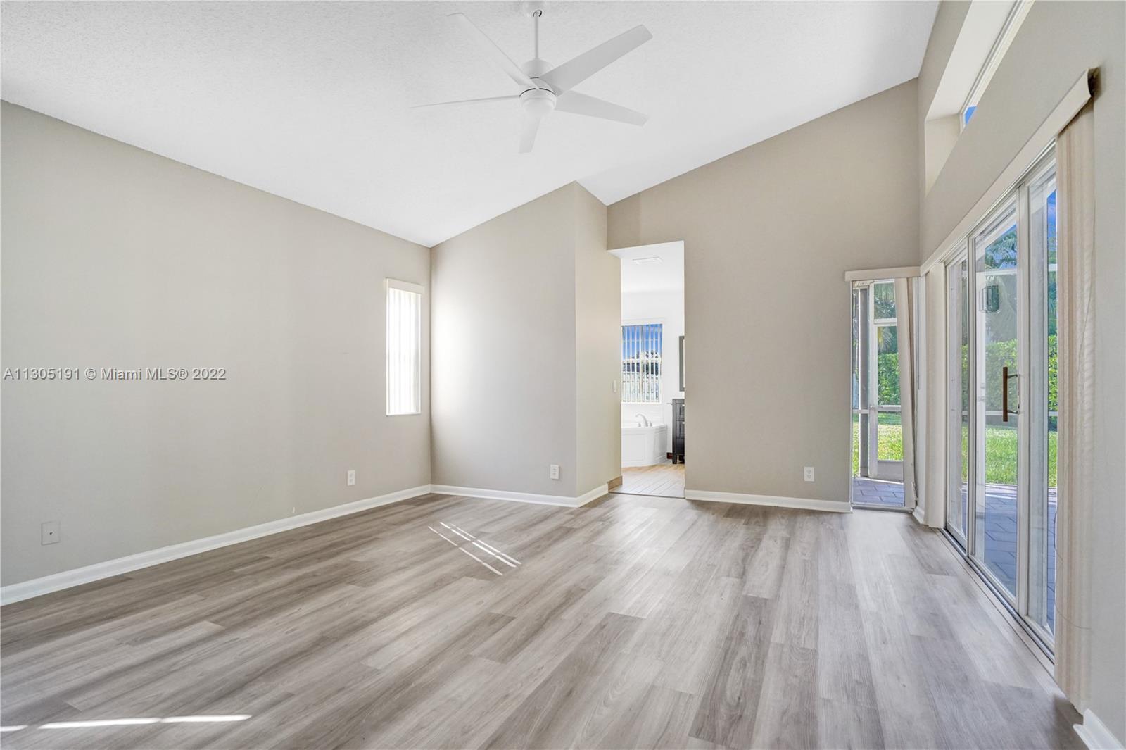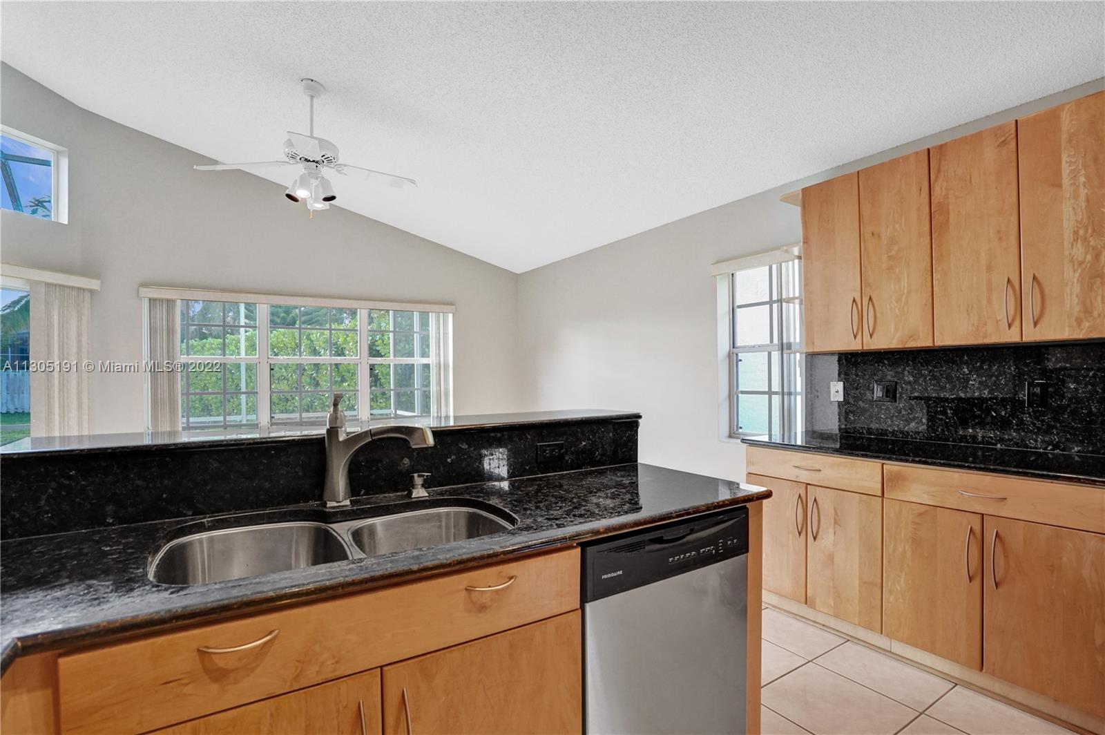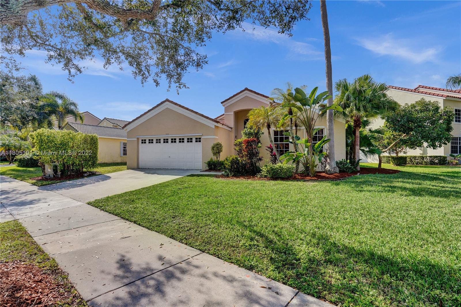 Very large 4/3 one story home on a huge 10,000 sf corner lot. Light and bright home that truly shows great with a nice open floor plan and high cathedral ceilings. Ceramic tile flooring in main areas and new laminate flooring in bedrooms. All bathrooms have been beautifully remodeled. Upgraded kitchen with granite, wood cabinets and newer stainless steel appliances. Big covered screened patio and a huge backyard with room for a pool. Great neighborhood with community pool, A-rated schools and close to shopping and restaurants. Will not last!