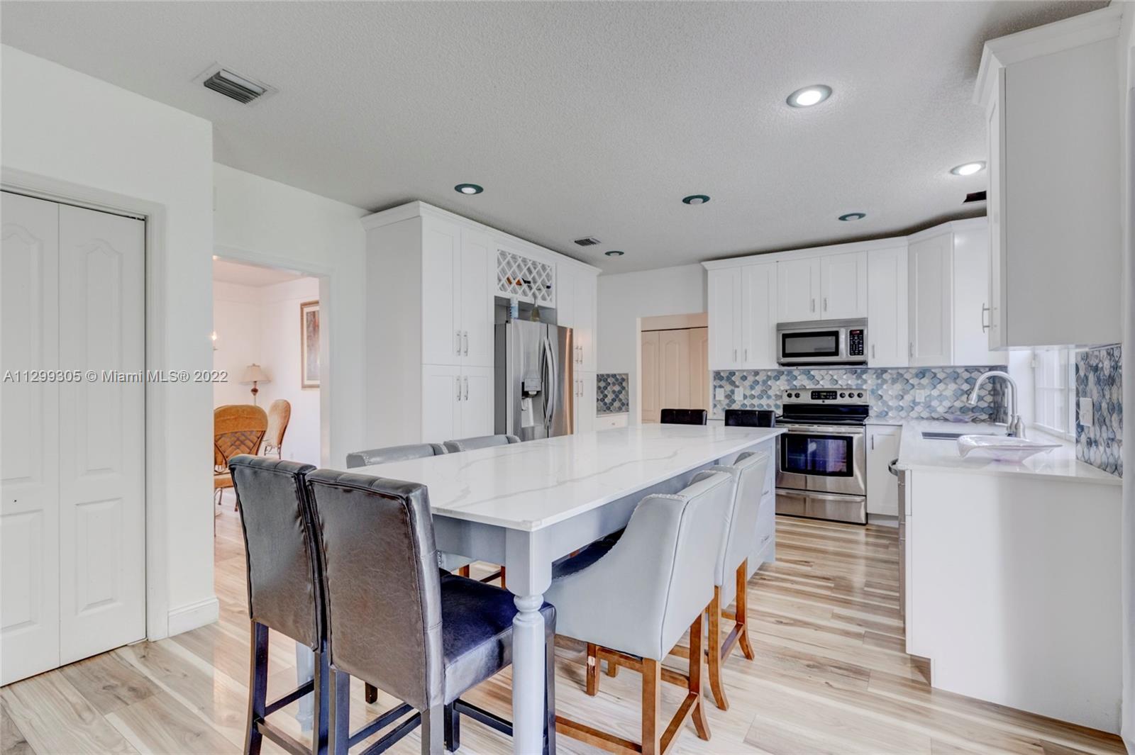 Gorgeous, Pulte built, bright, open concept home w/ northern curb appeal on a quiet cul-d-sac street, on premium lot, backing up to quiet nature preserve in Coral Springs guard gated community. Beautifully updated large kitchen w/ shaker cabinets, quartz counters, stainless appliances & huge center island w/ seating. 4 large bedrooms + bonus office space, primary bedroom overlooking backyard w/ large sitting area & oversized closet & bathroom. 2 updated modern bathrooms. Wood flooring upstairs. Screened patio overlooking mature trees. 2012 Barrel Roof. Large 2.5 car garage for 2 cars + extra storage (enough room for a golf cart). Panel shutters. Tons of Closets. Amazing neighbors. Central Coral Springs location near Target, Fresh Market, Coral Springs High, Turnpike, 441 & University Dr.