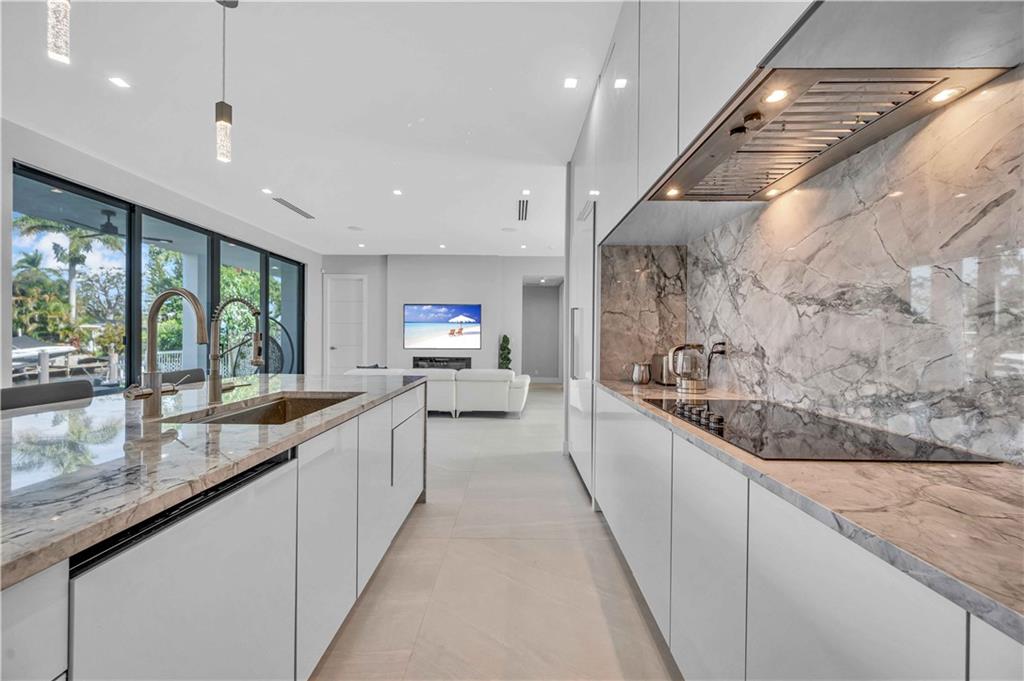 New construction ultra-luxurious waterfront home. This home is clean, fresh, and modern, with so many upgrades. There are 4 beautiful ensuite bedrooms. The main bedroom is elegant, with a lovely sitting area and a walk-out patio overlooking the water for your ultimate relaxation. It also includes a kitchenette, 2 large his and hers walk-in closests with full cabinetry, and an oversized bathroom with double sinks, a huge shower, and a tub. The gourmet kitchen features all Jen Air appliances, a Spartan hot and cold water filtration system, Stunning Quartz Super White countertops, and Island. The floor is Italian porcelain throughout. Outdoor living includes a patio and a covered summer kitchen. For your boat, you have 65' of new dockage with an updated seawall.