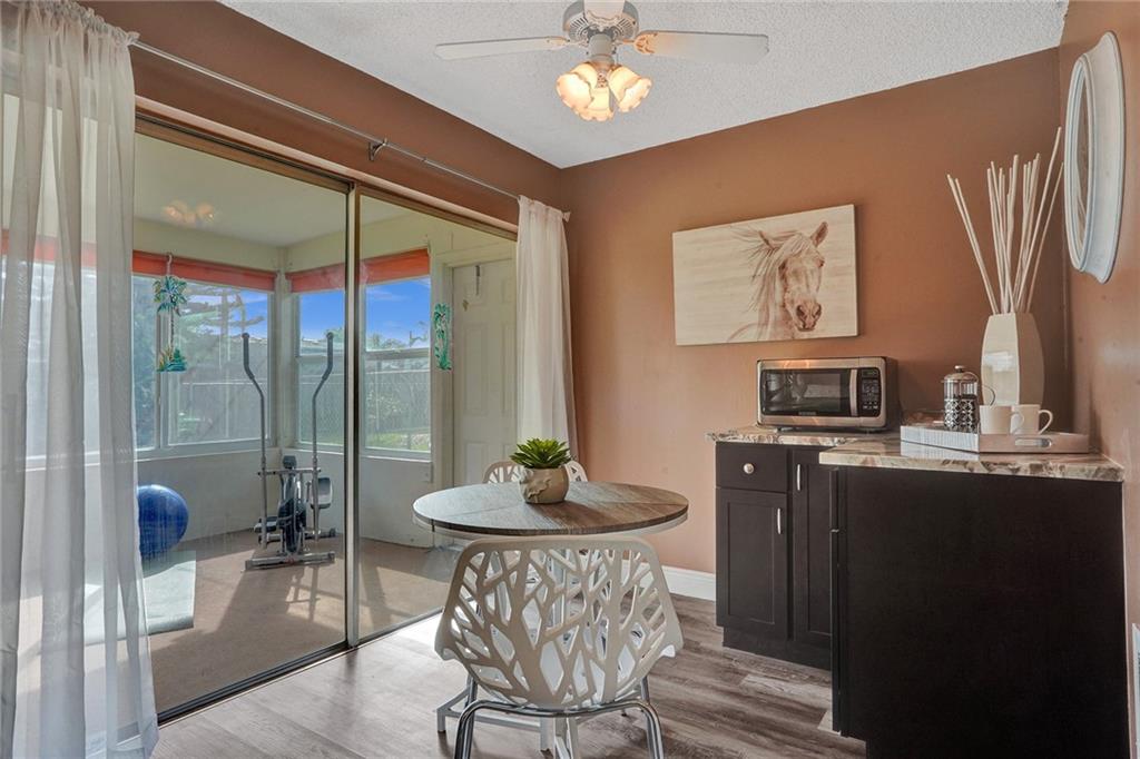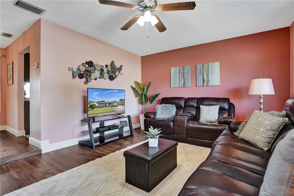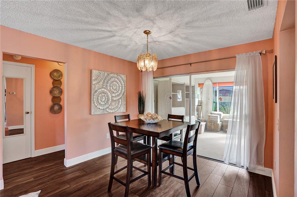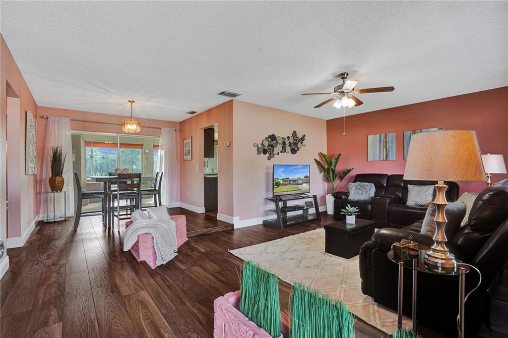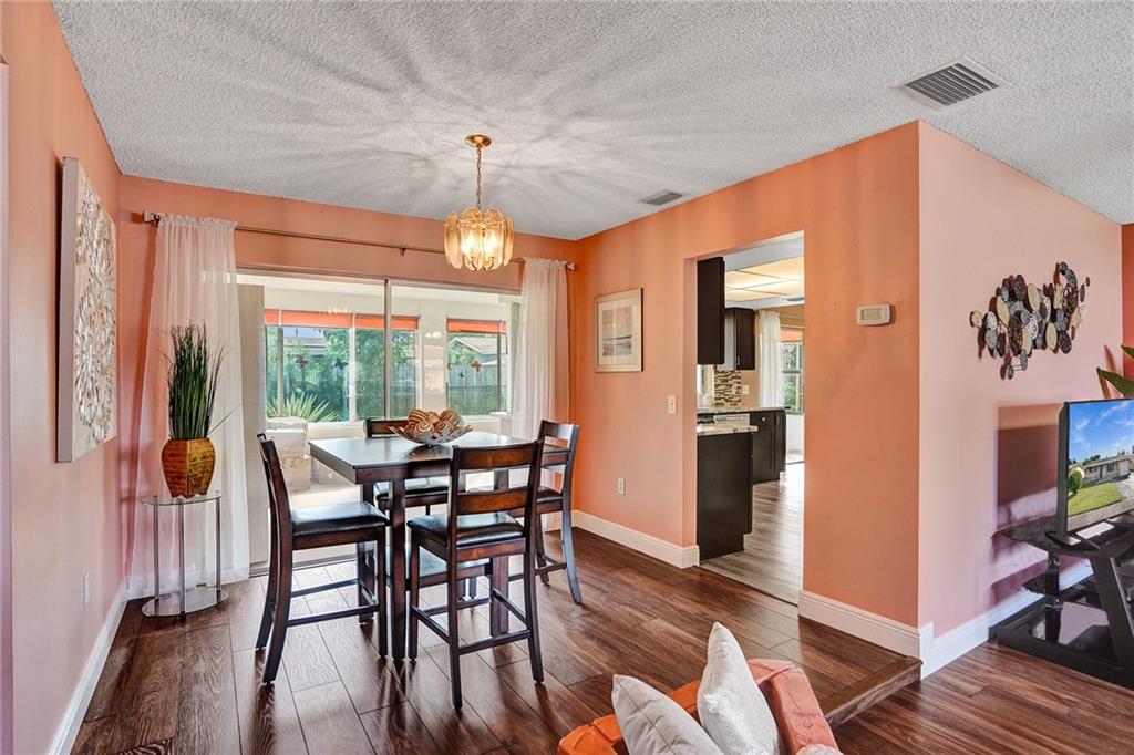 Price adjustment! You will be AMAZED! A contemporary charmer with valuable upgrades. Enjoy a casual front porch at your entrance. Neutral wood-like flooring throughout social areas, bedrooms and closets. Make room for big screen in large comfortable living room. Lovely dining area convenient to incredible kitchen offering rich shaker cabinets, granite counters, SS appliances. Relaxed eat-in nook. Very spacious primary en suite bedroom nicely updated. Second bedroom suitable for office, guest room, nursery, media. Renovated second bath. Big, cheerful, versatile, sun-filled Florida room conversion. No HOA. Complete impact windows, one-car garage and terrific location, makes this home a perfect choice for you!