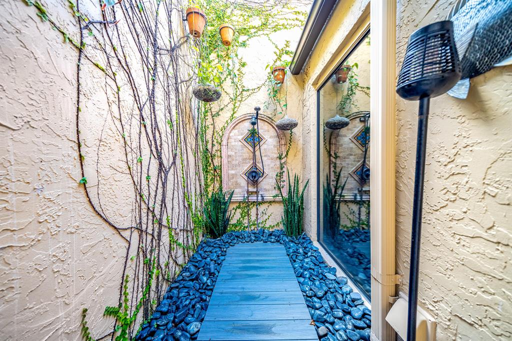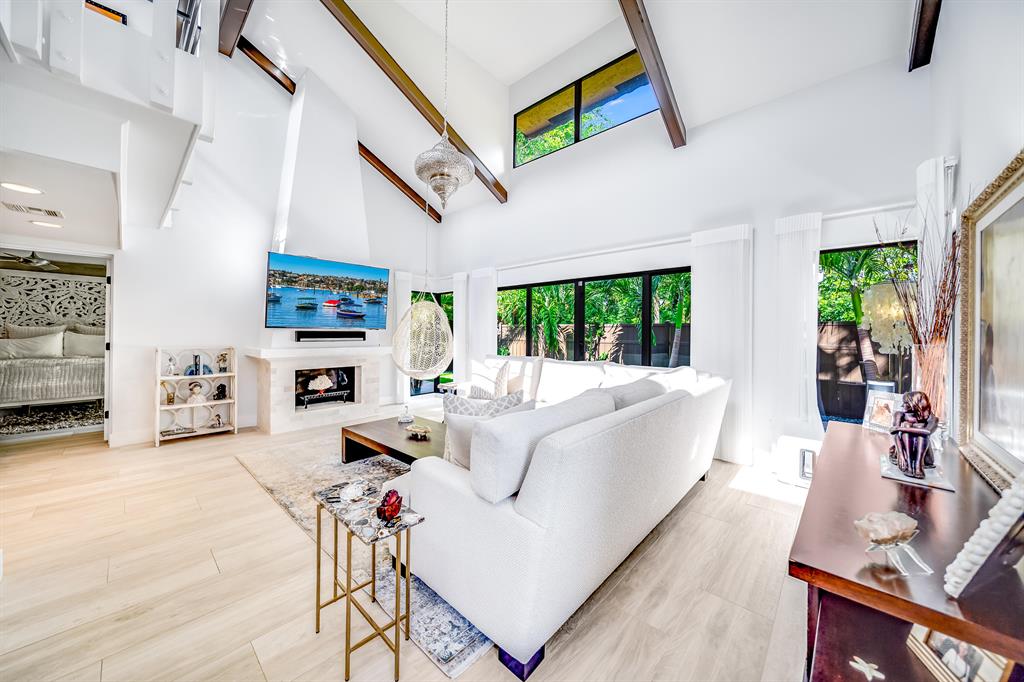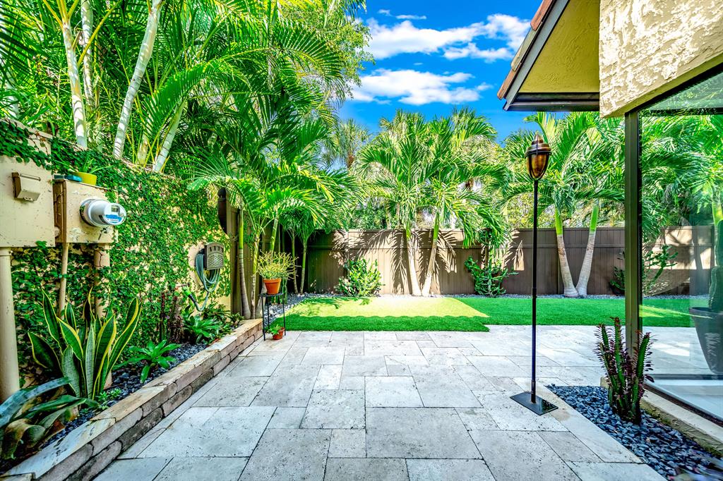One-of-a-kind opportunity to own this rare beautiful hidden gem in Boca Raton. This townhouse sits at the end of a Cul d sac, and is totally renovated with custom light fixtures throughout by Clive n Daniel, 20x48 Italian Porcelain tiles, all Hunter Douglas ''Luminette Solar Privacy Sheers'', modern fans, (2) Halo Anti-Bacterial units on the 2 zone A/C system. The open floor plan flows out onto the private patio with a saltwater/heated pool, that is surrounded by exotic/cactus landscaping, lava rocks, faux grass and fountain with custom outdoor lighting. Upstairs you can relax and unwind on the private porch/balcony or downstairs in the outdoor tropical shower .