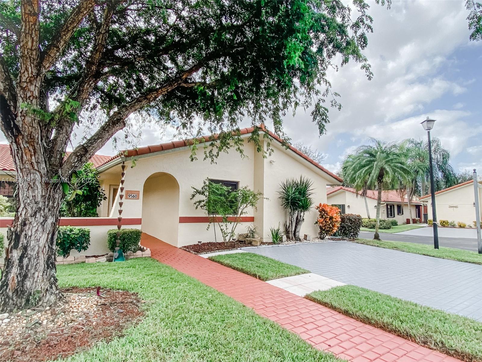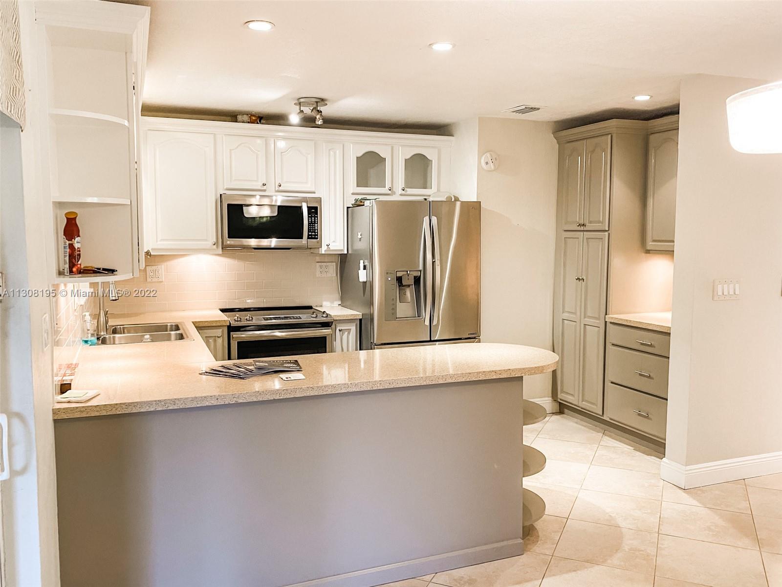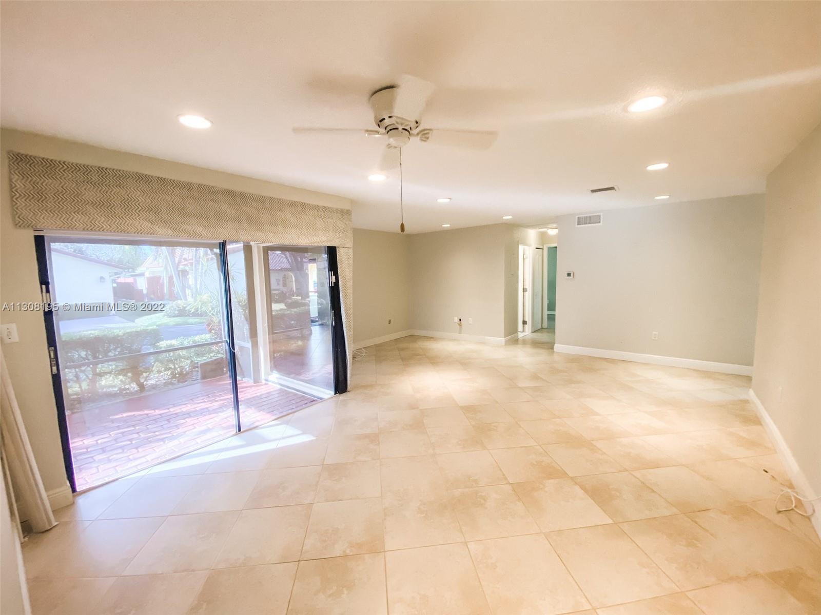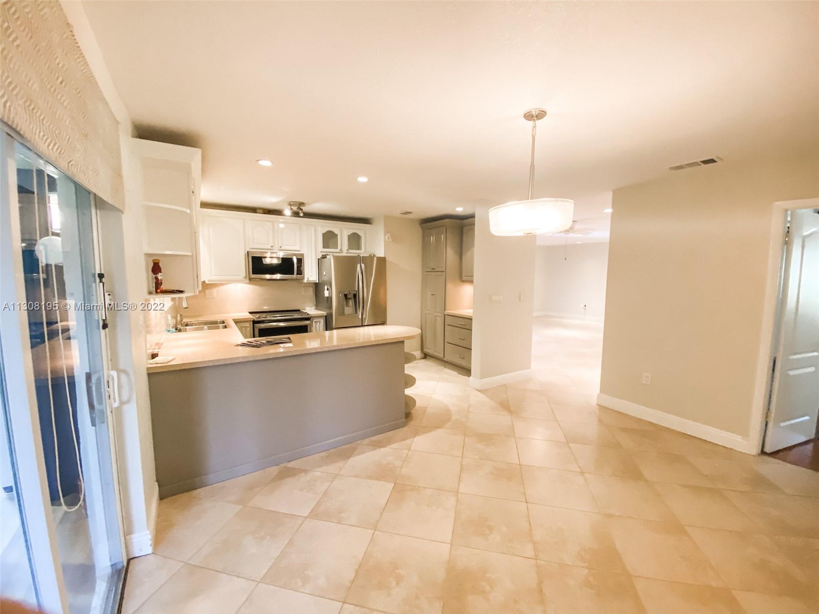 Rarely available 1 story, 3 bedroom, corner unit in Alhambra Circle! Updated kitchen with newer stainless appliances and quartz counter-tops, neutral tile throughout, hall bathroom is handicap accessible, split floorplan, 1 screened-in porch and 1 enclosed sun-room give additional living spaces. All units in this development have new exterior paint on buildings, walk-ways and driveways. Membership to Pine Island Ridge Country Club included in HOA. Country Club features include swimming pool, restaurants, pool table, exercise room, tennis, bbq area, playground, entertainment and shows, meeting and card rooms, Bocce Court, and Golf.