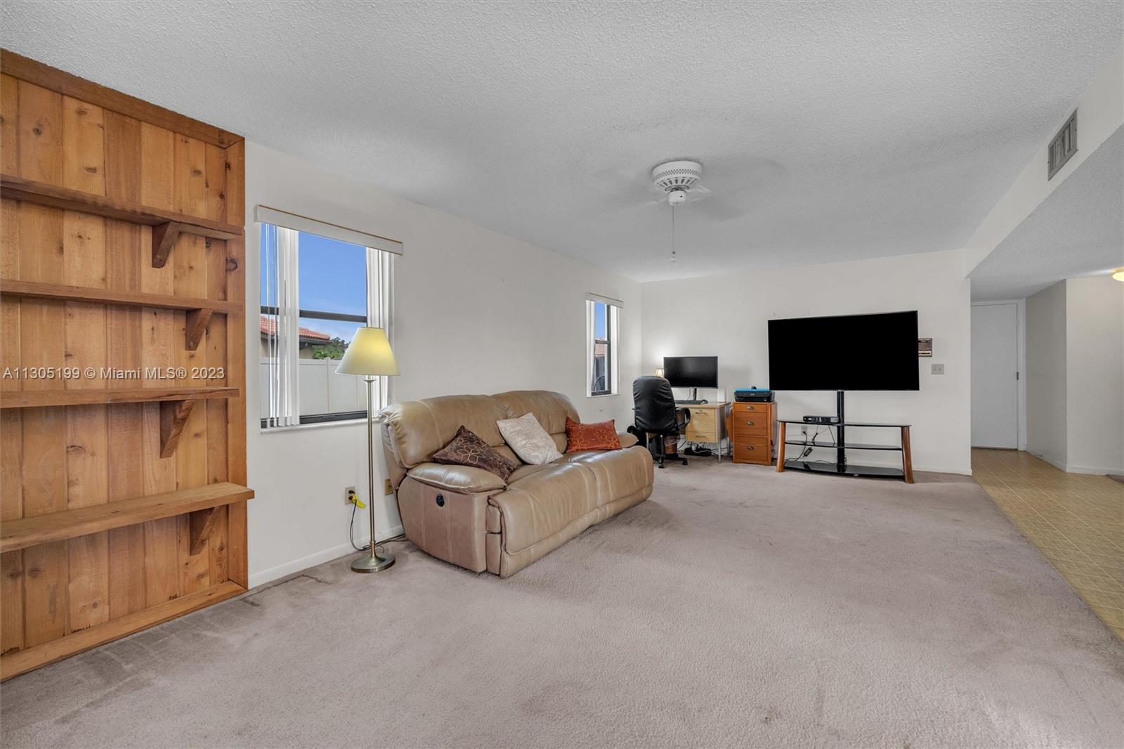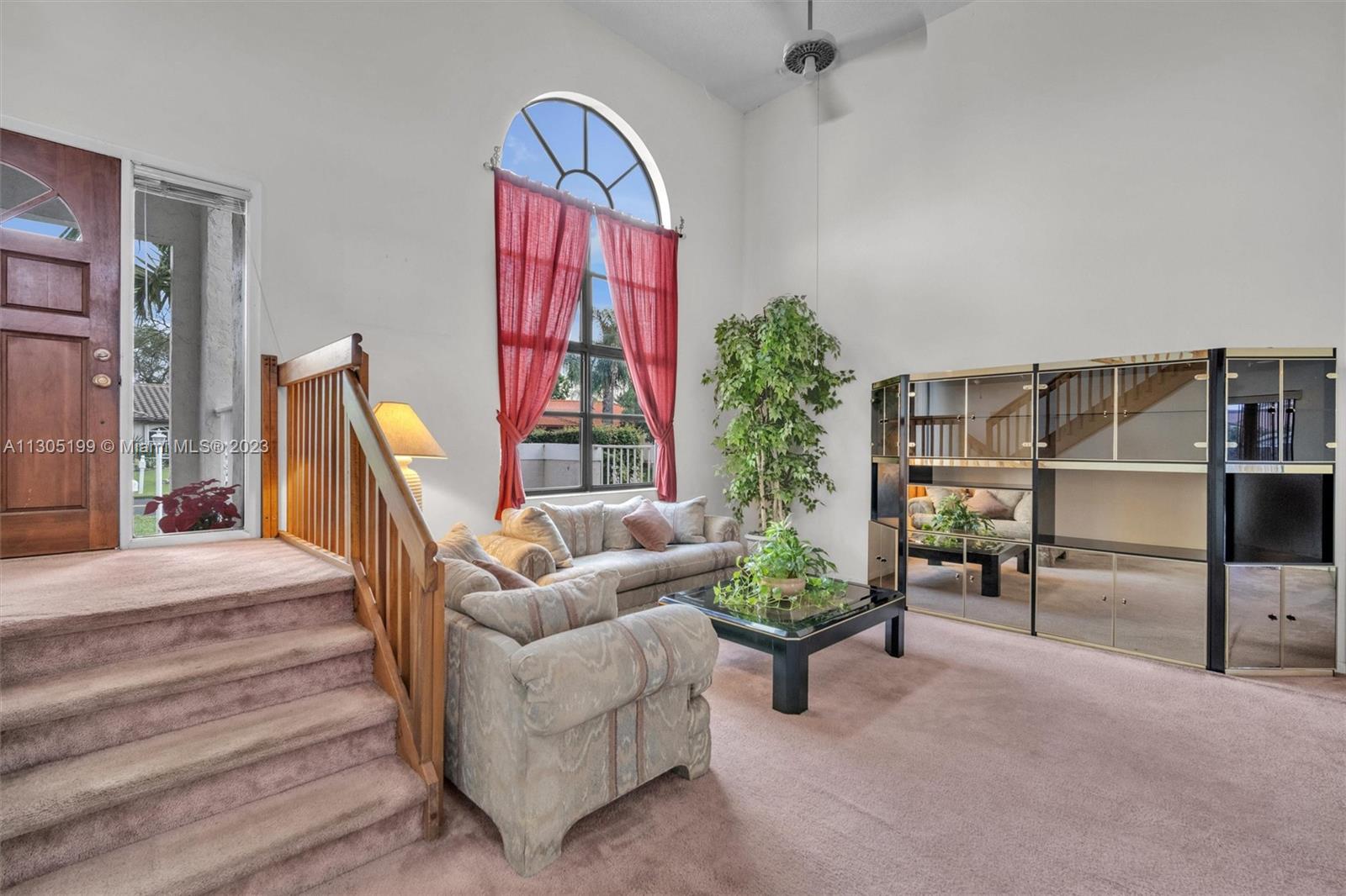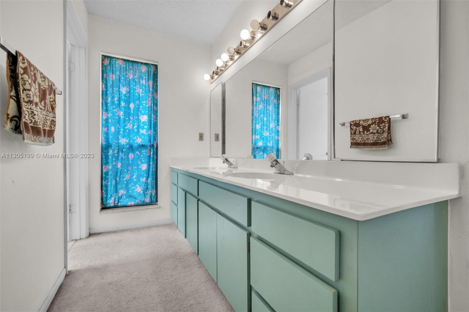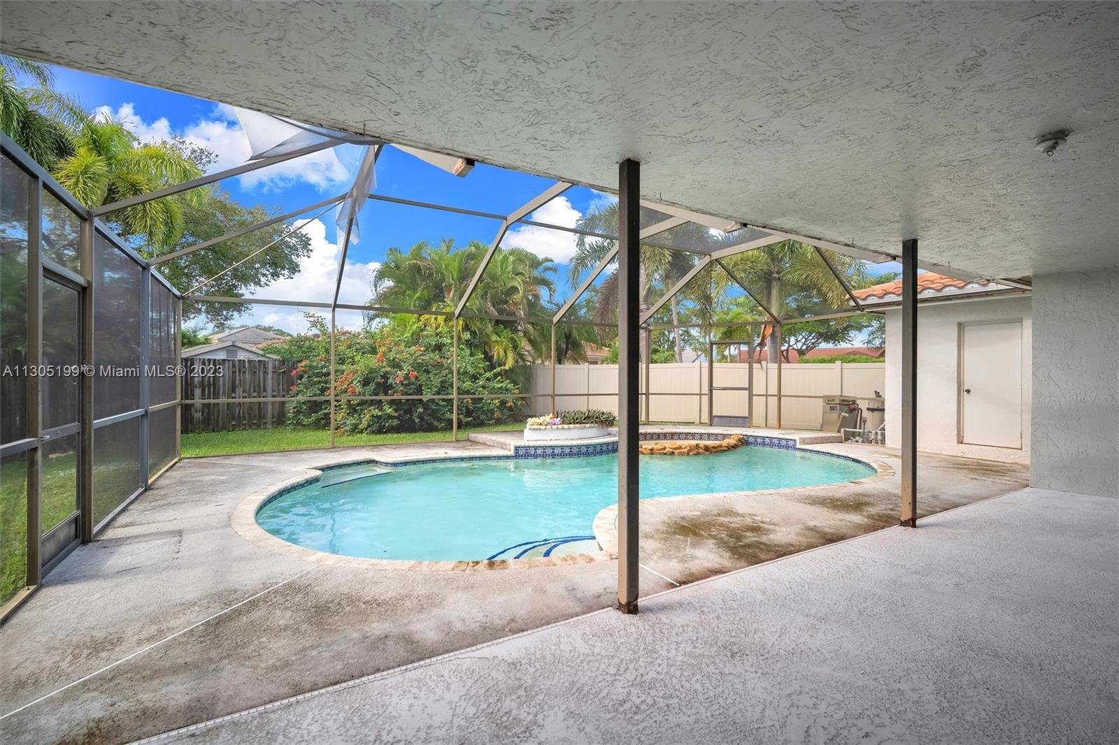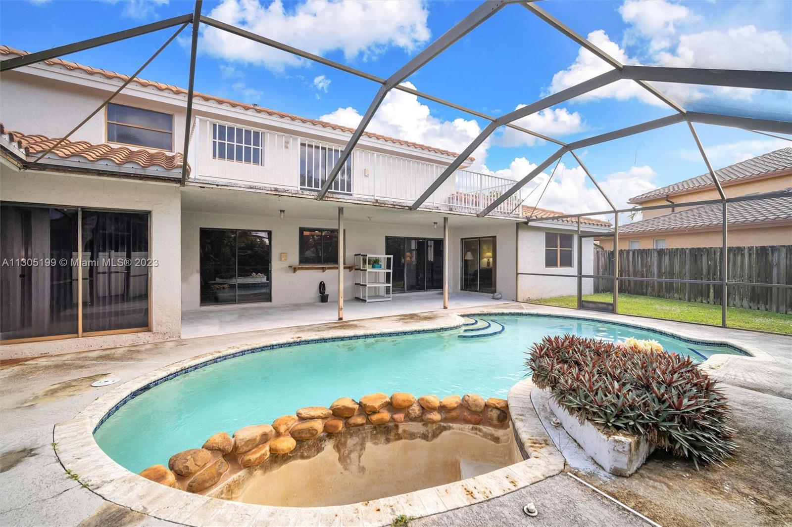 Needs repairs and updating but is currently priced $45k under appraised value! Original owner is bringing this great opportunity to the right Buyer at the right price to make this unique 3 bed + Loft/4.5 bath their very own-- remodel as you see fit. Lots of natural light, separate living areas, FIRST floor Primary suite with walk-in closet and bath with separate tub & shower with ANOTHER full bed with its own full bath upstairs. Spacious, eat-in kitchen, sliders surround and access the Pool inside a screened in partially covered patio, open terrace off the loft, cabana bath, indoor washer-dryer utility room with sink; Roof 2007, circular driveway on an oversized fenced-in pie shape yard. Conveniently located near highway, shopping, restaurants, golf, and schools. Low $350 yearly HOA.
