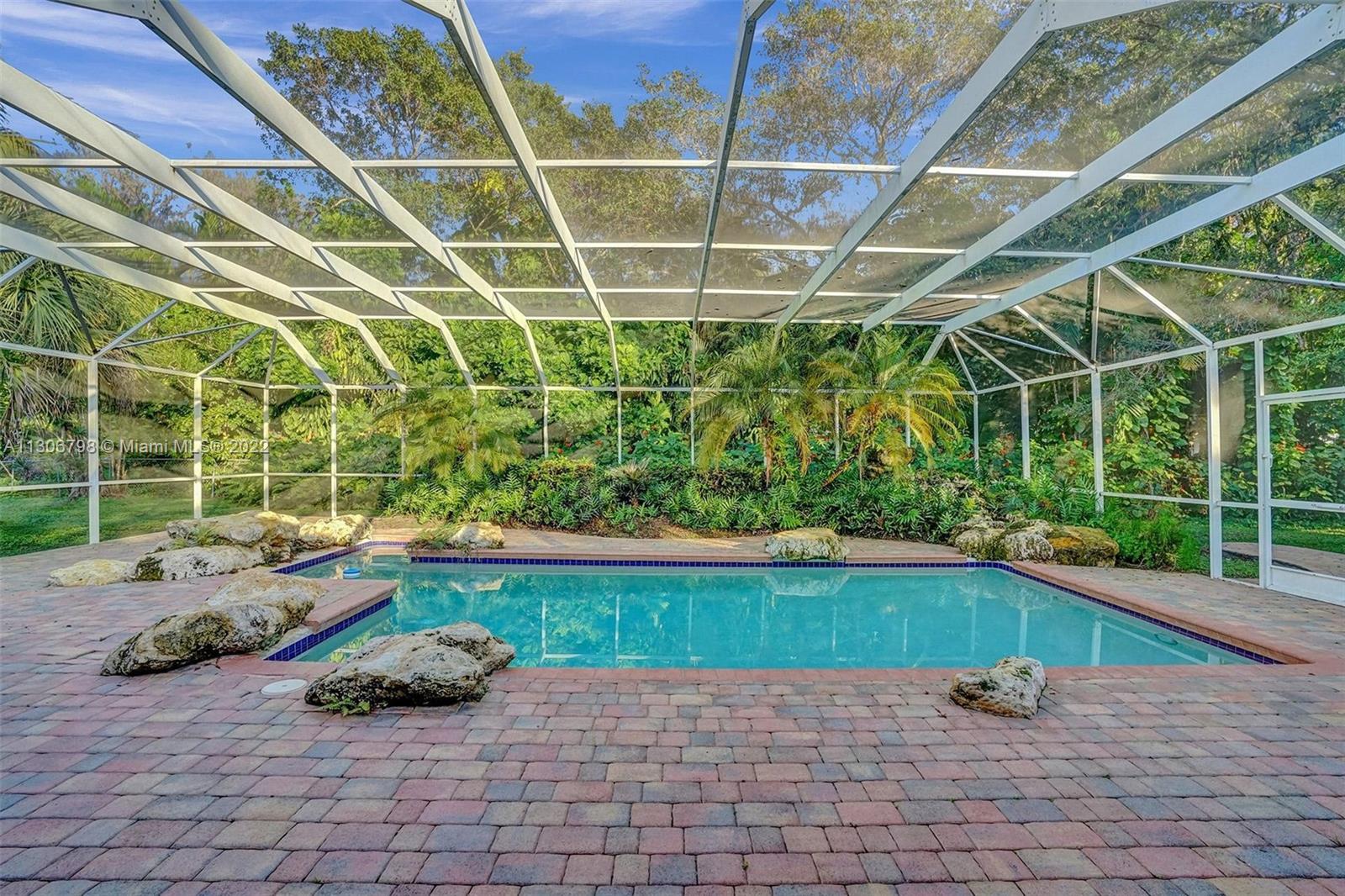 Elegant Central Pinecrest home with spacious social areas offers a great floor plan. Grand living room with a fireplace, formal and informal dining rooms, entertainment room, 4 bedrooms, 3 baths plus a large office/den adjacent to the primary suite. Split 4th junior ensuite, ideal for guests or in-laws. Ample closet space throughout, large indoor laundry/storage room, oversized 2-car garage. Private resort-like backyard with a most enjoyable covered terrace poolside -- all surrounded by mature foliage, just perfect for those memorable gatherings. Nestled in an oversized, professionally landscaped corner lot in a tree-lined and tranquil residential area of Pinecrest, the home is in close proximity to top tier private and public schools, parks, shopping centers, main thoroughfares and more.