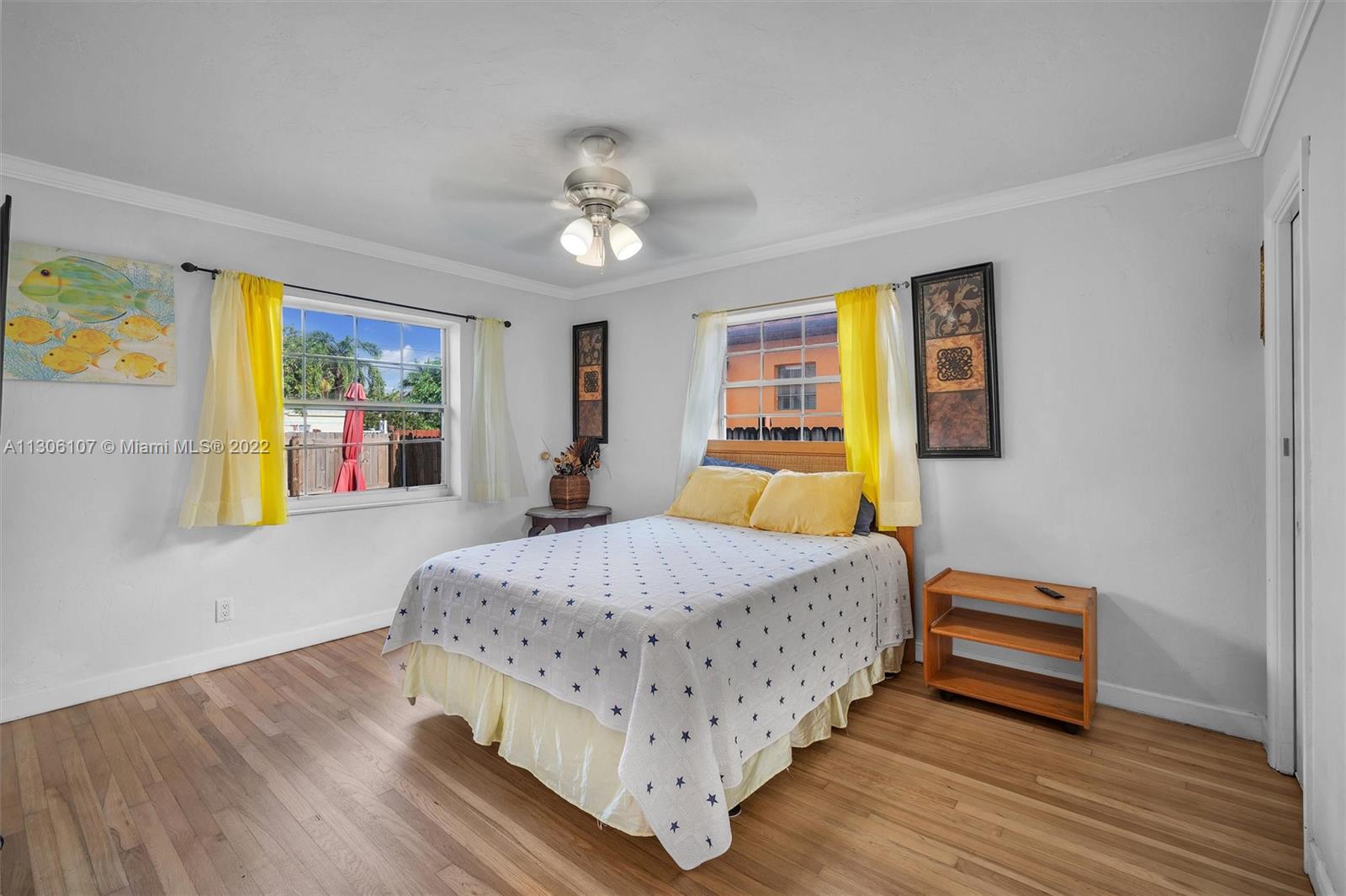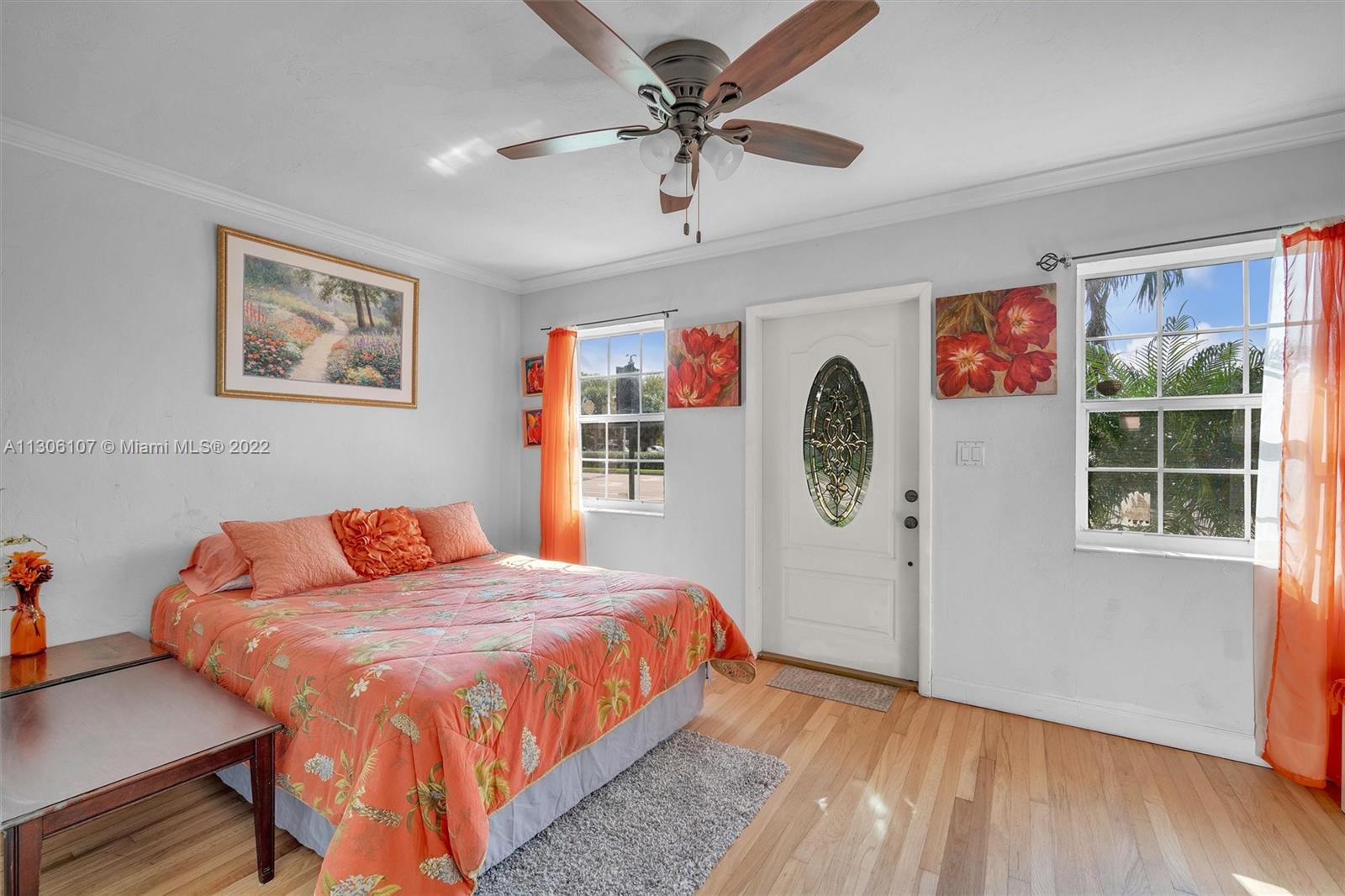 CHARM, LOCATION AND CONVENIENCE! This home is a short walk or bike ride to beautiful Hollywood Beach and Downtown Hollywood. Offering 3 bedrooms, 2 bathrooms, in-law quarter with kitchenette, laundry-utility room, privacy fence and patio. Beautiful oak wood floors and lot’s of natural light will welcome family and friends to your new home. White kitchen with stainless steel appliances, granite counter tops and recessed lights. Both bathrooms have been updated as well. This beauty also features a mother-in law quarter with ceramic tile floors, its private bathroom and separate entrance…  opening the opportunity for additional income. In addition, 2020 water heater, washer and dryer, crown molding, central air, tile roof, RV/boat parking and open porch! FAMOUS!! WORDS, GOING, GOING GONE!