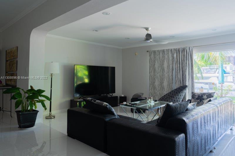 PRICE TO SELL !!!!!! Beautiful Modern, Totally Remodeled 3772 SF with spacious open floorplan , 4 bedroom 3 bath , convert legal garage with central AC , two brand new AC system , open kitchen with bar area , grand master suite facing to south with beautiful water view. Waterfront Home on a large 12,000 sqft corner lot adjacent to a green area. Located on luxurious exclusive and private gated community Sans Souci Estates. Resort like deck Pool area with sandy tropical Water views and 100ft dockage on a deep wide canal, no fixed bridges to open Ocean at just 10 minutes Equal, with brand new boatlift up to 40,000 lbs boat.