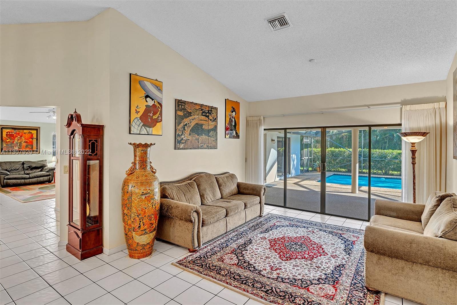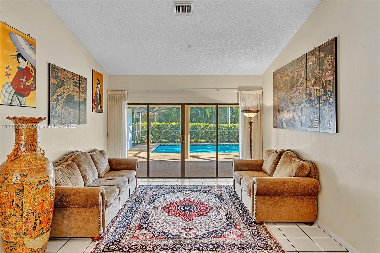 Priced to Sell! Impeccably Maintained and Move-in Ready! The appealing 4 bedroom 2 1/2 bath one story home in The Oaks (formerly The Executive Homes) is complete with a screened pool, covered patio and lushly landscaped yard, perfect for taking advantage of the Florida lifestyle. The interior features vaulted ceilings, formal living room and dining room, kitchen with stainless steel appliances which opens to breakfast area and spacious family room. Open and spacious split bedroom floor plan. Neutral tile everywhere. Centrally located in the heart of Weston with top rated schools and walking distance to Country Isles Elementary School, Peace Mound and Country Isles Parks, Weston Town Center, shopping, fine restaurants and more!