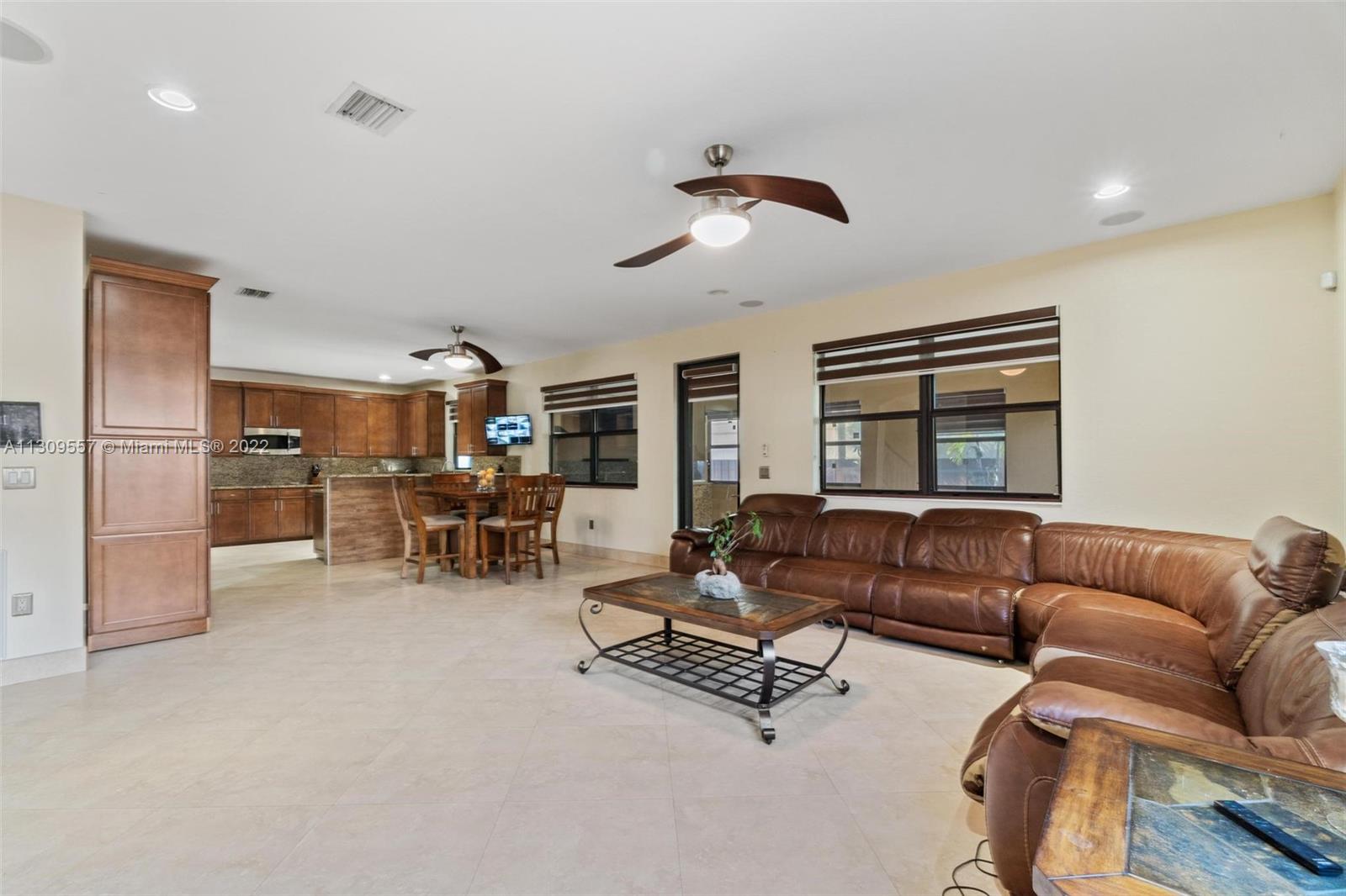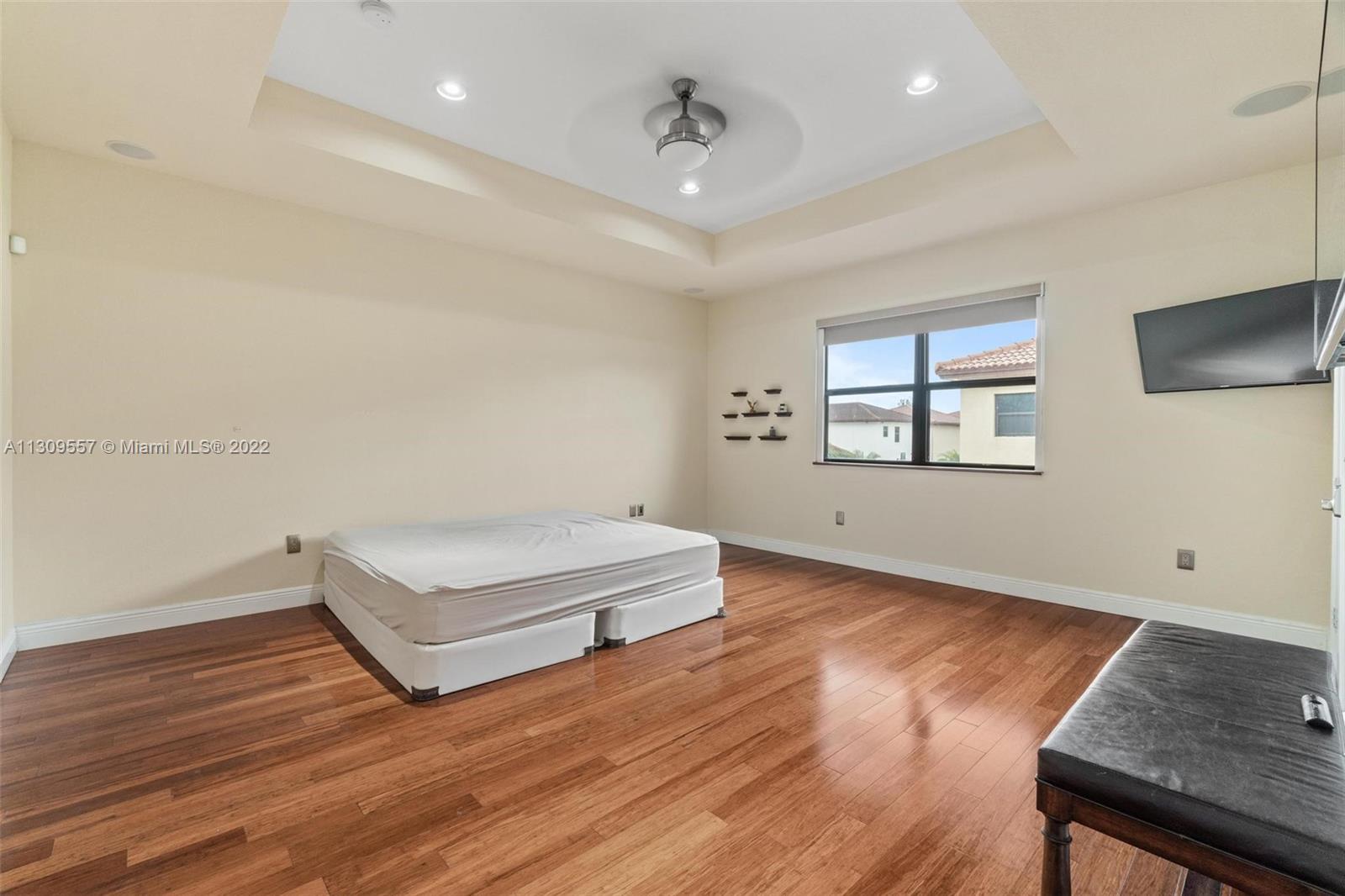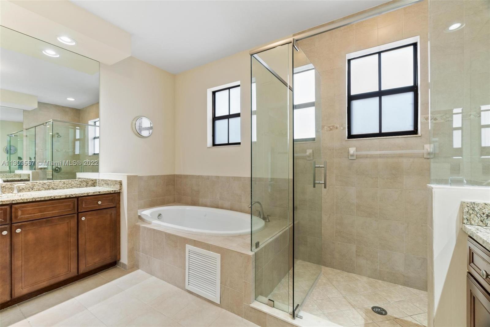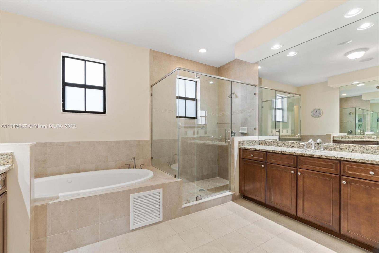 Impecable corner lot and spacious single family home, 4 bedrooms, 4 bathrooms, walking closets. Located in the prestigious gated community at Grand Bay Estates at Doral. Ample kitchen with stunning brown wooden cabinets, Stainless steel appliances and granite countertops. Ceiling fans throughout home, two door double garage with ceramic floor, garage cabinets and air conditioning. It has a social area with BBQ, Fryer, Ice Maker, etc, this area is under air conditioning. The luxurious resort style clubhouse features a pool, kids pool, a jacuzzy, full gym, tennis/basketball courts. Close to great public & private schools, supermarkets, restaurants, and new Doral CityPlace shopping Mall.
