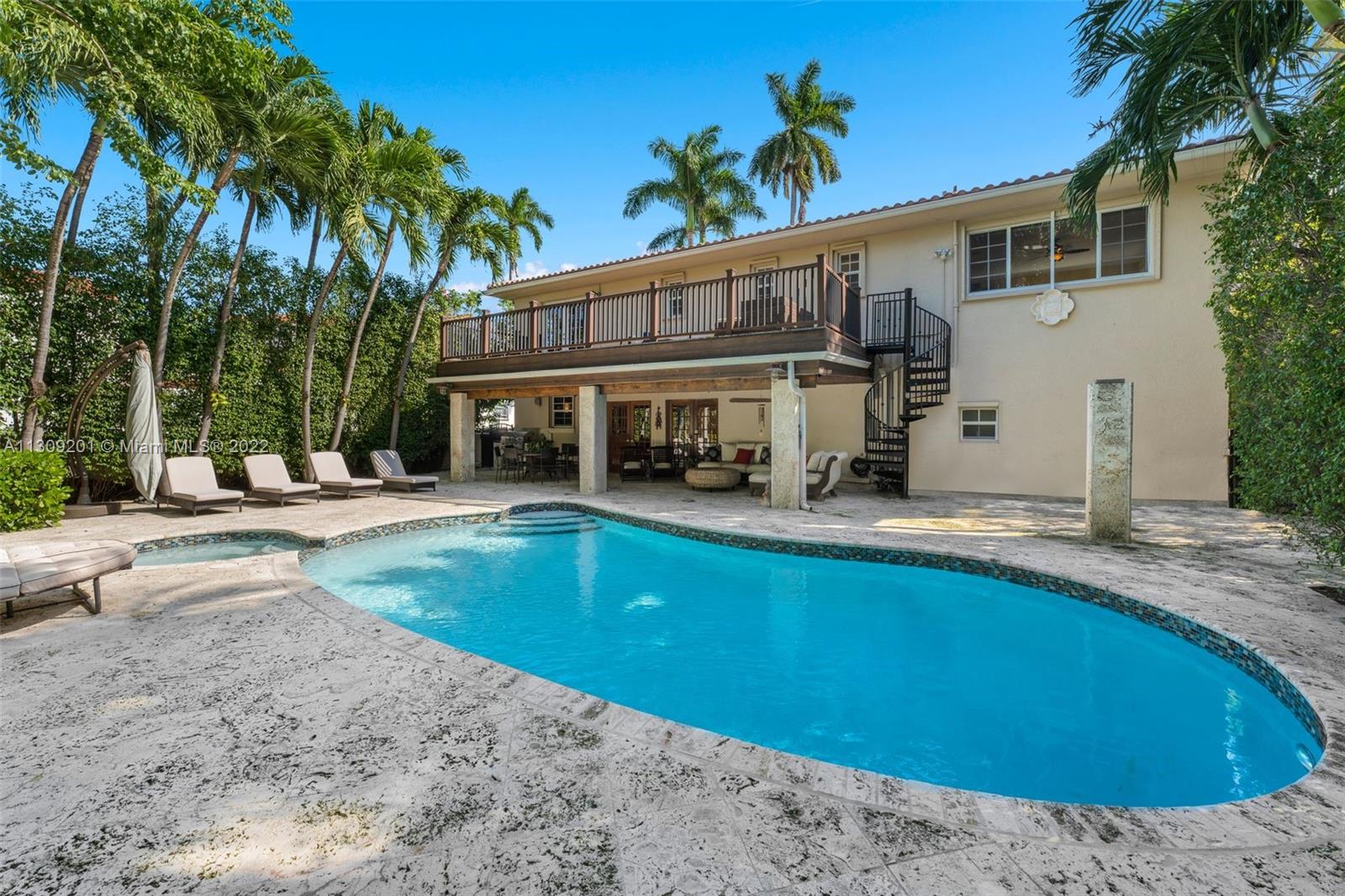 Live on coveted Alton Road in this gated, lushly landscaped 2 story 3,634 sf home on an 8,200+ square foot lot. Boasting 4 spacious bedrooms, 3 full bathrooms and 1 half bathroom, high ceilings throughout, a gourmet kitchen with stainless steel appliances and granite countertops, a formal dining room, three spacious living spaces and wood floors throughout. The outdoors are perfect for relaxing or entertaining with a private backyard featuring a pool and hot tub, built-in barbeque, newly done second story balcony that over looks backyard and verdant greenery throughout. Live moments to La Gorce Country Club, world-class dinning, shopping, beaches and all that Miami Beach has to offer.