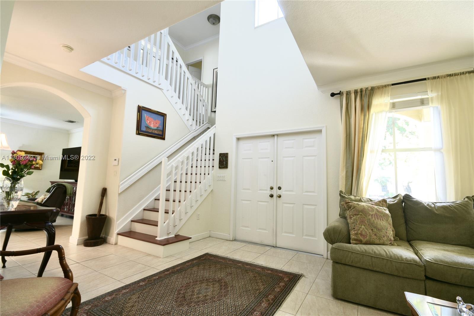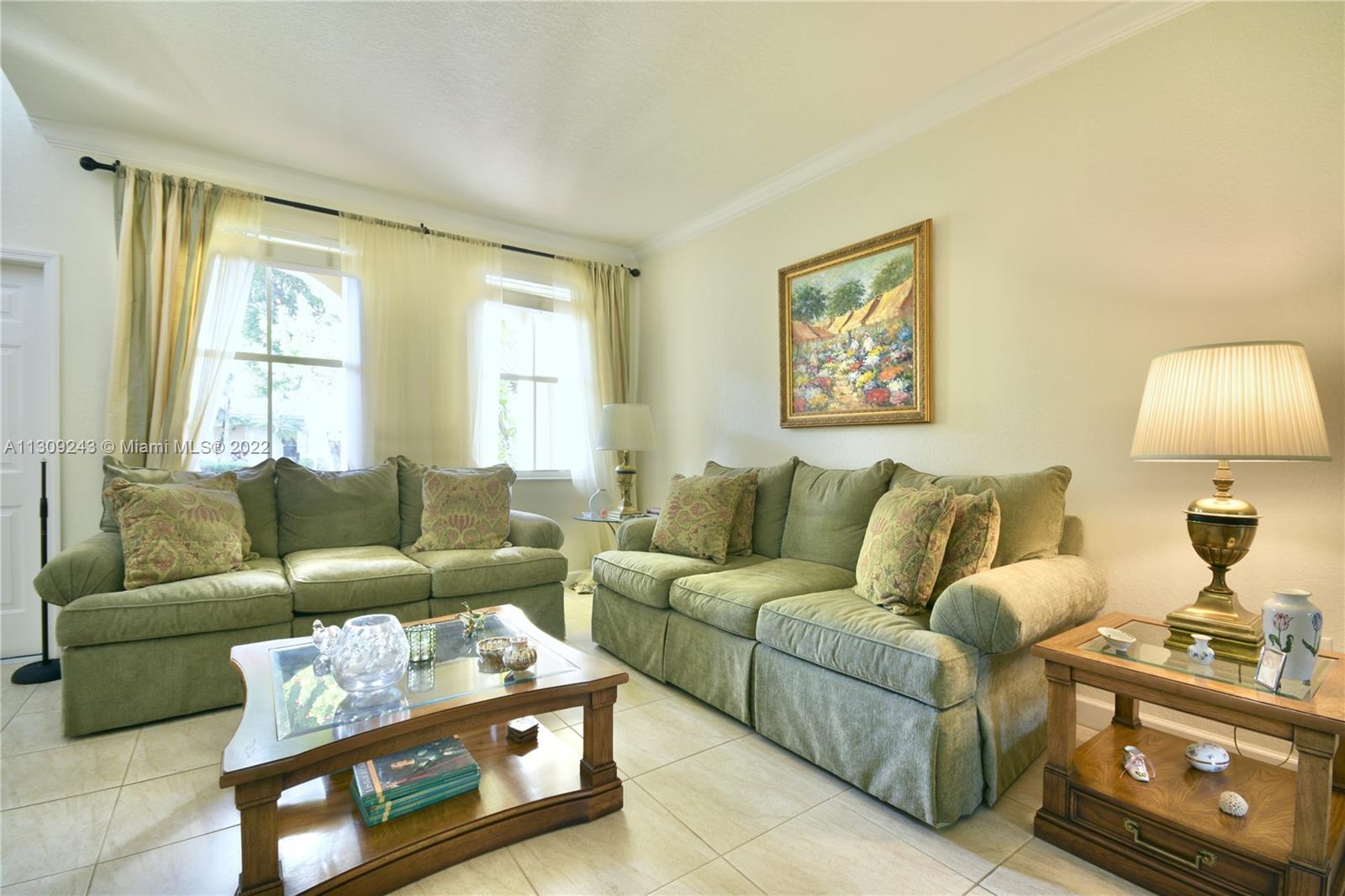 Beautiful & spacious home in the desirable community of Goldvue Estates. 4 Bedroom & 3.5 Baths on 2997 Sqft of living area. Ceramic tile throughout 1st floor. Property features a comfortable living room area, separate formal dining room, an inviting open kitchen with Stainless Steel Appliances, Granite counter tops and breakfast area. Big family room. Oversized Master Bedroom with a sitting area. Exclusive and private green view at backyard. The Community has a nice Pool & a Kids Playground. Excellent location, in the heart of Doral. Close to fine restaurants, Shopping Malls and entertainments. Walking distance to Walgreens, Publix & Starbucks. Close to Excellent Schools. LOW HOA $260, 24Hs security guard. CHECK OUT **VIRTUAL TOUR MATTERPORT**