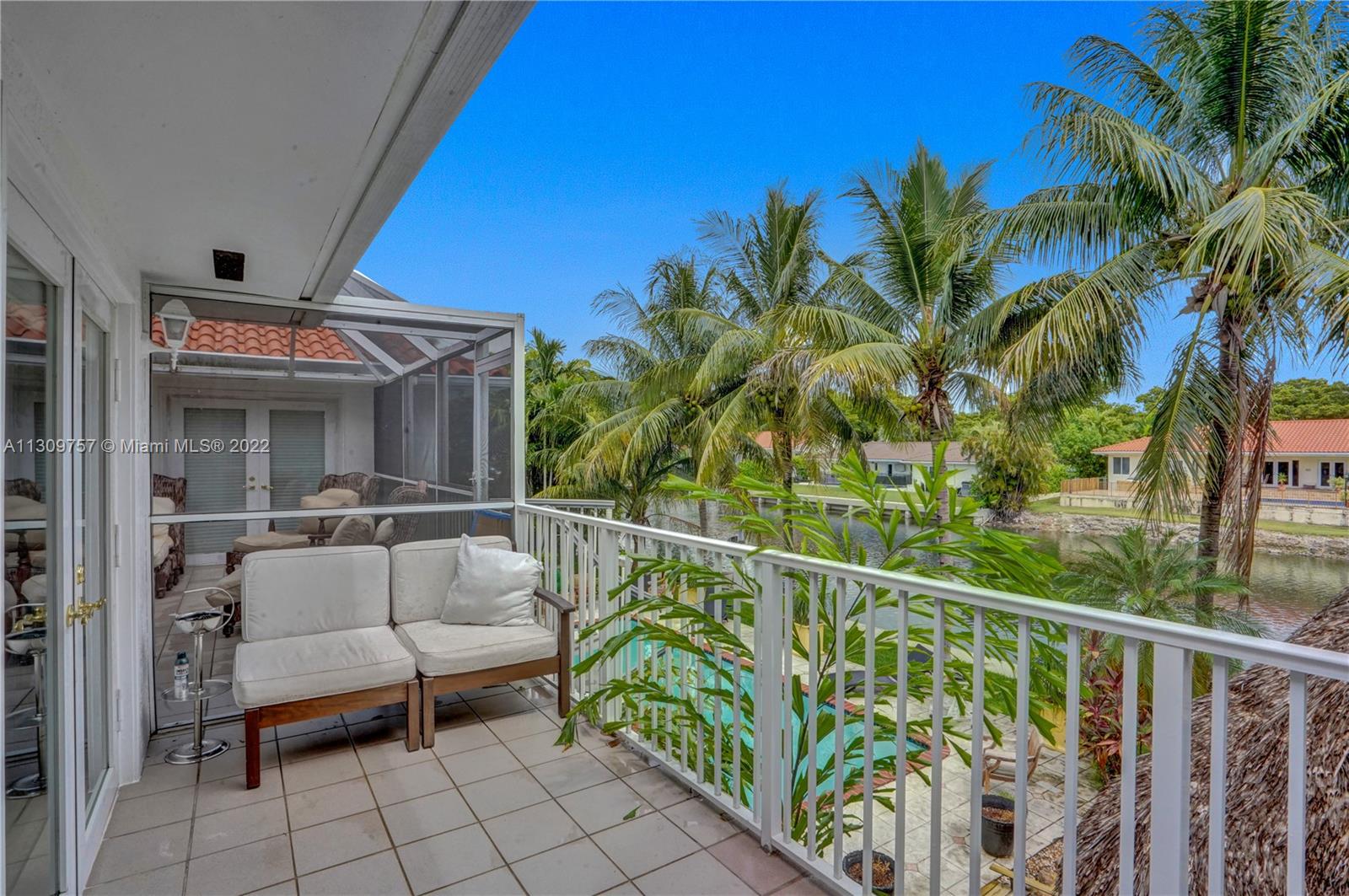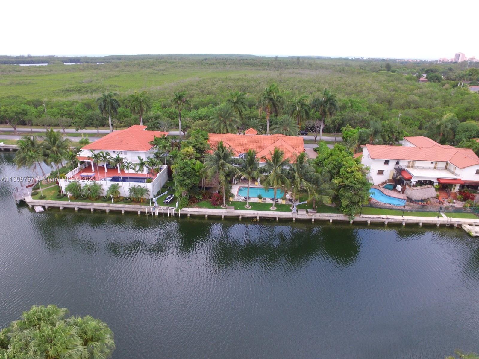 Elegant Two-story 5 beds 4.5 baths Waterfront home in highly desirable Gables By The Sea with NEW ROOF to be completed by 1st week of January,2023.(NO OCEAN ACCESS).Living area is LARGER THAN TAX ROLL as per owner. 4,642 adj. SqFt and 7,557 total SqFt. Upstairs features remodeled kitchen w/SS high end appliances, Pneumatic vacuum Elevator, 4 Large bedrooms w/walk-in closets. Downstairs features a Bonus living area perfect for in-laws quarters or recreation room. Currently set as 10 seat theatre room, office/library room, a separate billiard room and storage. Heated pool, Huge covered terrace, Tiki hut, koi pond with waterfall, four car garage and plenty of parking and very private with No back or front neighbors. Fantastic for entertaining. Highest rated private and public schools nearby.