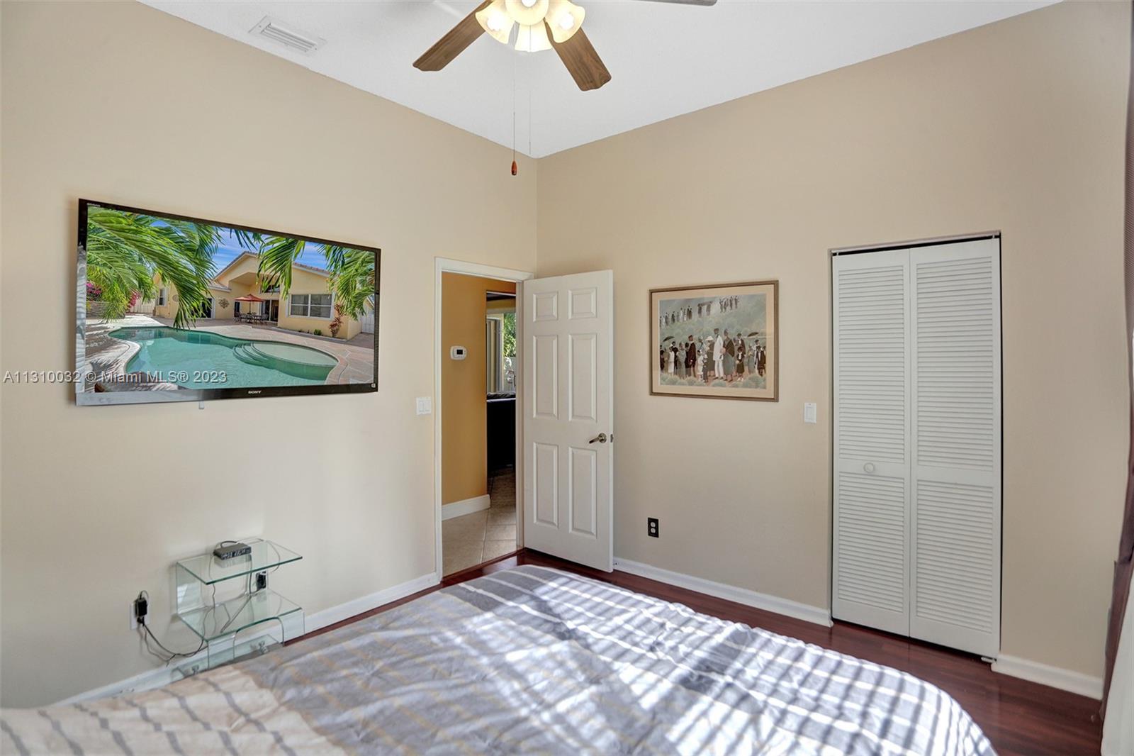 BACK ON THE MARKET! Come experience this lovely family home with 4 bedrooms, 2.5 bathrooms, 2 car garage, heated pool and outdoor kitchen area. Split floor plan with primary bedroom on the left and the other 3 other bedrooms on the right side. Expansive primary bedroom with 2 closets. Primary bathroom has two sinks, tub and shower. Large open kitchen concept with island and Newer kitchen appliances. Newer A/C, Water Heater, washer and dryer. Impact front door and bathroom door leading to yard. Accordion shutters for all windows and sliding doors excluding one window which is impact.