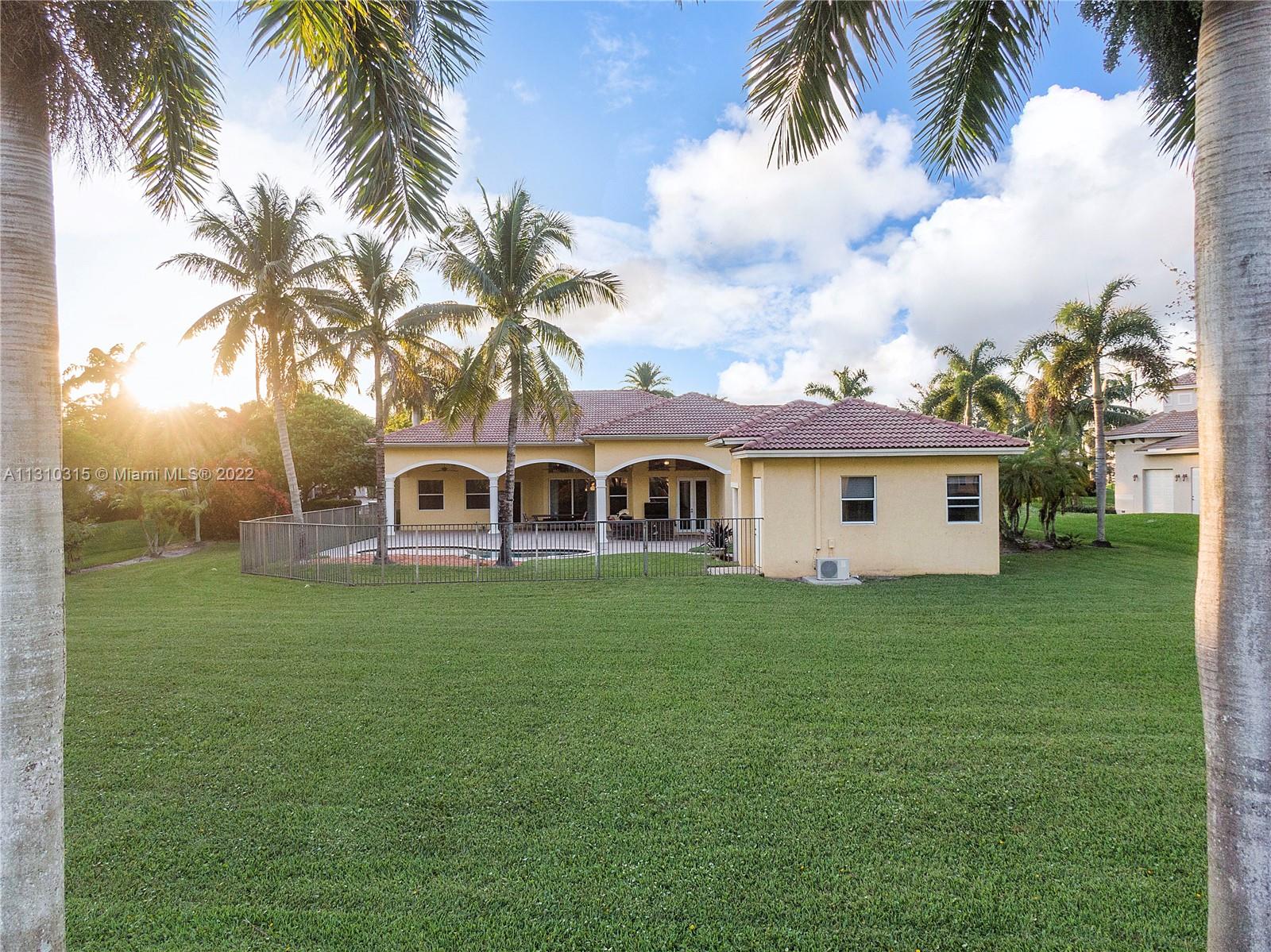 Palm Trees & Warm Breezes surround this custom Waterfront Estate Pool Home on a Builder's Acre. Privacy is emphasized in this rarely available prestigious gated NorthStar development with limited homesites. Mahogany Double doors accent the grand entrance, foyer, tile floors & vaulted ceilings. The 5 bed/3.5 bath split floorplan include an owner's suite with sitting area, dual walk in closets & a spa style bathroom. A formal dining room, gourmet style kitchen, breakfast bar & family room all have wide open views of the of the pool & luscious waterfront lawn. Covered patios & a detached 1 bed/1 bath pool house make this outdoor area perfect for entertaining. Minutes to beaches, airport, fine dining, sporting venues, Hard Rock Casino, shopping and all major highways. Musty see to appreciate!