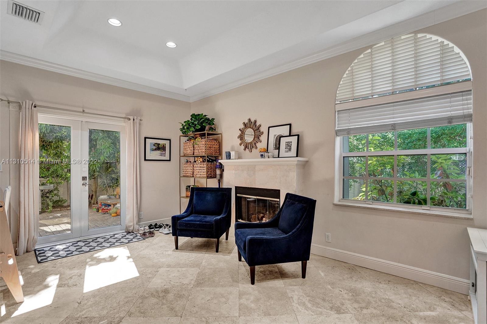 RARELY AVAILABLE, Victoria Mews, one of the most well-built townhomes in all of Victoria Park. The spacious bright corner townhouse with massive private yard gives you a sense of tranquility. The 3 Bedrooms, Office (which could be a 4th Bedroom), 2.5 Bathrooms, Laundry Room, 2 Car Garage with a comfortable luxury layout. Home features balcony, high ceilings, marble flooring throughout, poured concrete floors, and reinforced concrete roof making it one of the strongest built homes for hurricanes. Kitchen is equipped with stainless steel appliances, gas range, and a cozy lounge sitting area with fireplace. Right outside the French doors you also have a spacious back patio perfect for outside dining and relaxing under the lychee and lemon trees.