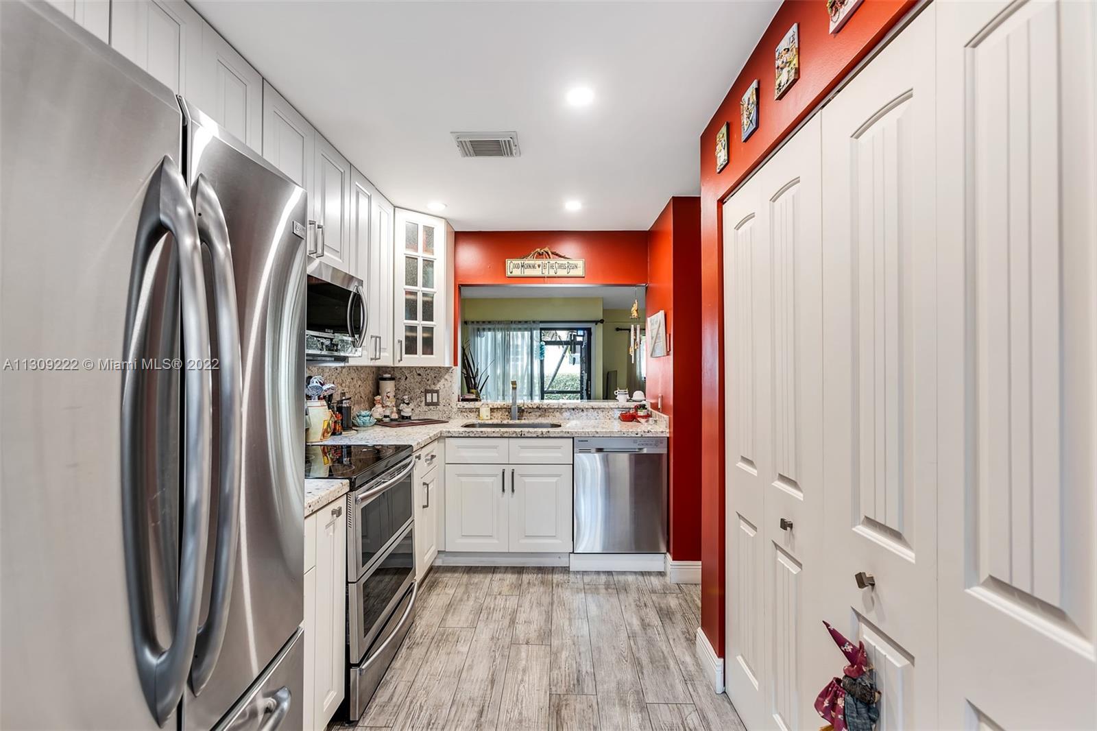 Tastefully remodeled 2 bedroom / 1.5 bathroom townhouse located in Sherbrooke Townhomes in East Hollywood. Kitchen upgrades include Granite Countertops, Stainless Steel appliances, White Shaker Cabinets with ample storage space & Pantry. Wood floors throughout. Fenced in front porch. Private screened in patio in the back. Newer Roof. Accordion Hurricane Shutters. Community Heated Pool. Close to the beach, Hollywood Broadwalk, local parks, Airport, and downtown Hollywood. Gated community with security cameras throughout. Low maintenance fee. 2 assigned parking spaces. Exterior of the complex is being has been freshly painted with modern colors. Wood repairs in progress. Great opportunity for first time home buyers, snow birds or investors!