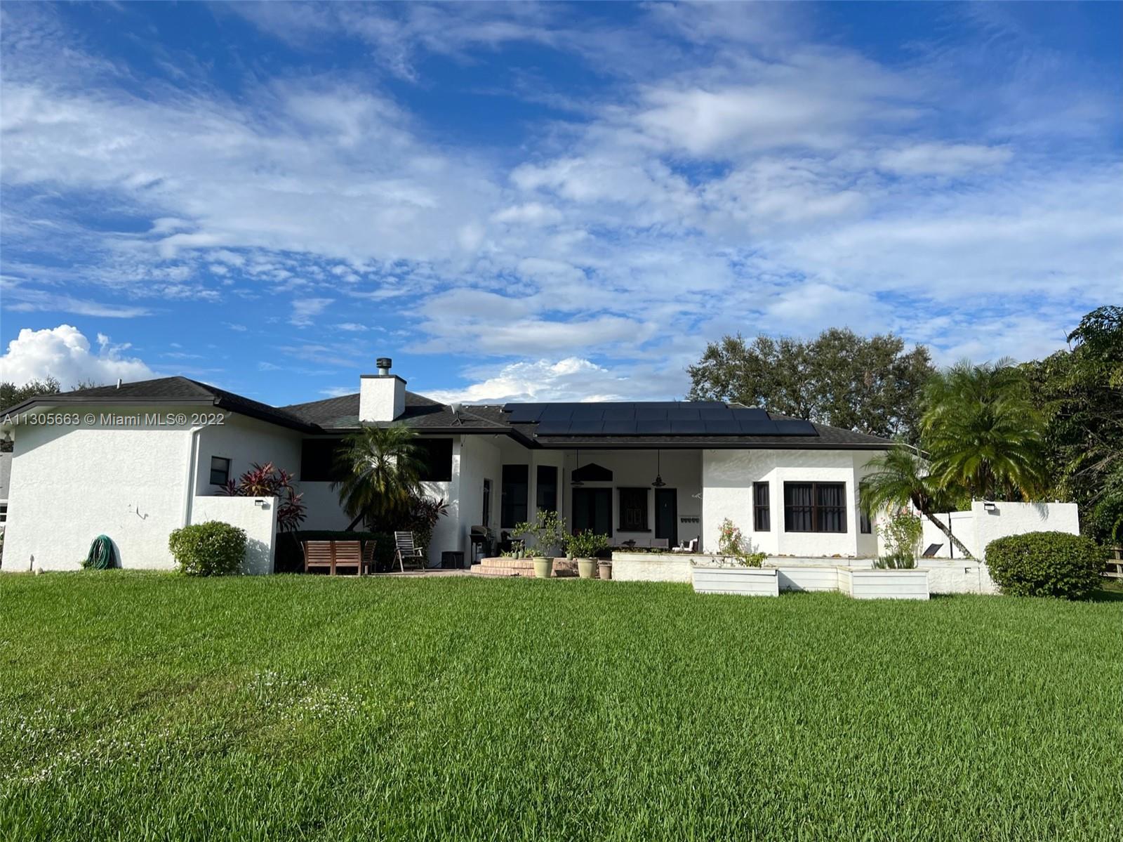 GORGEOUS POOL HOME ON 1 ACRE CUL-DE- SAC LOT IN SOUTHWEST RANCHES AMAZING FLOOR PLAN 5 BEDRMS/4BATHS (INCL.. POOL BATH) AND 2 CAR GARAGE. 1 BEDRM/1 BATH (HANDICAP BATHROOM) HAS ALSO A SEPARATE ENTRANCE FROM OUTSIDE WHICH GIVES AN EXTRA PRIVACY TO IT. DETACHED BUILDING (22' X 20') CAN BE CONVERTED TO AN ADDITIONAL APARTMENT PERFECT FOR IN-LAWS QRTS , OFFICE OR GUESTS. SPLIT FLOOR PLAN WITH MASTER BEDROOM ONLY IN ONE SIDE OF THE HOUSE. 12' CEILINGS. A/C'S, WATER PUMP AND PREASSURE TANK ARE NEW. SOLAR PANELS, GAS COOK TOP, WATER HEATER, DRYER, AND OVEN. WELL WATER, NO WATER BILLS. REVERSE OSMOSIS SYSTEM.VEGTABLE GARDEN PLANTER.BEAUTIFUL AND SPACEFUL BACK YARD COMPLETELY FENCED FOR KIDS OR ANIMALS. PERFECT FOR A LARGE FAMILY OR THOSE NEEDING IN-LAW QRTS.STARLINK SATELLITE INTERNET .
