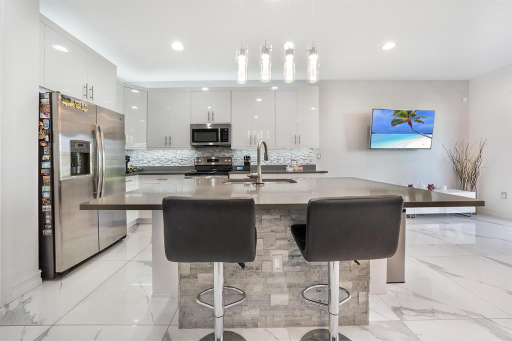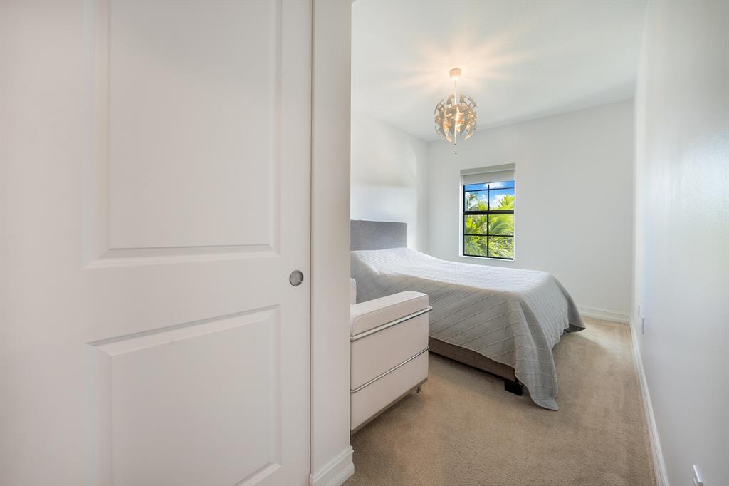 Luxury townhome in exclusive gated community Enclave at Boca Dunes. Spacious 2,008 sqft 3 bed, 2.5 bath, 1CG lakeview property. Highly upgraded kitchen with sleek white cabinets, quartz counters, custom backsplash, undermount lighting, stainless steel appliances, and a large island with seating. Gorgeous oversized porcelain tile first floor. Open concept dining & living area with high ceilings giving access to the covered private Lanai. Peaceful long lake views from the extended patio. Custom elegant lighting, window treatments, Ring, hurricane impact windows & doors complete this pristine home. Primary suite with large walk-in closet, luxurious bathroom with double sinks and oversized shower. Amenities include clubhouse, fitness center, pool, playground, billiards, & more. A rated schools