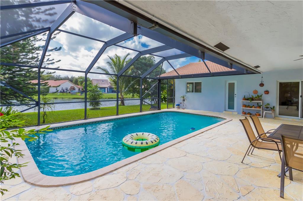Fantastic 4-bedroom, 2.5-bathroom waterfront home in Cypress Glen/Coral Springs. Home offers a Split bedroom floor plan w/ over 2,000 sqft . Formal Living/ dining and family room with vaulted ceilings surrounding the updated kitchen all overlooking the screened in pool area & the amazing and tranquil LAKE views with over 80 ft+/- of waterfront on this private lot. HURRICAINE IMPACT WINDOWS /DOORS. Spacious master suite on east side of the home w/walk-in-closets & updated bathroom. 3 guest bedrooms with a cabana bath on opposite side & a half bath for your guests make this home a perfect combination for entertainment. Also features 2 car gar, Cir Driveway w/ room for 6 cars, interior laundry room, NEW ROOF 2018 & No association fees. .