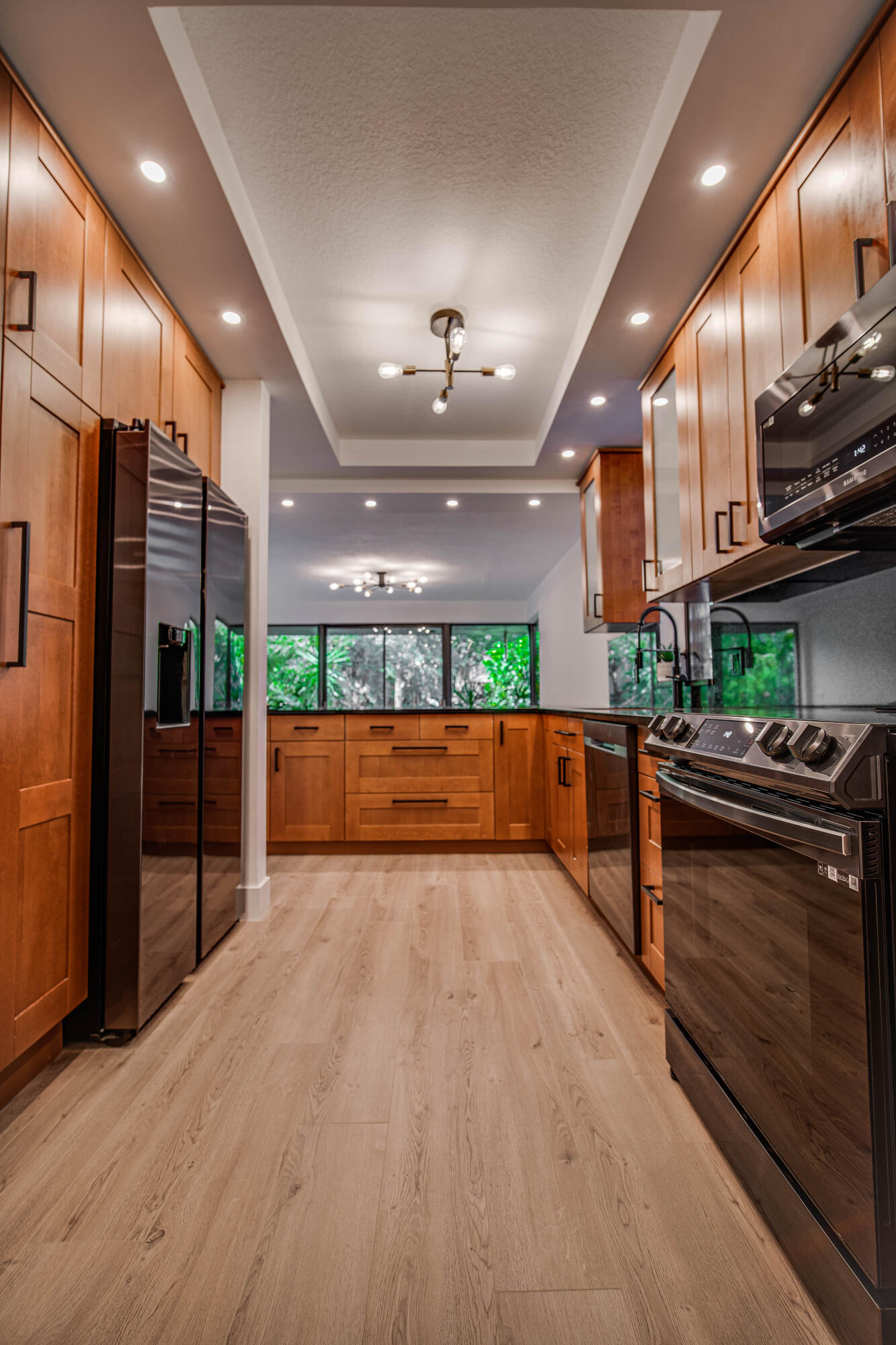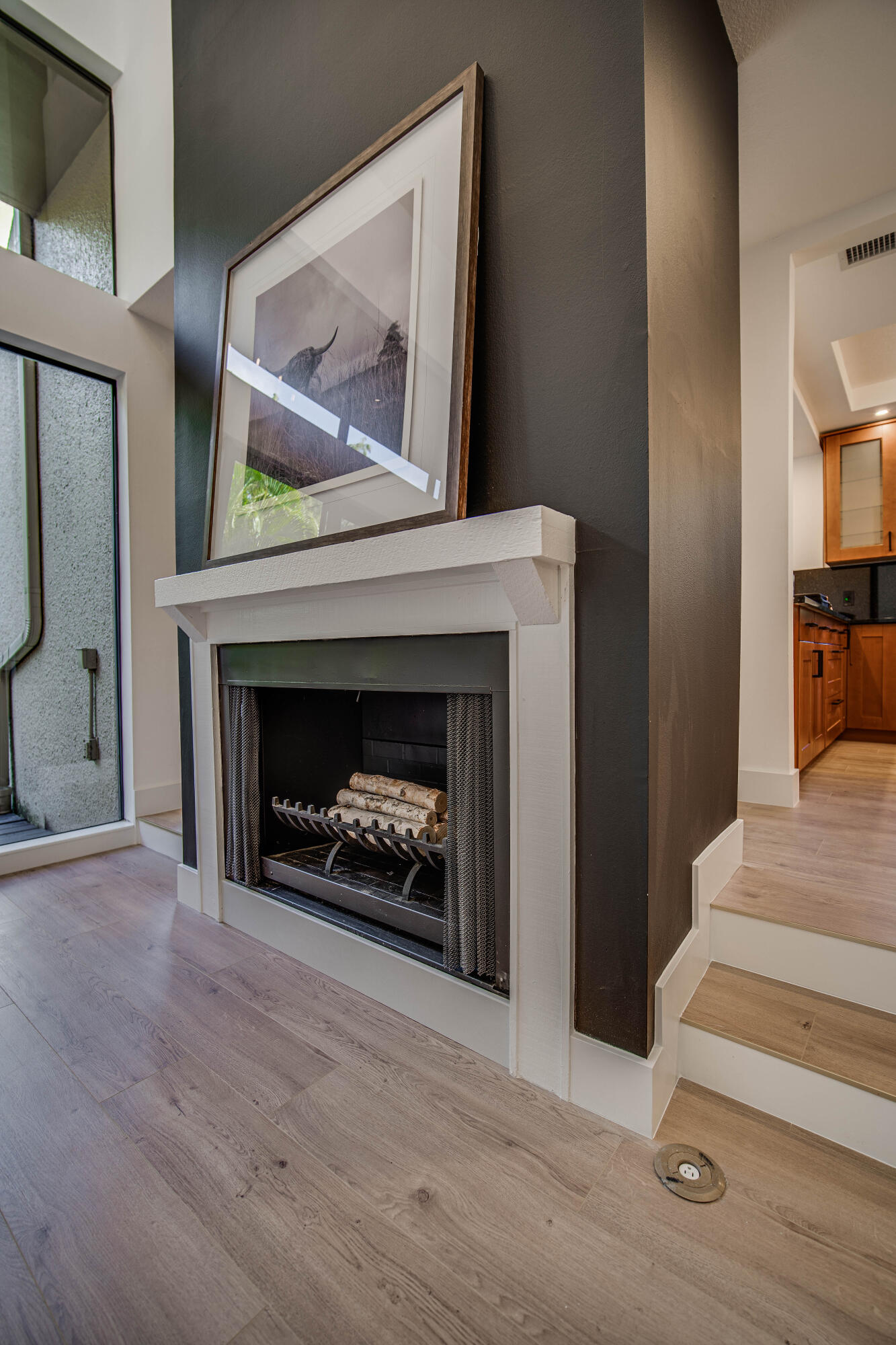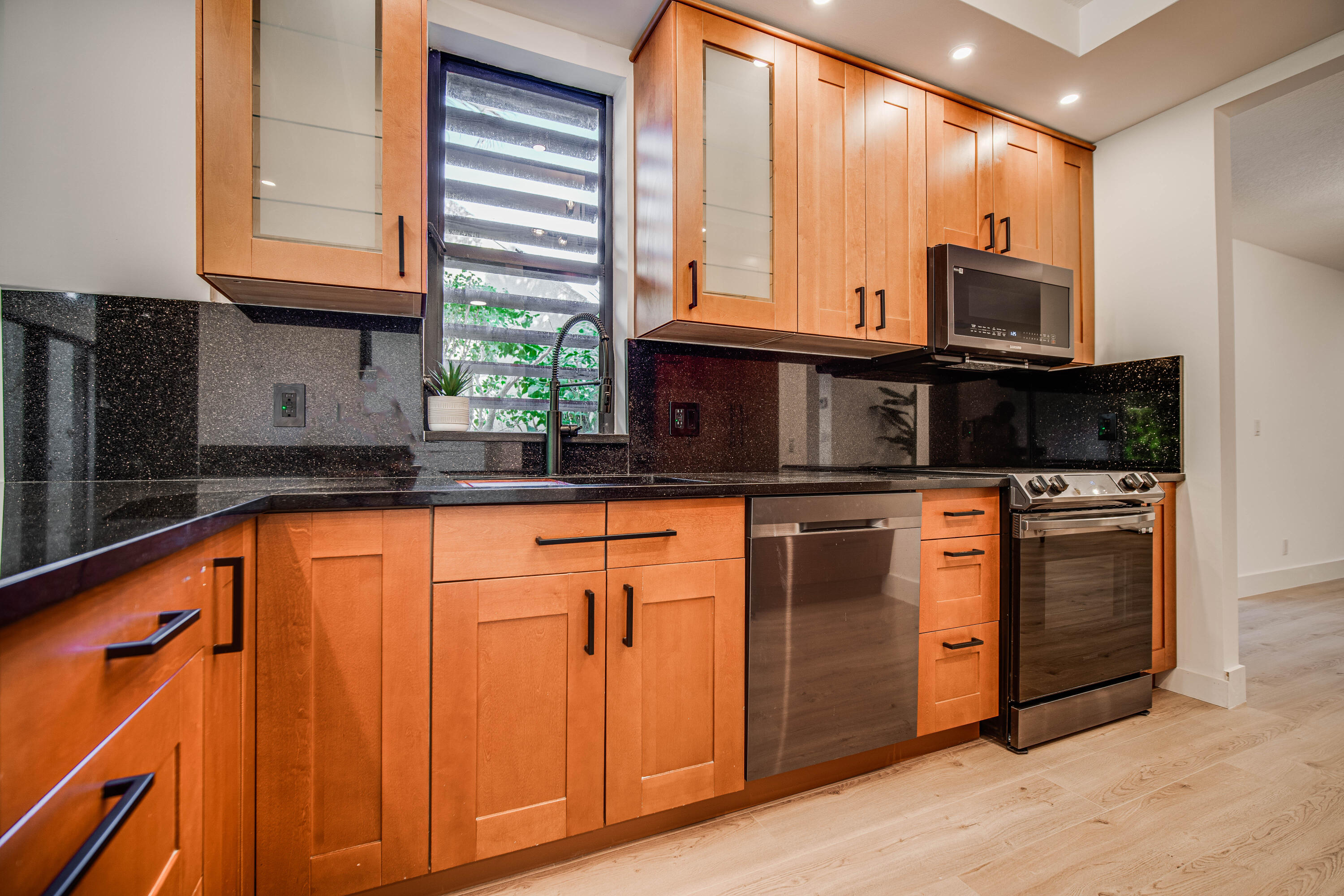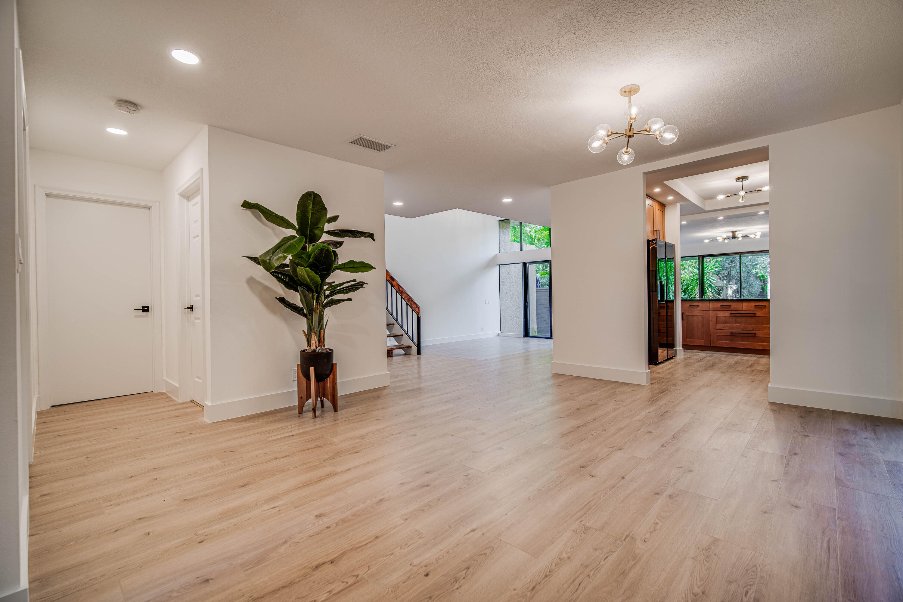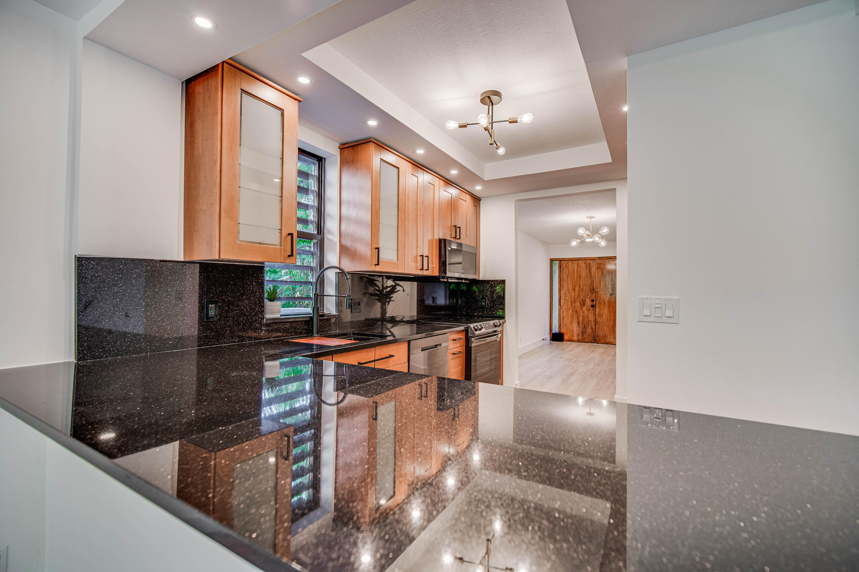 Stunning townhouse with a water view in East Boca Raton. Land's End (located off Glades between Bethesda Regional Hospital and FAU), is a quiet community enclosed in lush tropical landscaping. Bedrooms have high ceilings with lots of natural light. This townhouse has been fully upgraded. Brand new flooring, knockdown ceiling, kitchen appliances, electrical, washer/dryer and tankless water heater. Custom kitchen cabinets with quartz countertops and backsplash. Two gorgeous fireplaces in master/living . Fully renovated bathrooms with marble vanities and modern toilets. Amenities include: pool, spa, and sauna. No expense was spared in this mid-century townhouse. Less than 7 minutes to Boca Raton Beach & Mizner Park. This is a very rare opportunity to own a home in the heart of East Boca Raton