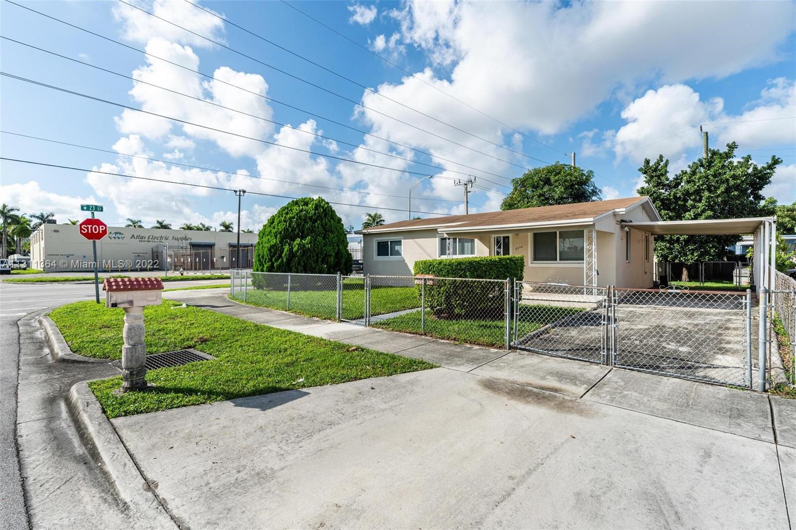 Welcome to the market this wonderful corner home in desirable Hialeah. This 3 Bedroom 1.5 Bath home is highlighted with impact windows and updated roof installed in 2018. Features include tile floors throughout with gas range and water heater. Wood cabinet kitchen with granite countertops. Fenced driveway with carport for privacy which leads to your spacious backyard that includes a storage shed.