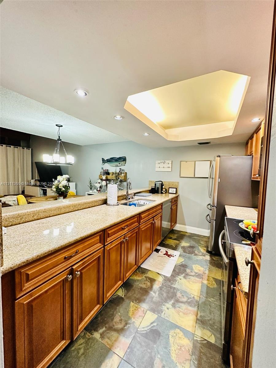 Beautiful 3 bedroom, 2 bathroom unit in the well desired community of Villas Central in Pembroke Pines. This Corner Unit overlooks the Golf Course and Lake for the perfect views year round. Property features: a custom kitchen with stainless steel appliances including a double oven, new dishwasher & microwave, granite counter tops, dark wood laminate flooring on the upper level, tiled on the first level, split floor plan, vaulted ceilings, washer/dryer 2 years old, new water heater, AC only 5 years old and much more. Won't last! Security system does not convey