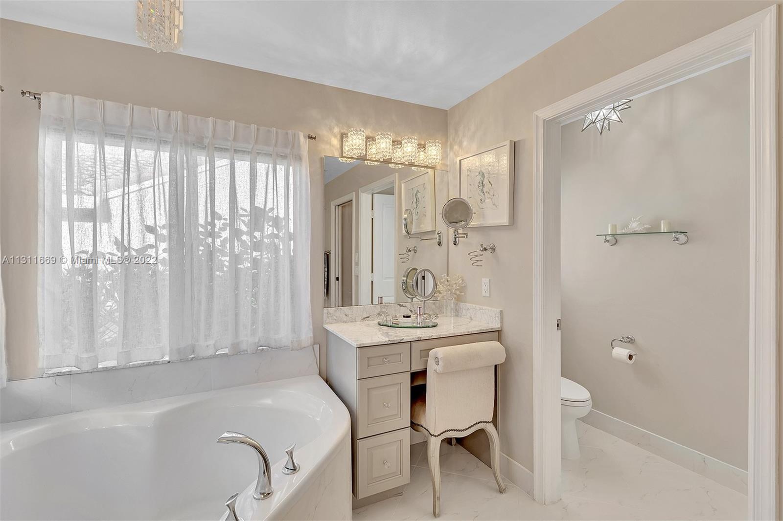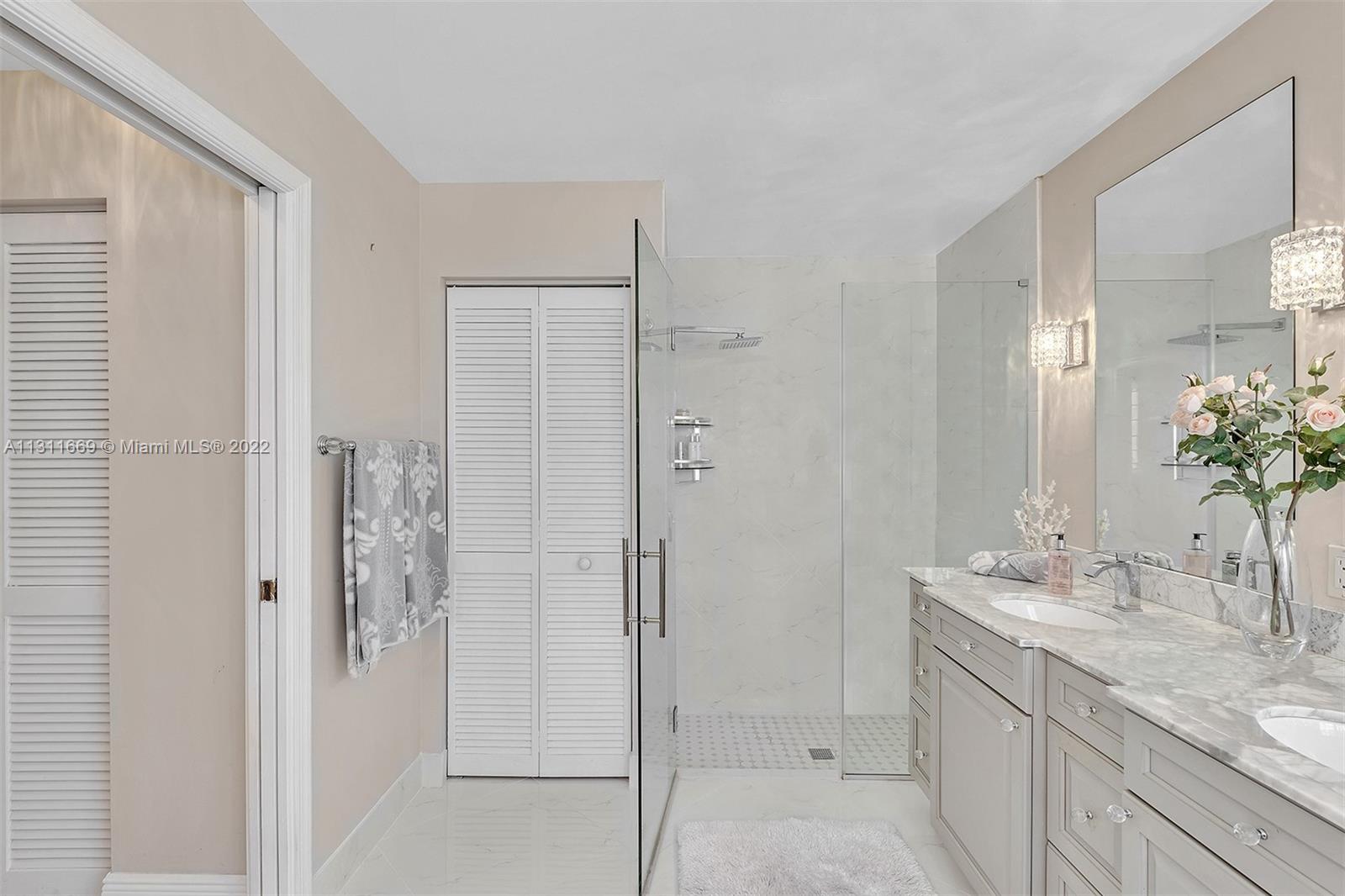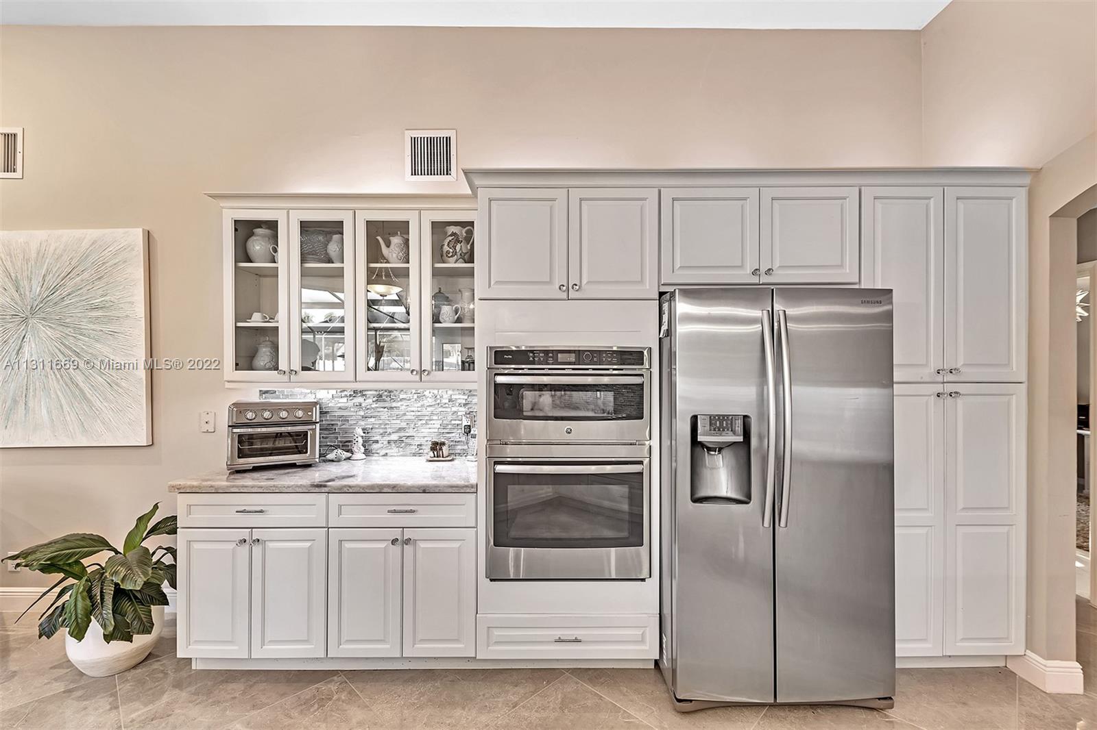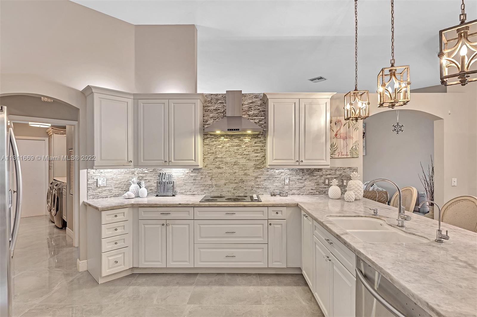 MOVE IN READY! This absolutely STUNNING 4 bed/3 bath one story home is set on perfectly manicured, lushly landscaped corner lot, COMPLETELY RENOVATED with transitional taste and a coastal flair. Enter the foyer and immediately feel the spacious living areas, volume ceilings and large sliders with transom windows. The chef's kitchen with quartzite counter tops, glass tile backsplash and wall oven/microwave overlooks the spacious family room. The master suite boasts a spa-like bathroom and 2 walk-in closets with built-ins. Other features include gorgeous 36x36 inch tile, trendy light fixtures and 3 way split bedroom plan. The screened pool with large patio is surrounded by generous yard. NEW ROOF and accordion shutters. 24 hr guard gated. Steps to community pool, playground and soccer field.