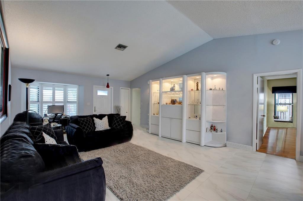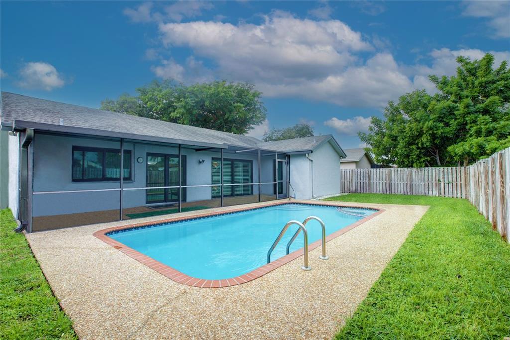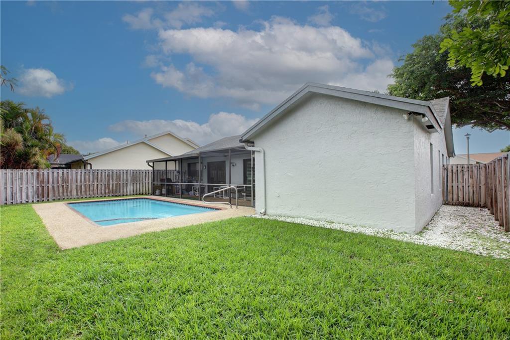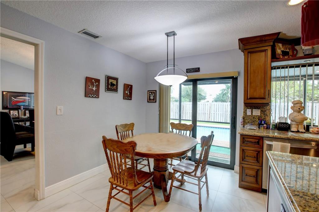 Exceptionally updated Home with Private Pool! This beautiful 3BR/2BA, 1,768sqft residence stuns with vaulted ceilings, spacious living room/formal dining area, family room, fully remodeled custom kitchen featuring LG stainless-steel appliances, granite counters, and wood cabinetry. Master bedroom with California closet and remodeled bathroom. Exterior and interior paint done 2021, new porcelain tile floors, Fully enclosed for privacy, the backyard includes a pool, refinished Diamond-Brite and rescreened patio 2021. Other features: 2-car garage, security system w/Ring doorbell, automatic pool cleaner, automatic sprinklers, California closets in all bedrooms, hurricane impact windows and doors, plantation shutters, and more! Walking distance to Welleby Elementary School. Call for a tour!