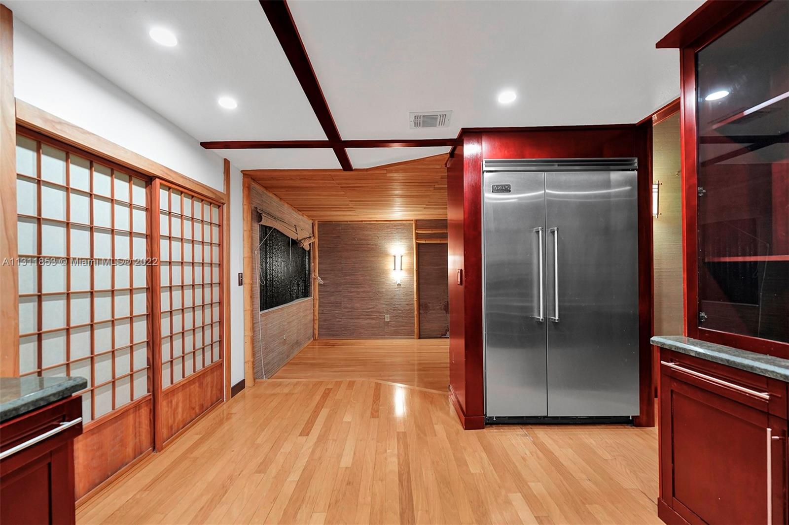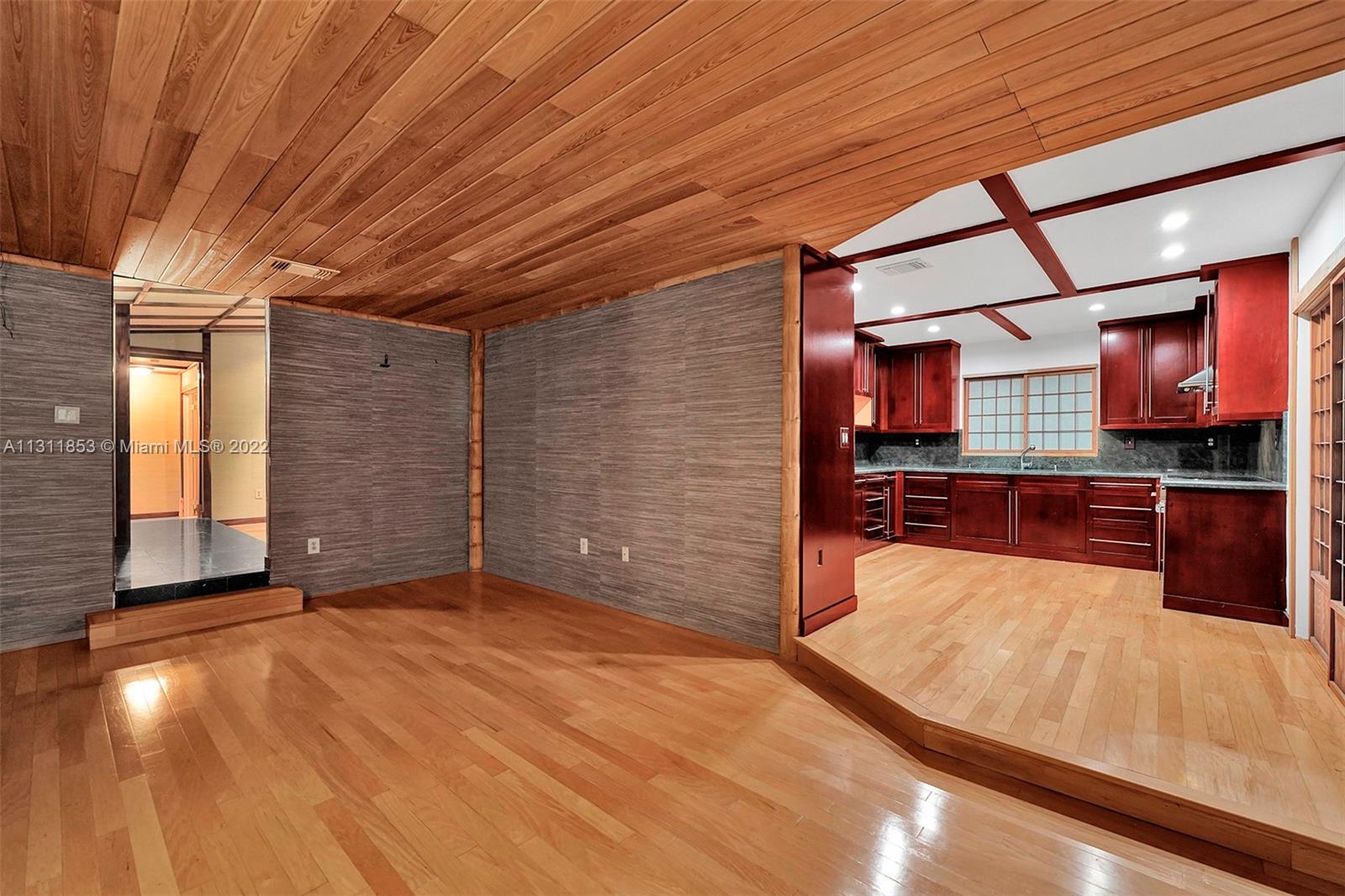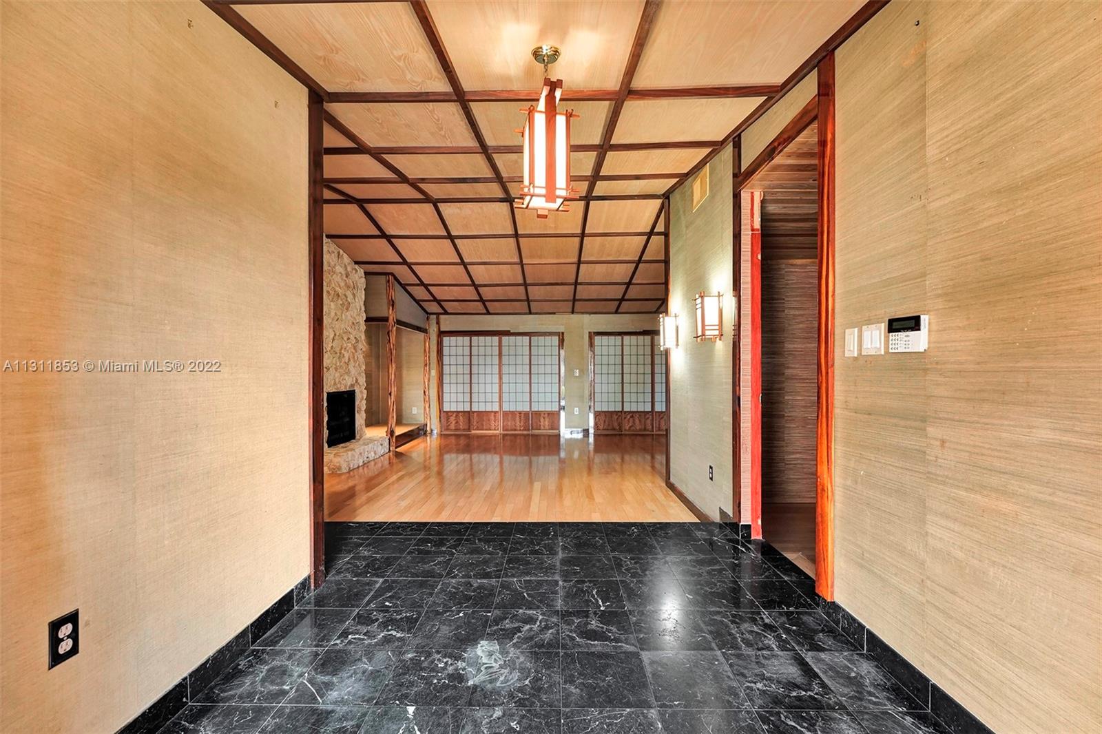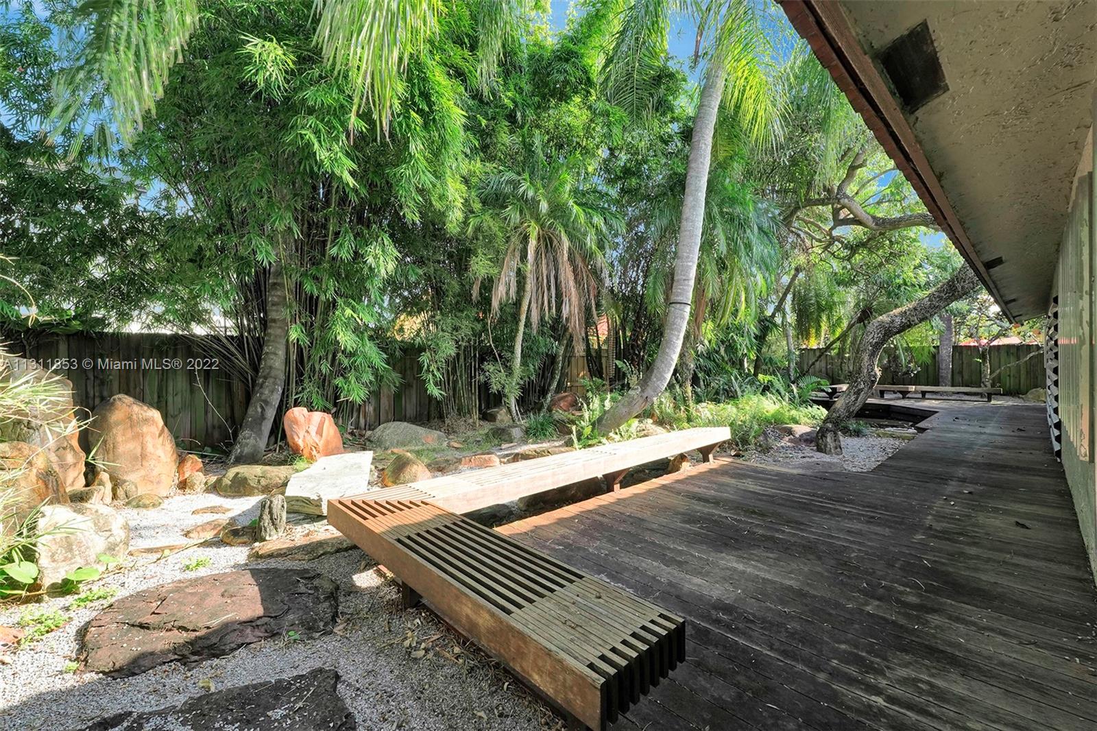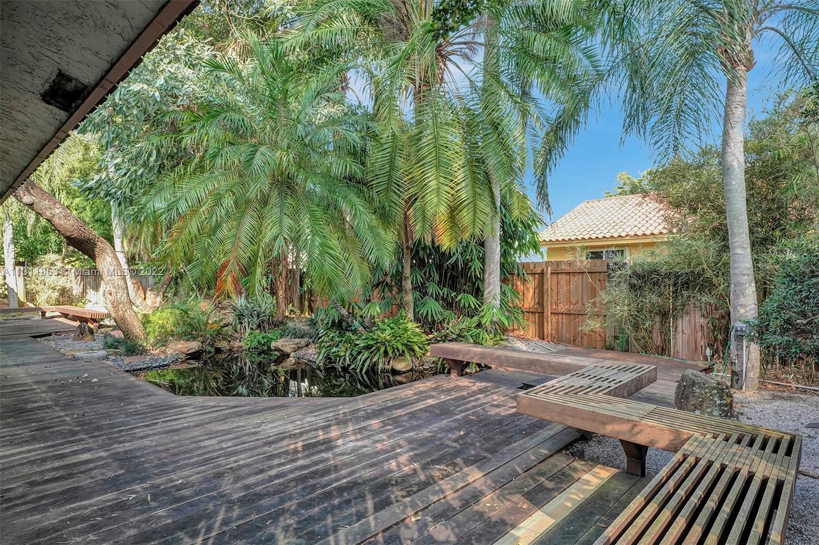 Unique Zen garden home nestled in lush Japanese style setting. Large 2042 Sqft 4/2 home (current use as a 3/2) with two car garage (converted into sound studio/music room). Beautifully landscaped property with Koi pond, waterfall, and elaborate filtration system including water cistern to hold fresh water. Special green glazed tile roof. Close to shopping centers, parks, restaurants, grocery stores, turnpike, palmetto expressway and other major highways. $35 quarterly HOA fee for clubhouse and park located at 6200 NW 188 Terrace.