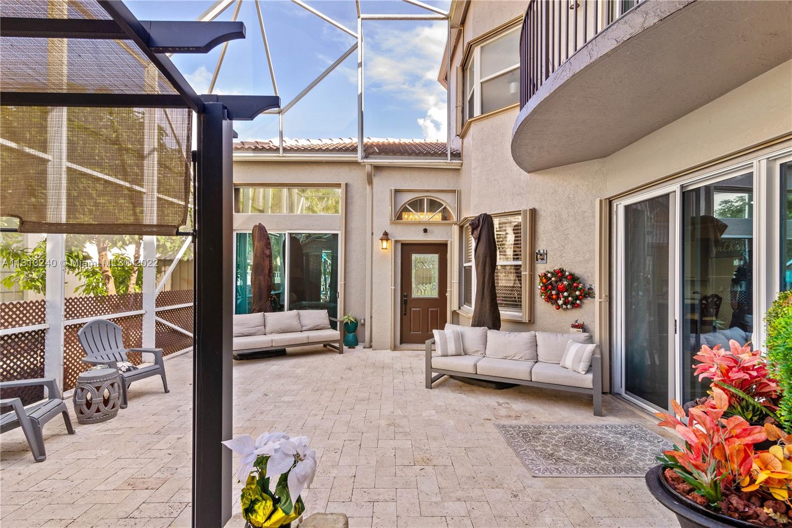 Absolutely stunning!!! Unique & rarely available 3 Bed 2.5 Bath main house + guest suite w/ on-suite bath (an additional 238SF of living space). Property features interior courtyard w/ travertine floors & screen enclosure, a 12' ceiling great room w/ open view to pool & lake, spacious layout & 2-car garage. Fabulous open kitchen w/ ALL NEW wood cabinetry, quartz counters & stainless appliances. Screened, saltwater pool newly refinished w/ travertine deck. BRAND NEW ROOF by Paul Bange Roofing. Beautifully renovated throughout, tile floors, bathrooms, all new double pane sliding doors, new A/C, all new ext & int lighting, super gutters, freshly painted. Very sought-after gated community featuring multiple pools, parks w/ baseball & soccer fields, tennis & basketball courts & playgrounds.