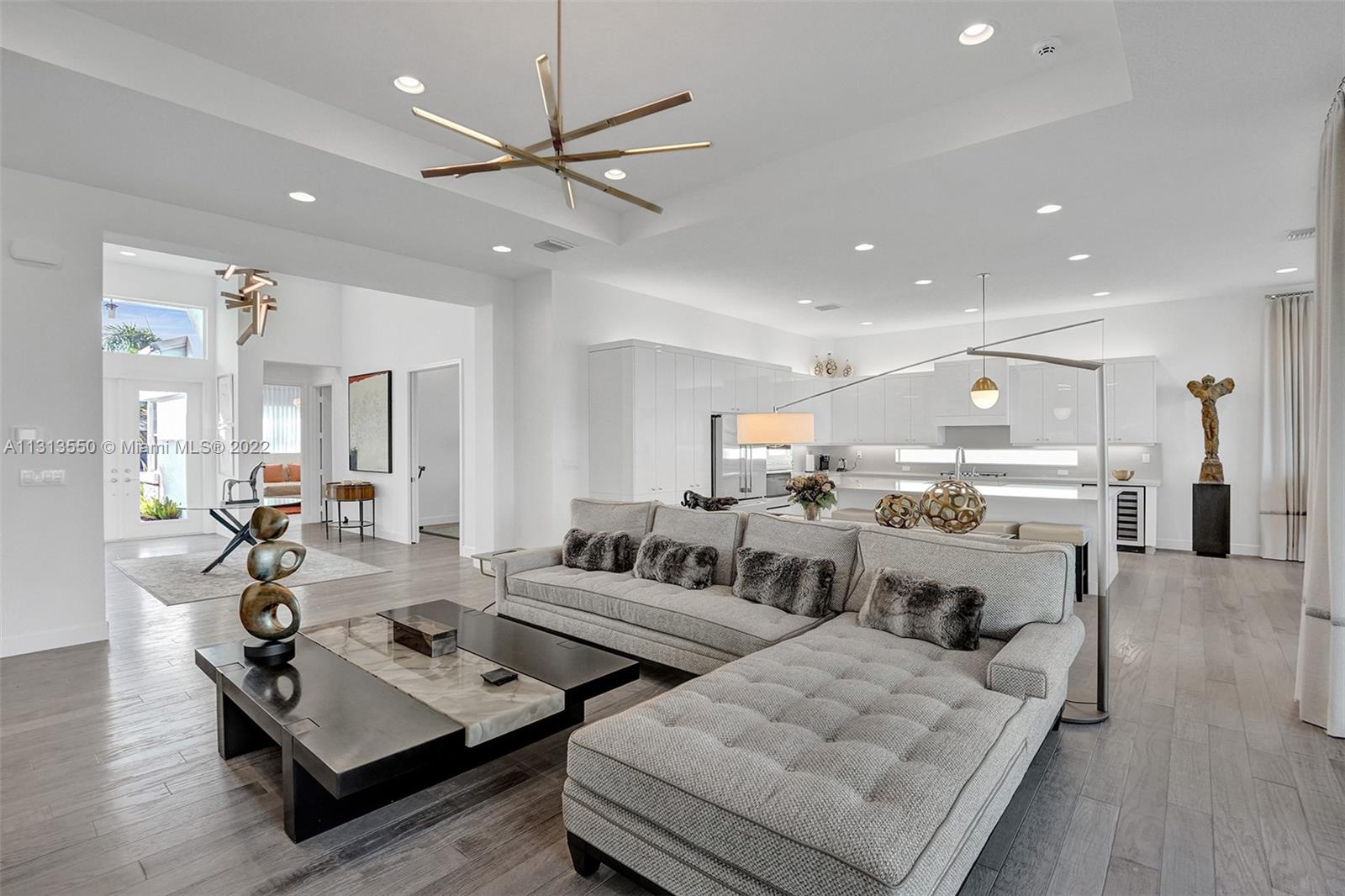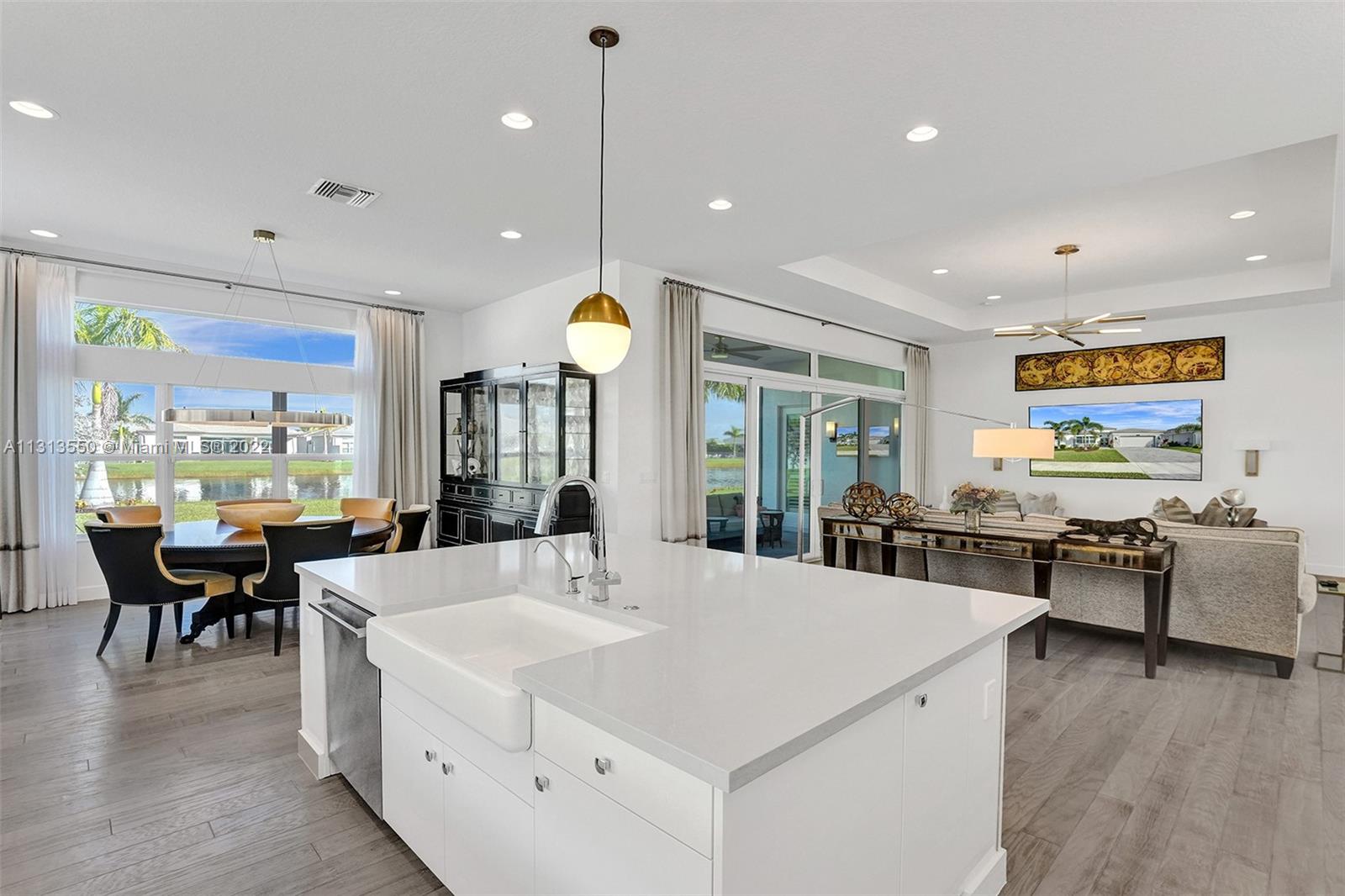 This brand-new construction home combines best of everything in the highly coveted active 55+ community Valencia Sound. The home honors sophisticated décor & design which make it unique w/ charm and modern amenities. Open floor plan brings in tons of natural light, beautiful kitchen, SS appliances & oversized island overlooking dining room & great room perfect for entertaining. 2 Master bedrooms & large Den. Oversized waterfront lot, this gem is ready for quick occupancy. Over $250,000 upgrades so it’s difficult to list them all. Engineered wood throughout and tiles in bathrooms, exquisite white gloss cabinets in kitchen & bathrooms w/ quartz countertop, built in closets, designer light fixtures, nice window treatments, frameless shower enclosures, solid core doors, extended garage & more.