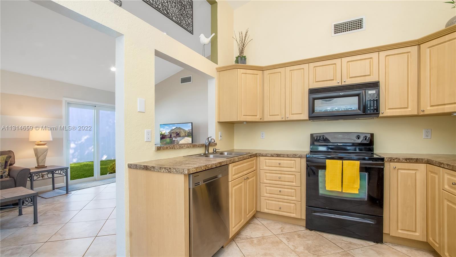Immaculate home in beautiful city of Pembroke Pines, FL. This is a true 3 bedrooms 2 full baths, 1 car garage with 18" tile throughout. Feel the breeze at the gorgeous backyard and enjoy your evenings on the lovely deck. This home features newer Electric panel and appliances, Samsung dishwasher, 4 year old full ton a/c unit with pump for faster drainage, front and back Ring camera system, sprinkler system and fully wired for surveillance. Low HOA fee only $ 110 per month. Friendly community with lots of amenities that include swimming pool, tennis court, playground, pavilion with BBQ perfect for parties and 24 hour security patrol. This is the one!