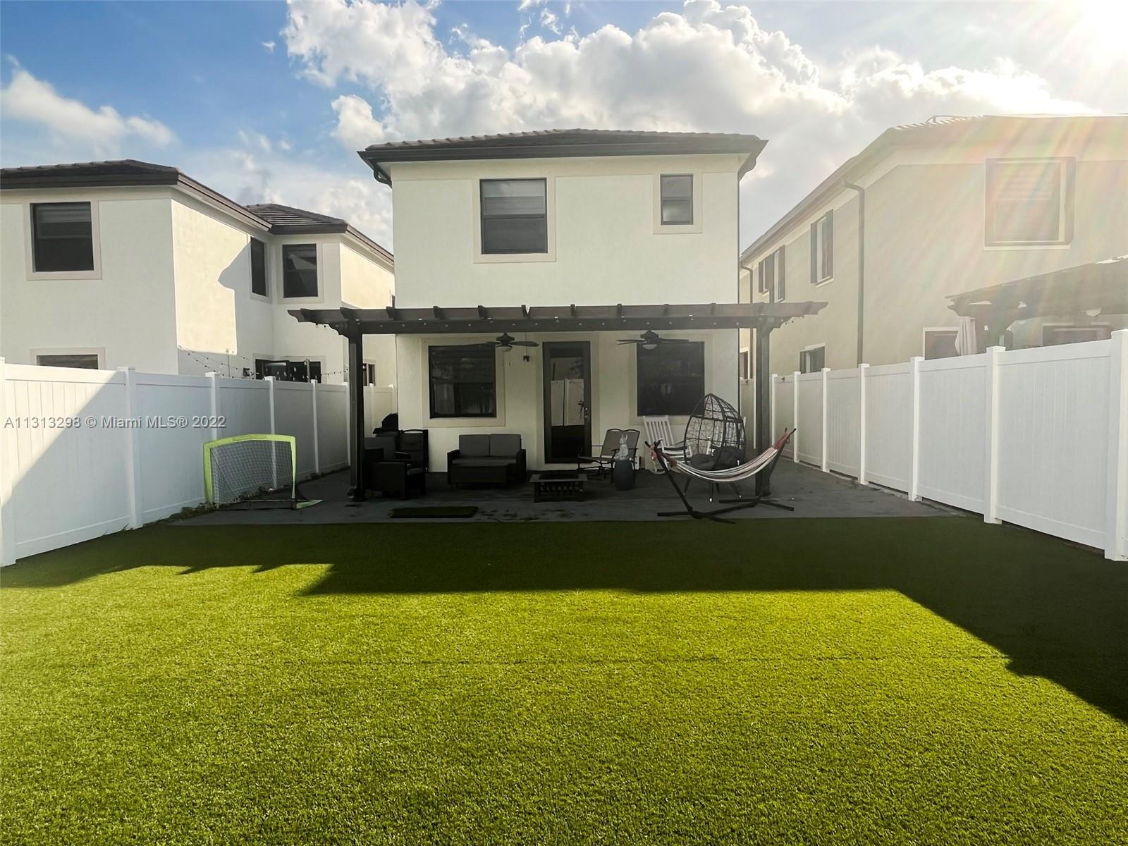Beautiful! single-family " Smart Home" featuring 4 Bdr, 3 full baths with one of the bedrooms on the ground floor, open layout, stainless steel appliances, quartz countertops, large, fenced backyard, garage with 240v outlet for electric cars, keyless entry and more. The property is in the sought after community of AQUABELLA, Private gated community with 2 clubhouses, pools, fitness centers, water park for kids, plenty of parking spaces for visitors, close to major highways and much more. Must see