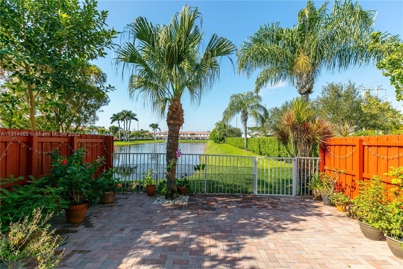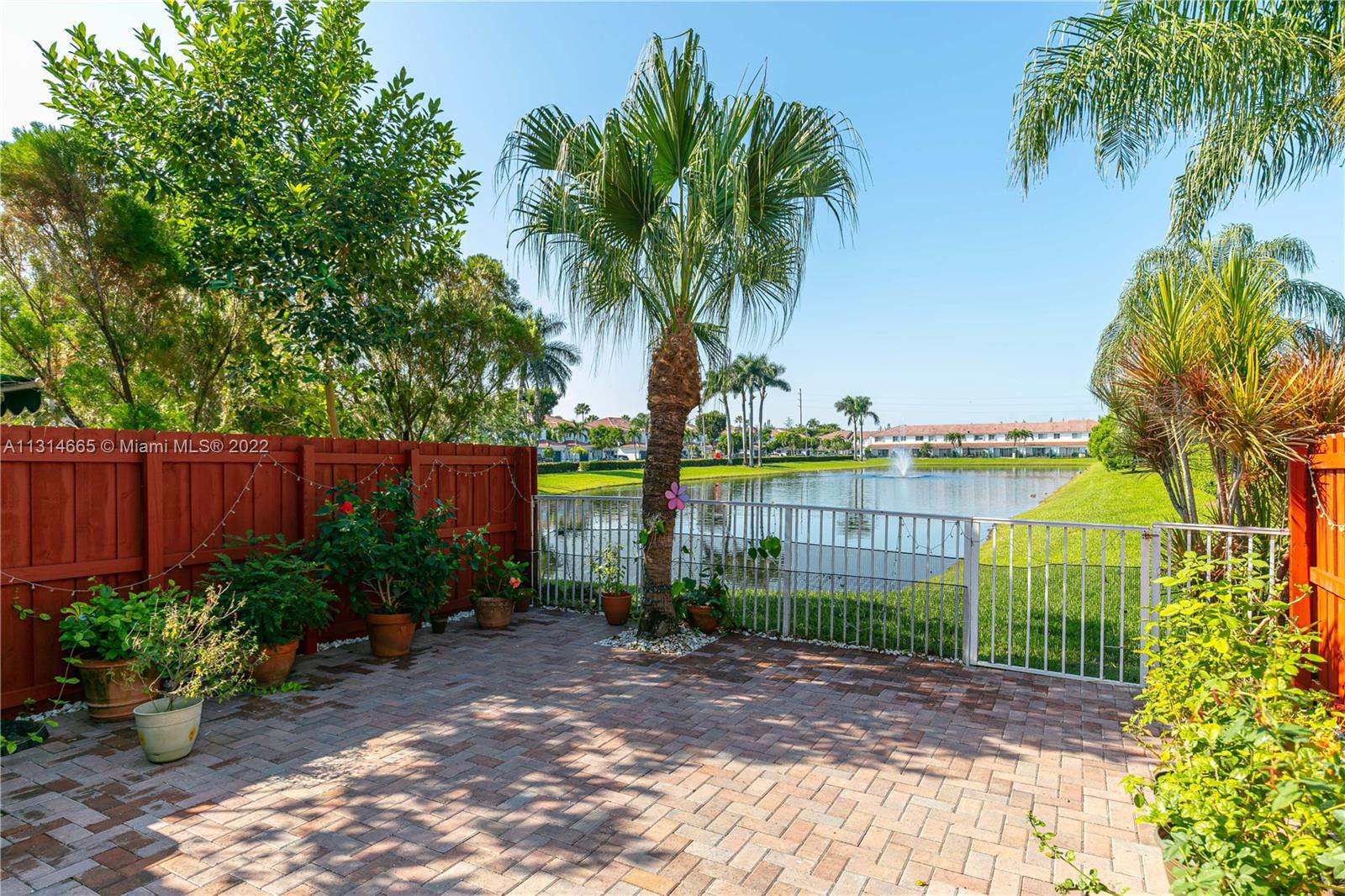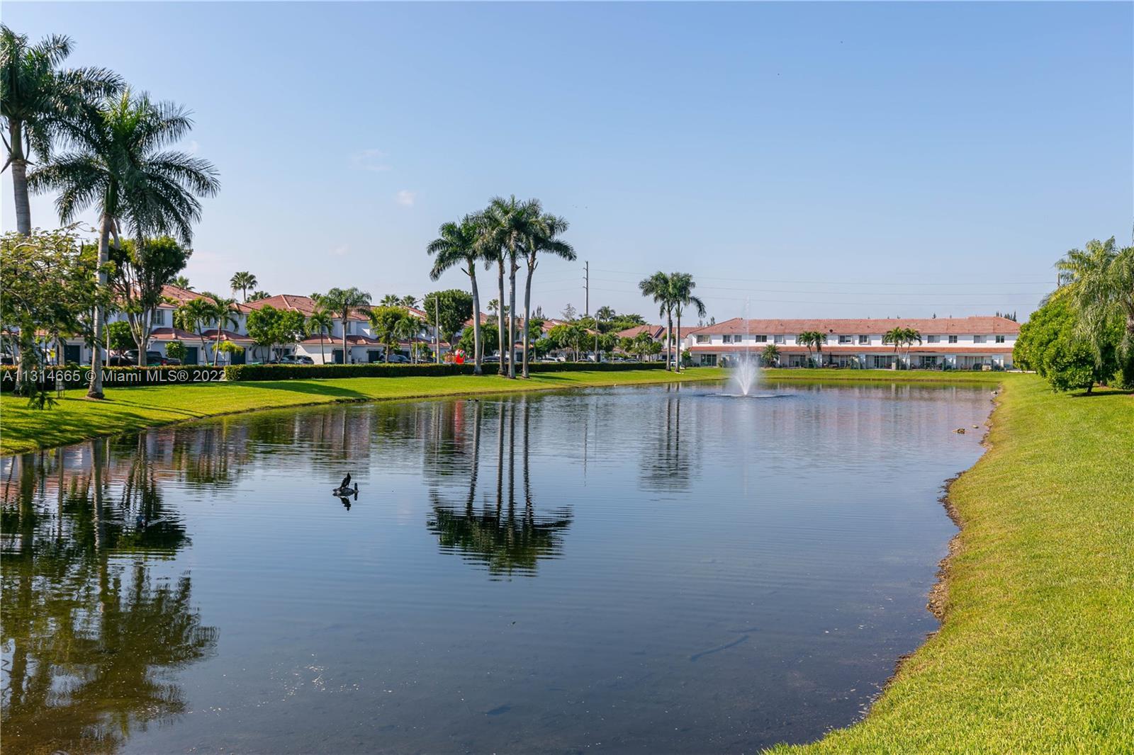Stunning corner townhouse in the gated community of Dimensions featuring amazing lake views on an extra lot with tons of natural light around the house. This beautiful townhouse has a spacious floor plan with 3 bedrooms and 2.5 baths, upgraded kitchen, upgraded bathrooms, formal dining room area, breakfast area at the kitchen, storage closet in the patio, master bedroom has a sitting/office area, tasteful master bathroom with double sink and a remarkable shower. New A/C (2021), sound system will remain in the property. This townhouse won't last. Bring your clients.