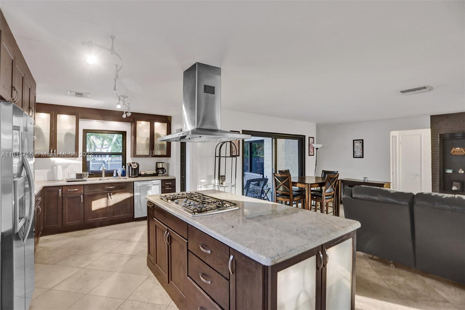 Imagine finding the perfect starter home that'll allow to host family birthday parties, friendly get together's, or the big game. Also, easy to Airbnb! This beautifully remodeled, 3 bedroom/ 2 bathroom in the heart of Hollywood Hills offers an open concept, dining and entertaining area with a huge island gas cooktop with seating. All hurricane impact windows and doors with tons of natural lighting. Plenty of covered, outdoor entertaining area and room for a pool with a private fenced backyard or just add a hot tub! Also enjoy hot water during any hurricane with a gas hot water heater. Separate laundry room next to the kitchen.