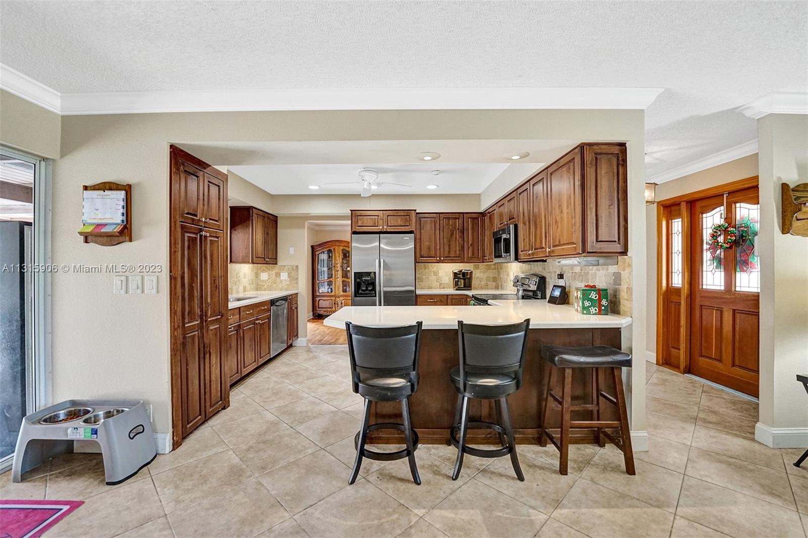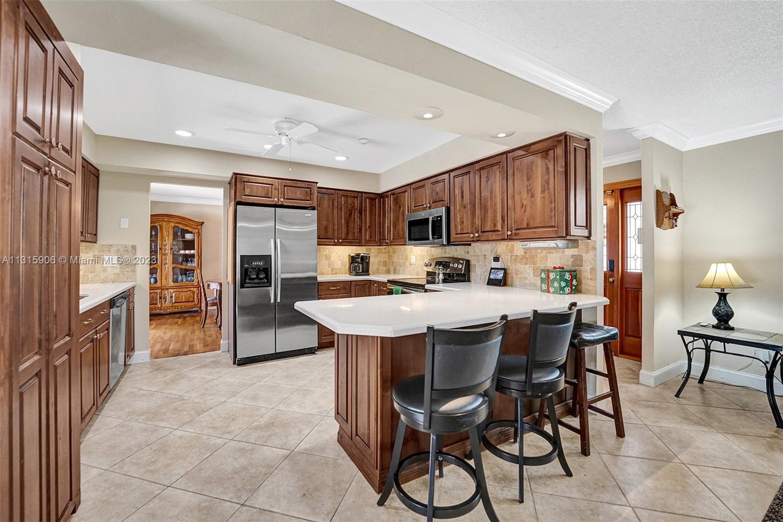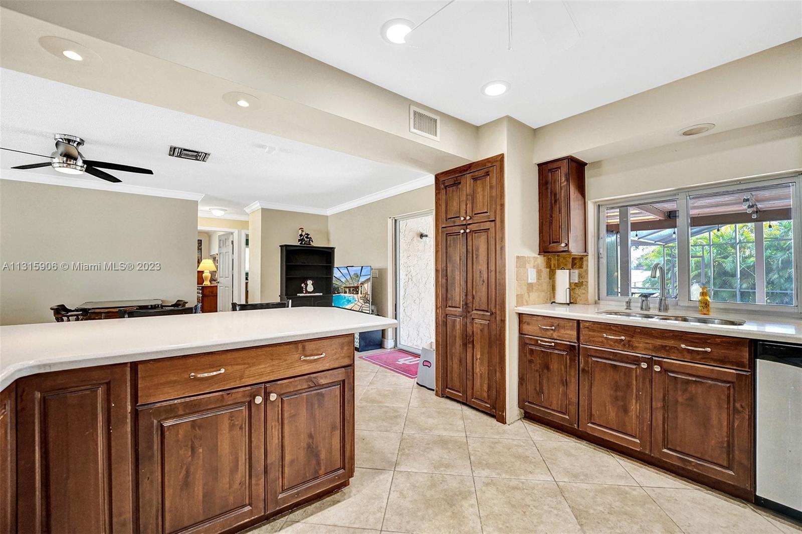 Rare find in Davie!! Location....Location! This 4 bedroom 2.5 Bathroom Pool home located on the water with Golf Course Views is located on a culdesac with NO Homeowners Association! Huge private backyard perfect for outdoor entertaining! Screened pool with covered area! Impact Windows, Roof (2021) A/C (2020), Remodeled Pool with salt water system (2022)! Electrical Panal updated! 2 Car garage was converted with permits to the 4th bedroom and 1/2 bathroom! Wood kitchen with silestone counters and upgraded Stainless Appliances! Hardwood floors/tile throughout, Crown molding throughout! Top School District! Centrally located for easy access to major highways, Trader Joes, Whole Foods, Shopping & Restaurants!