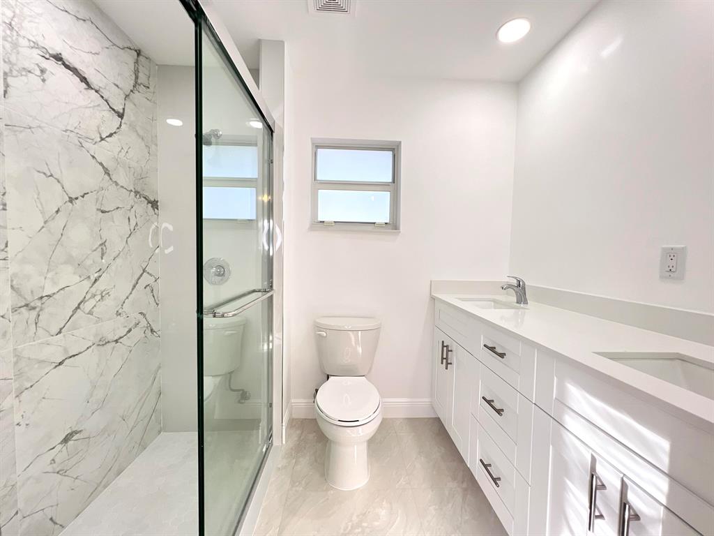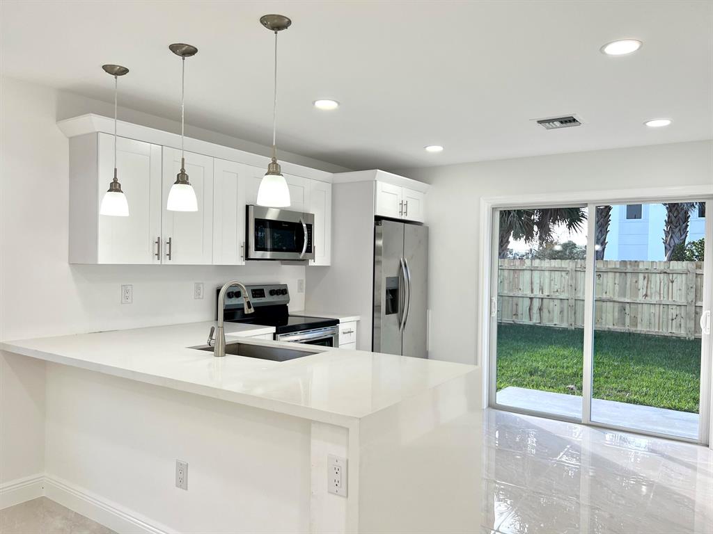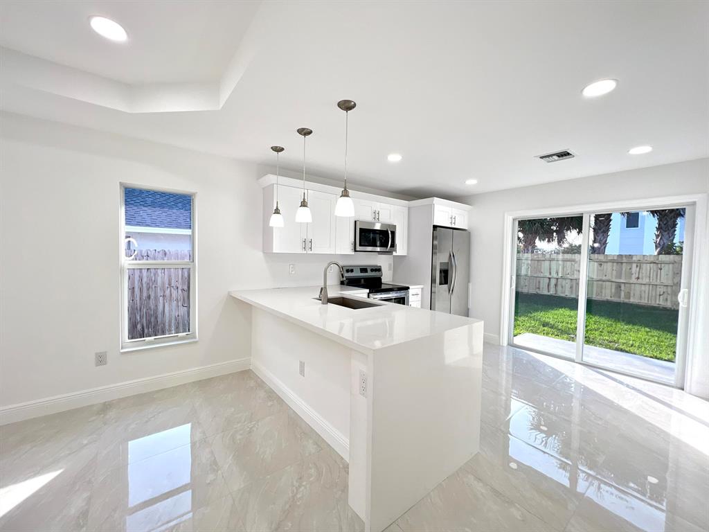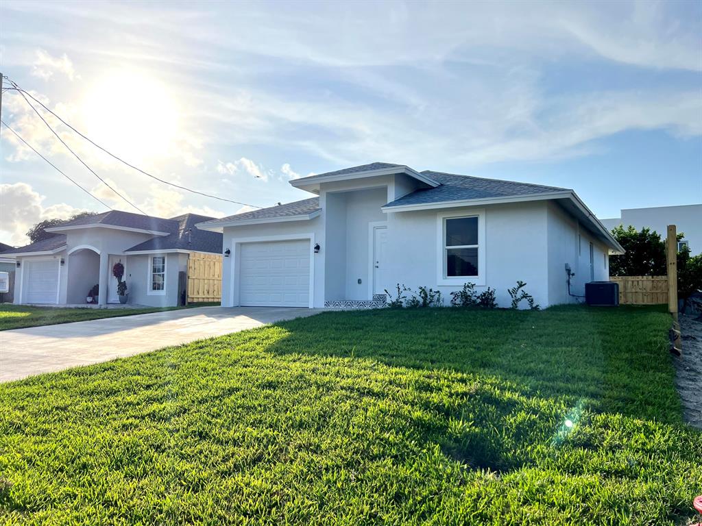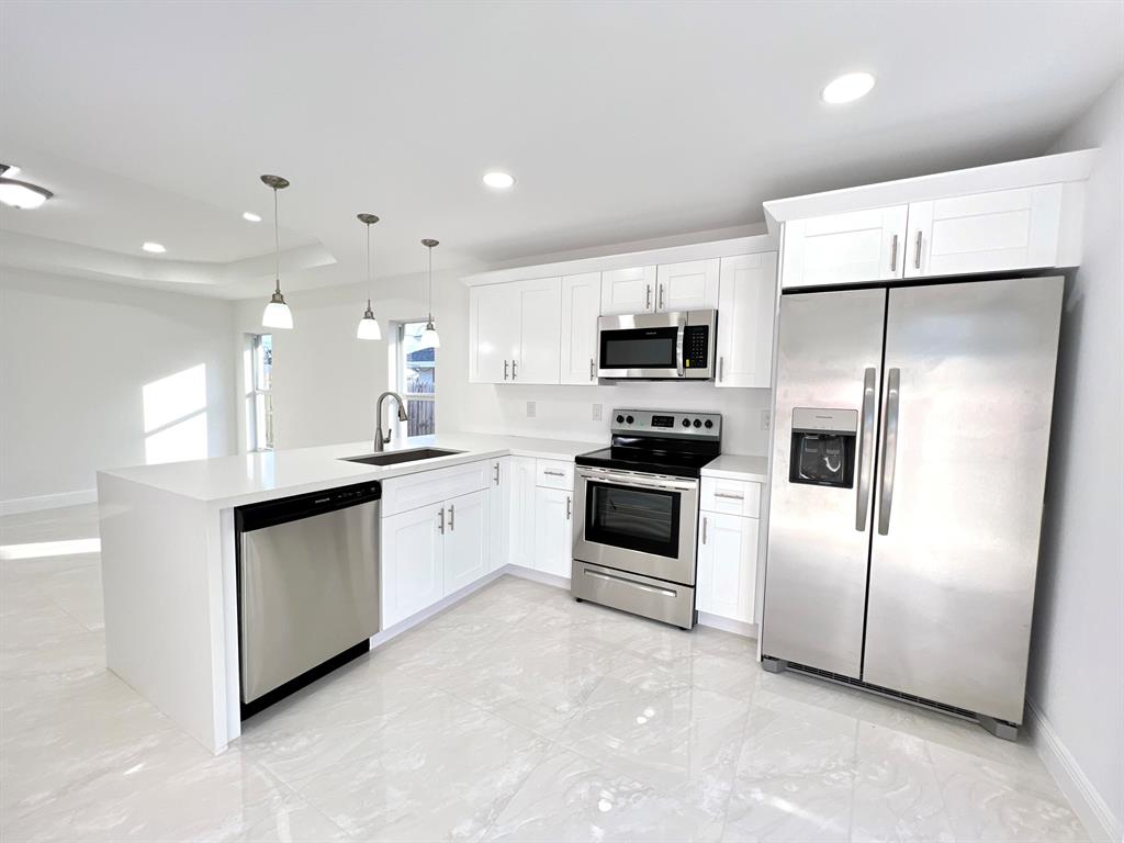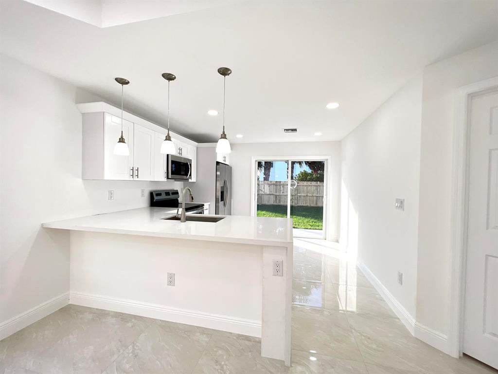 Gorgeous NEW CONSTRUCTION single family residence in the heart of West Palm Beach. The house boasts a bright, open living area and kitchen with quartz countertops, white wood cabinetry, stainless steel appliances. The property also features porcelain tile flooring, dual sink bathrooms, cathedral ceilings, impact doors and windows, and much more. Make this charming house yours today!