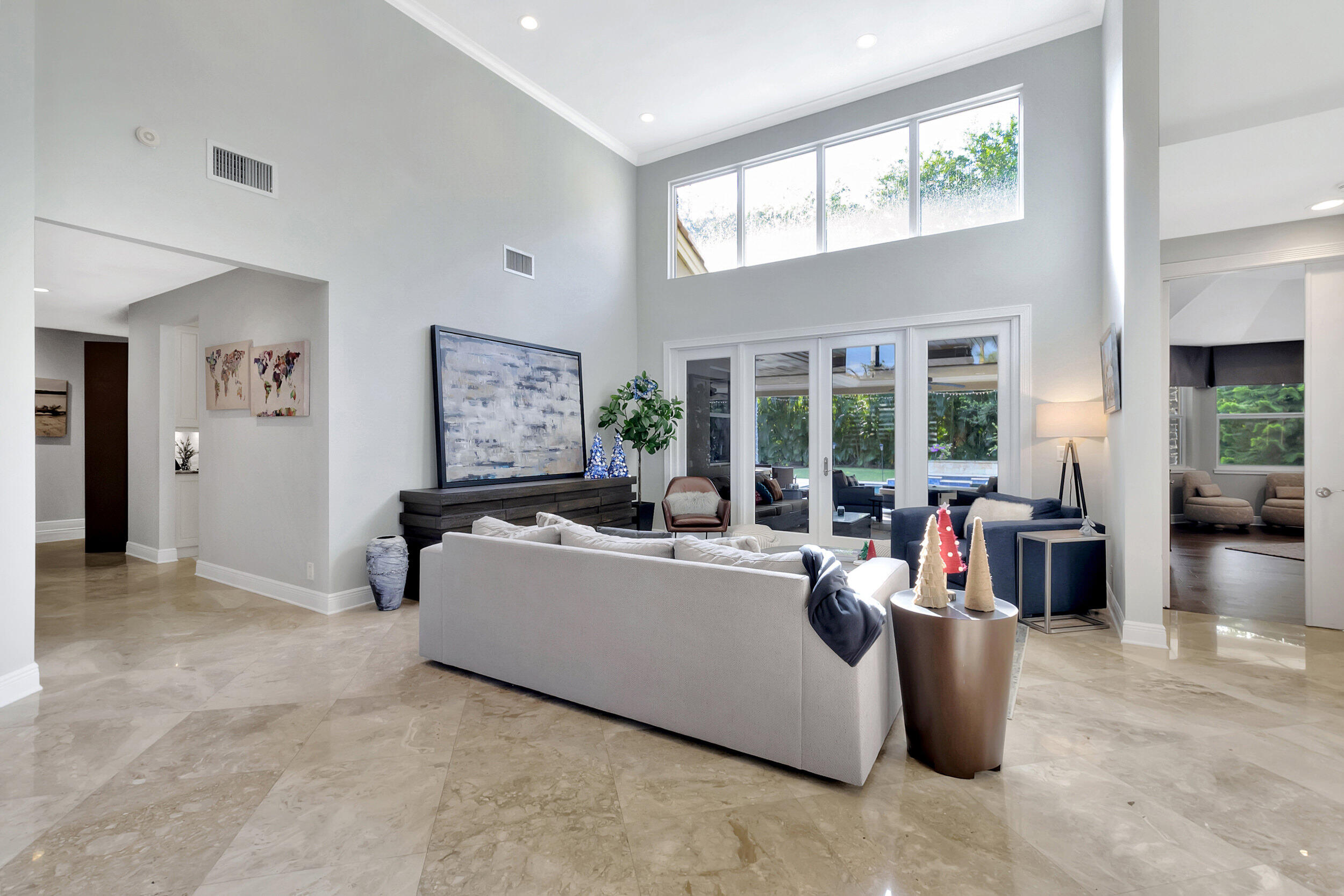 Beautiful 4 BD 4.5 BA + Office/5th bedroom one-story, estate home in highly coveted Devon Place of Woodfield Country Club. Split-bedroom plan allows for ample privacy, with all ensuite bedrooms. Spacious kitchen, open to breakfast nook and living room and enjoys gorgeous views of the backyard. Great house for entertaining, backyard offers the complete Florida lifestyle with an outdoor living room with television hookup, a full summer kitchen and bathroom, pool, patio and lawn.