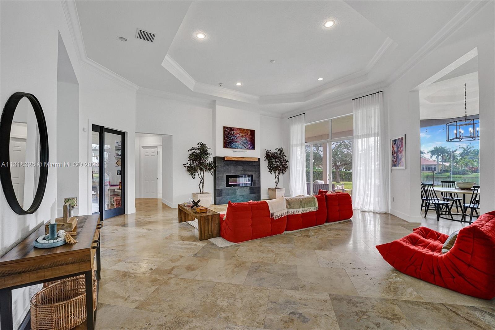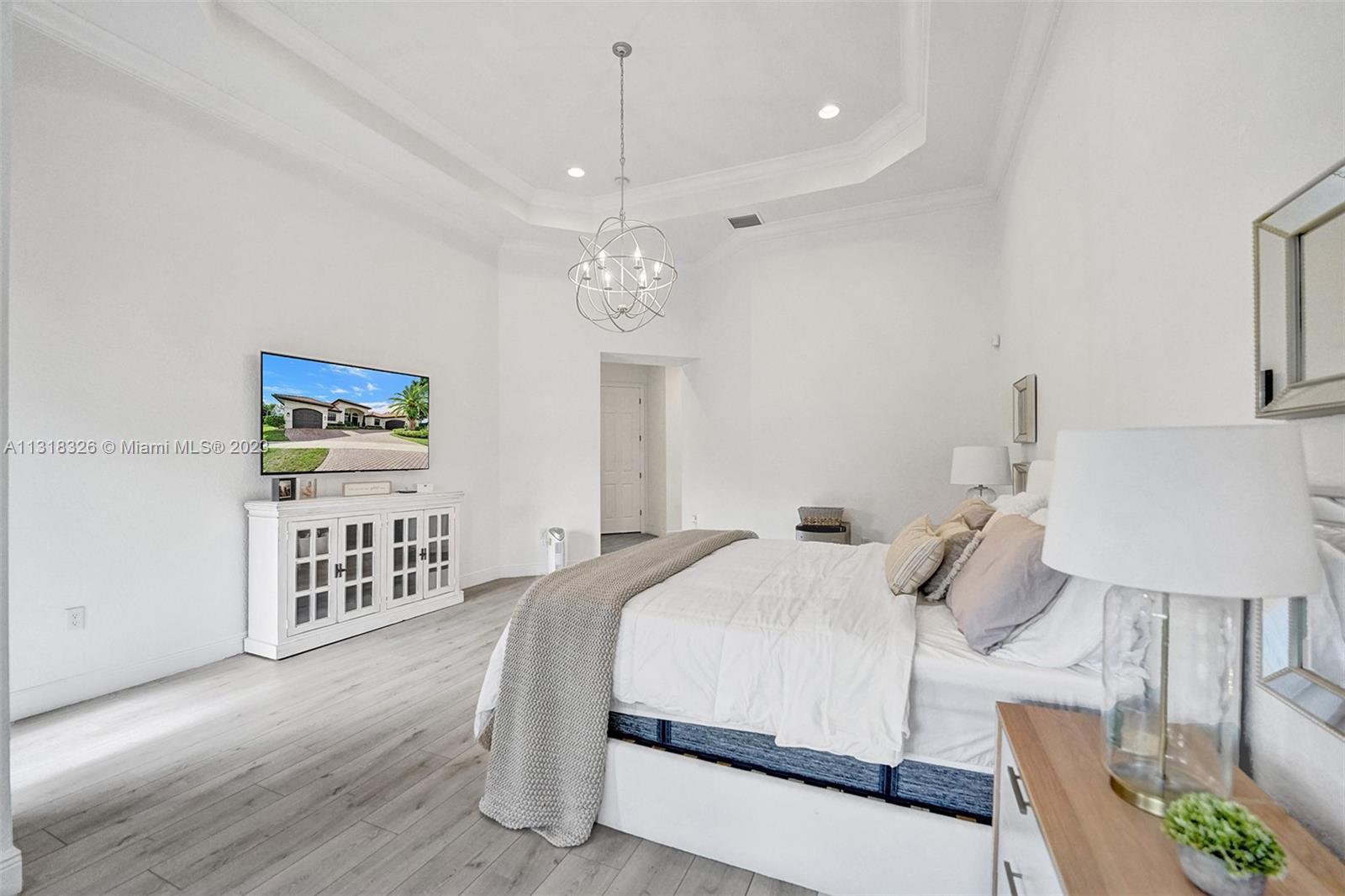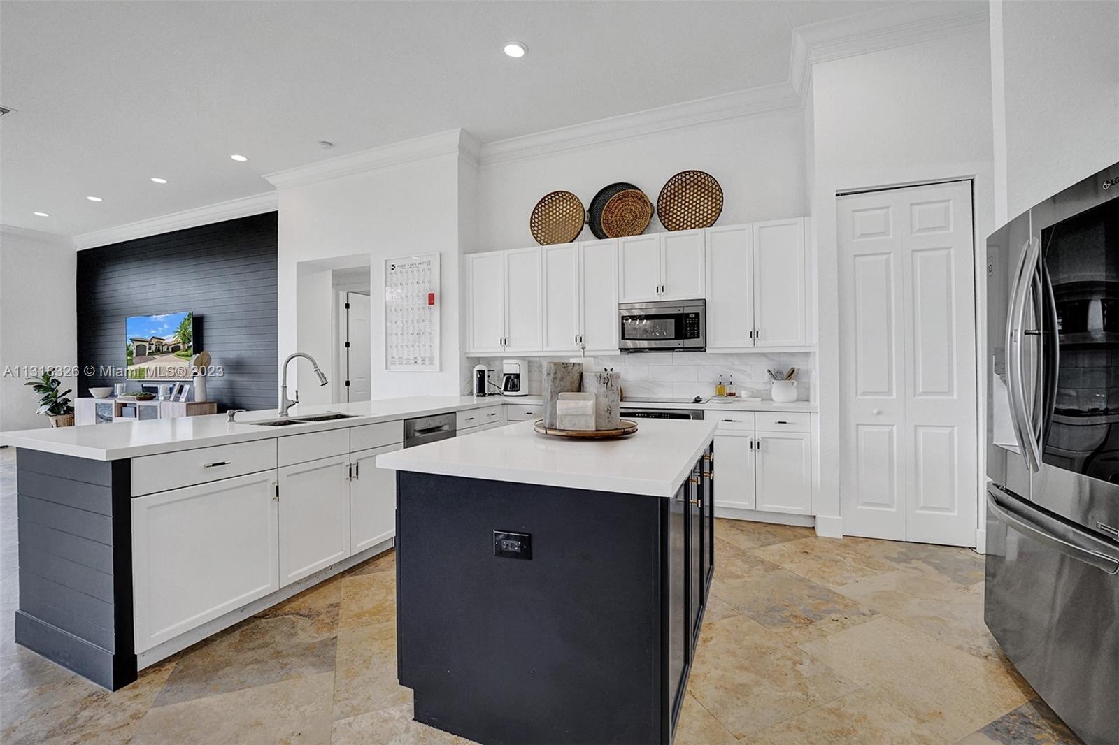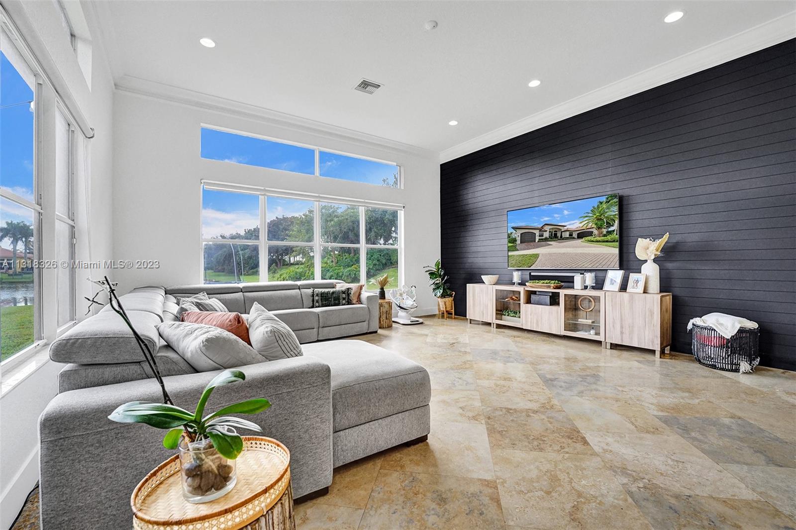 Your dream home is here. The most spectacular family-friendly single family home community in South Florida, Riverstone. This spacious corner waterfront property is located in a cul d sac and features a split bedroom floor plan with 6 bedrooms, 5.5 bathrooms, plus a bonus room/office and a 2 car garage. Open living spaces and large floor plan with 12' ceilings. The gourmet kitchen with wood cabinetry, quartz countertop and stainless steel appliances. Bathrooms have been completely upgraded modern style with quatz tops. Glass sliding doors that lead out to the rear patio terrace, where you will enjoy a perfect setting for relaxing and entertaining. This home has one of the largest lot in the community. A great place to raise a family