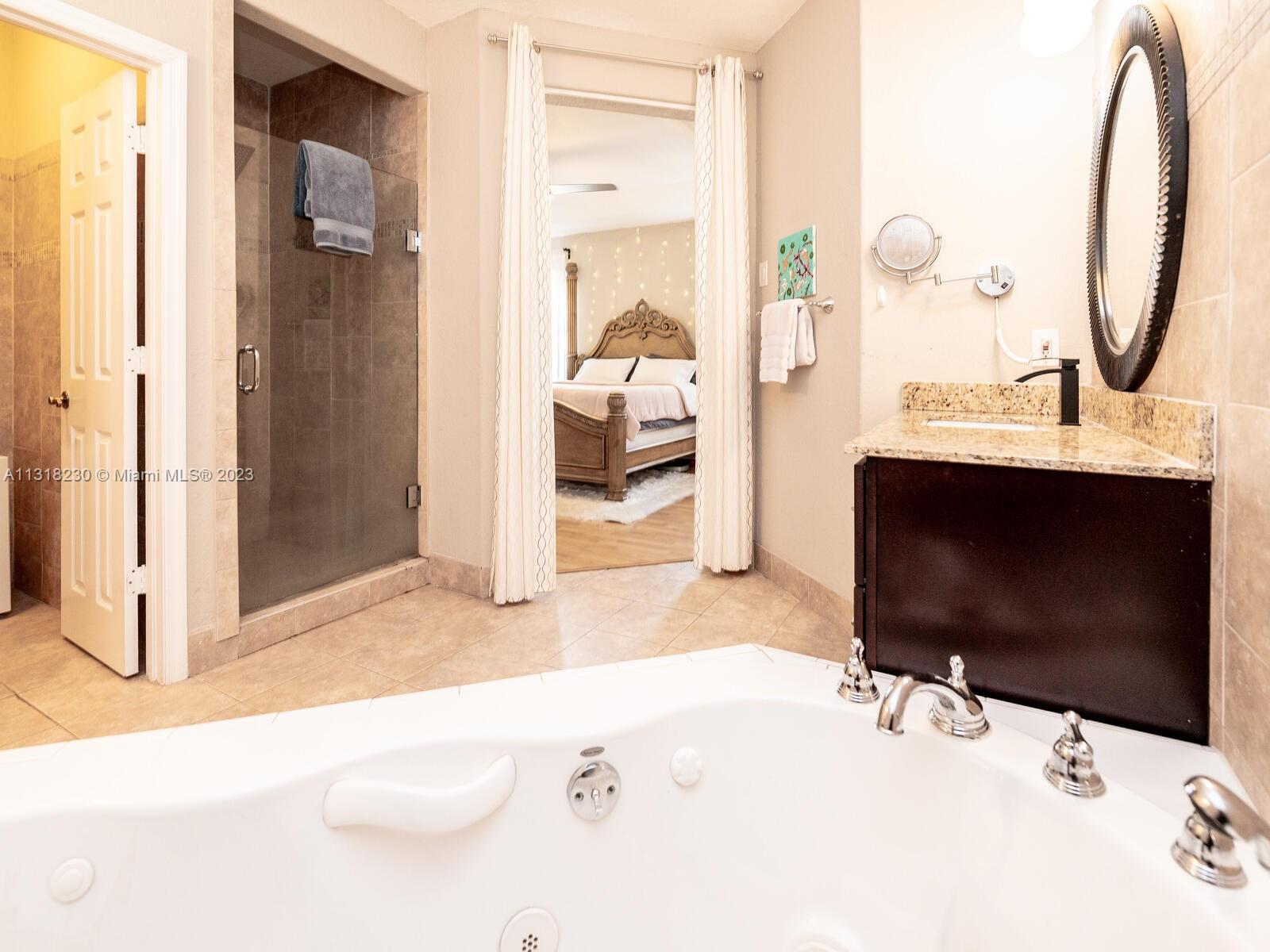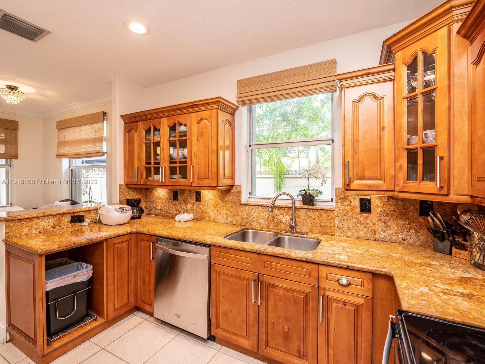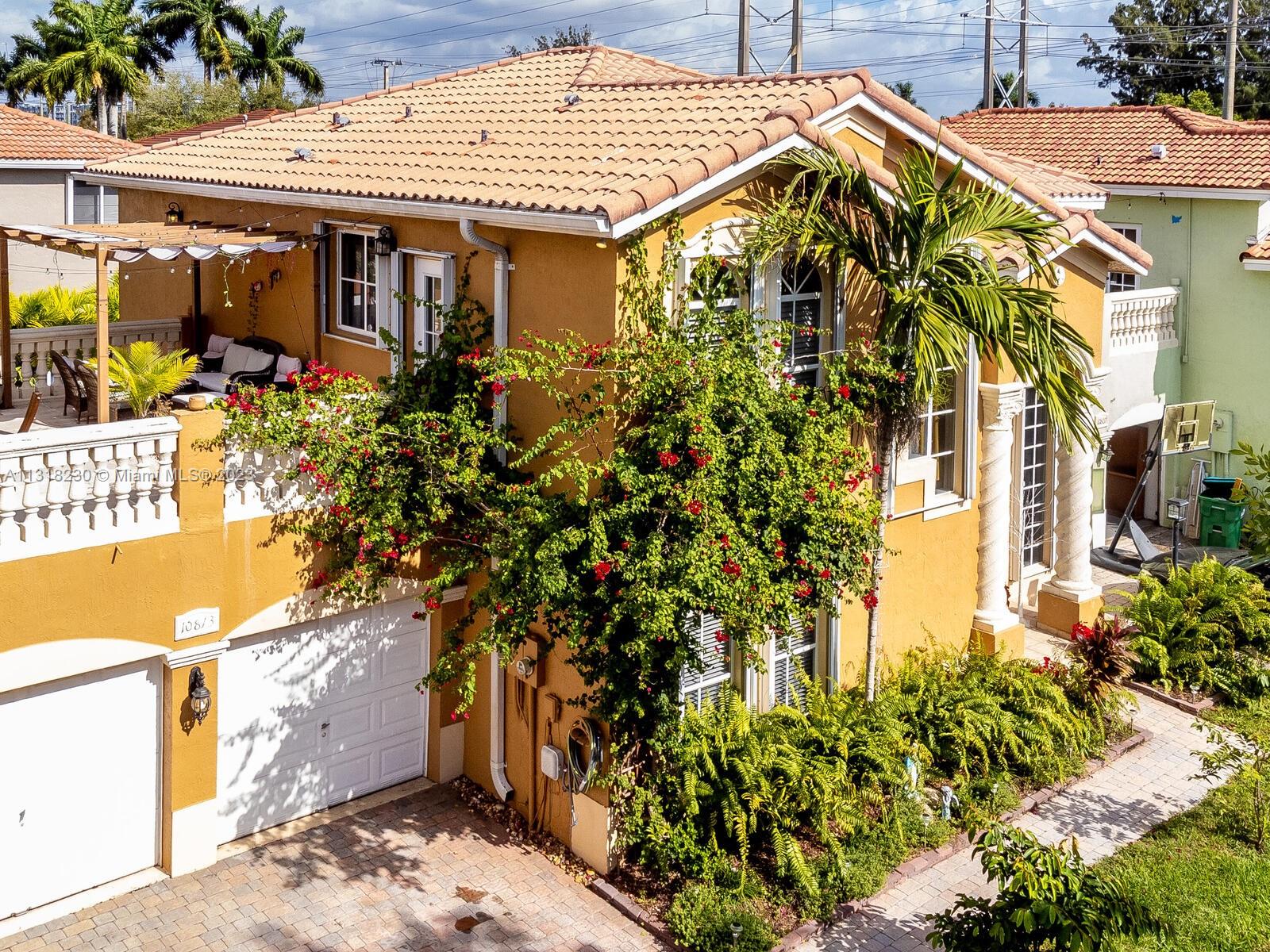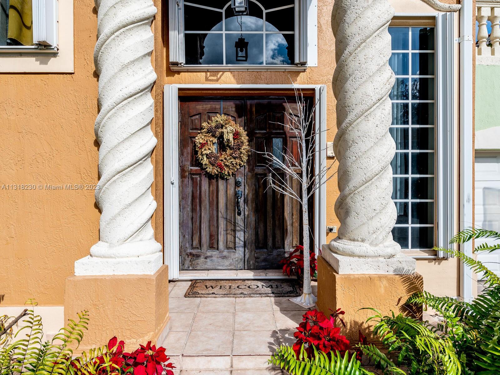REDUCED...Great Location, Spectacular Mediterranean style. 4BR 3.5 Bath home, formal living and dining room, huge family room, LOFT, roof top terrace/sun deck overlooking the spacious patio and your own in ground POOL. Eat-in kitchen with wood cabinets, granite countertops, and SS appliances, full bedroom and bath downstairs, tile downstairs and wood laminate 2nd floor. Hurricane rated accordion shutters. Large two car garage, Outside shower/cabana bath, low HOA includes gated security, alarm, cable, walking distance to schools, shopping, entertainment, basic cable TV and ADT monitoring included. BACK ON THE MARKET. ROOF NEEDS REPAIR. CASH ONLY. Offer with proof of funds