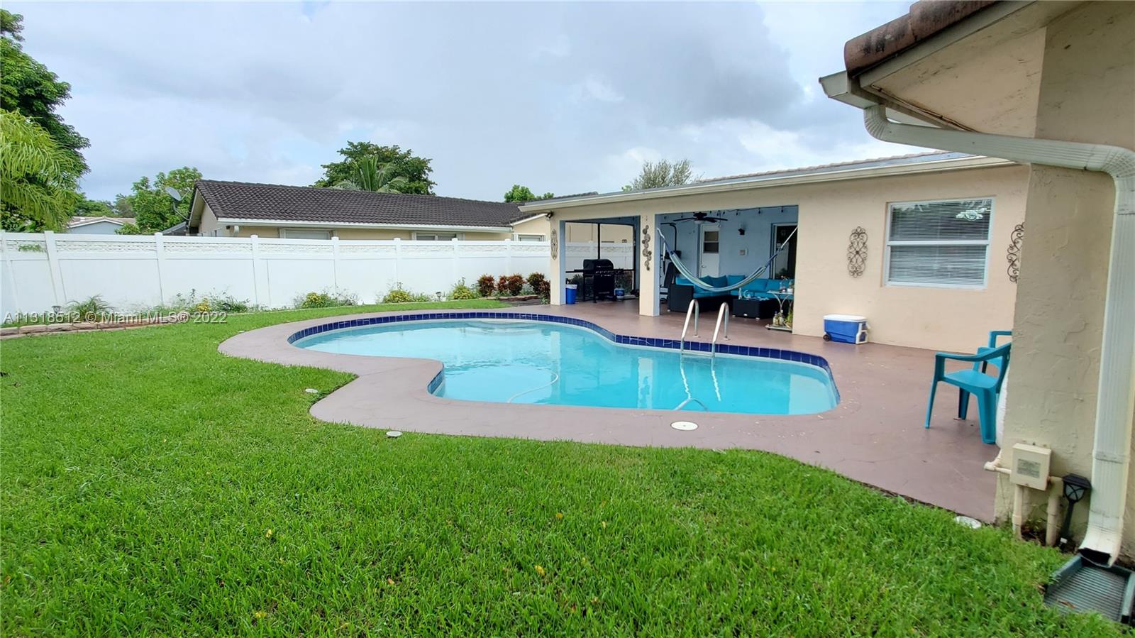 RARE TO FIND THIS SPECTACULAR 4 bed, 2 bath, one story home in a quiet cul-de-sac. NO HOA! Enjoy with your family the incredible BIG PATIO and POOL settled on a lot of approx. 10,464 SF. This upgraded, bright and polished kitchen features stainless steel appliances, granite countertops, and lots of beautiful wood cabinetry, plus dark maple hardwood floors in 2,152 SF under air conditioning throughout the formal dining room, formal living room and the family room. A separate laundry room (WH & Dryer). This home is perfect for families of any size. Conveniently located near University Drive, City Hall, grocery stores, schools, and restaurants. It will sell FAST!. Schedule a visit to next Saturday!
