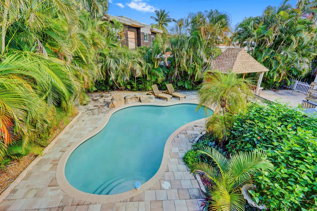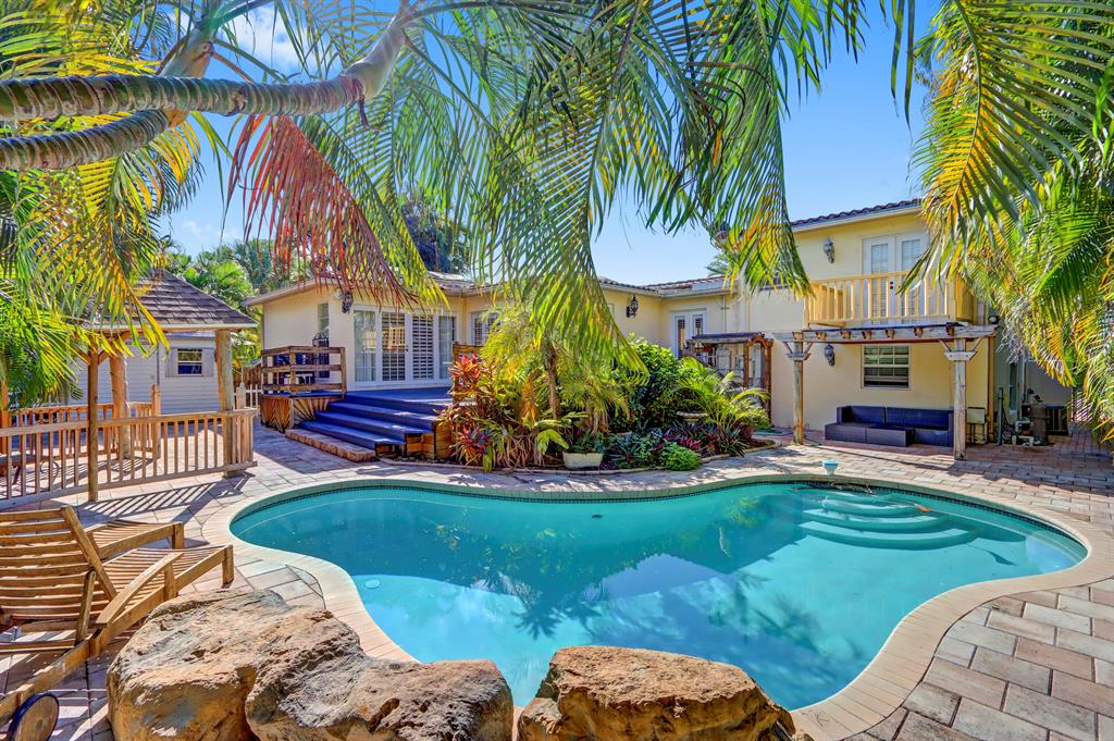 Tri-level home - 5 BD/3.5BA. Expanded over the past 20 years by approximately 1800 sf to build new foyer, kitchen, 2 large bedrooms - 1 with half bath; also custom Primary Suite with bedroom, bath, huge closet & office. The living room, dining room & 3 more bedrooms are original to the home. Gas fireplace; oak hardwood flooring; impact windows throughout. The backyard is completely private with 25 ft palm trees, pool, high deck, 2 gazebos, balcony, huge pool deck repaved in 2020, shed with electricity. Long paved 4-car driveway. Furniture negotiable. ** Please see ''More...'' regarding the attached 2 BD/2BA spacious apartment, perfect for kids staying at home, visitors & friends or can be easily turned back to original.