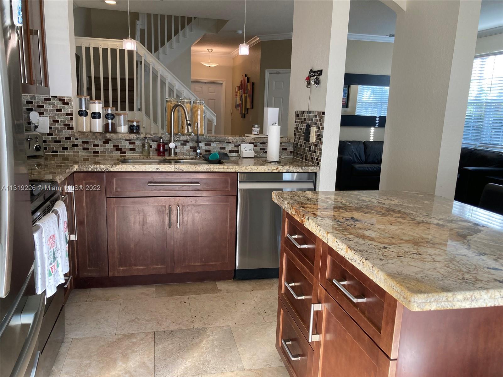 Beautiful corner townhome with 4 bed 2.5 bath and 1 car garage in a Cul de Sac. Kitchen upgraded with solid wood cabinets, granite counters, stainless steel appliances. Tankless water heater, newer AC unit, travertine floors throughout all first floor. Laminated on second floor. Oversize driveway for 6 cars, laundry room with new washer and dryer. Spacious and fenced back yard. Ready to move in