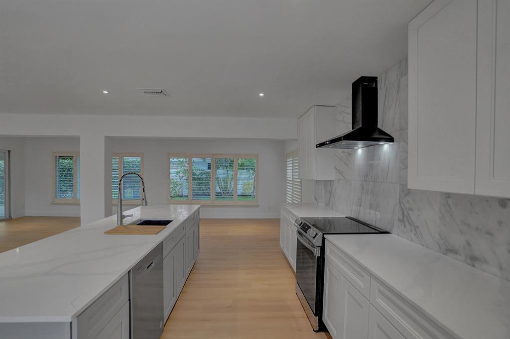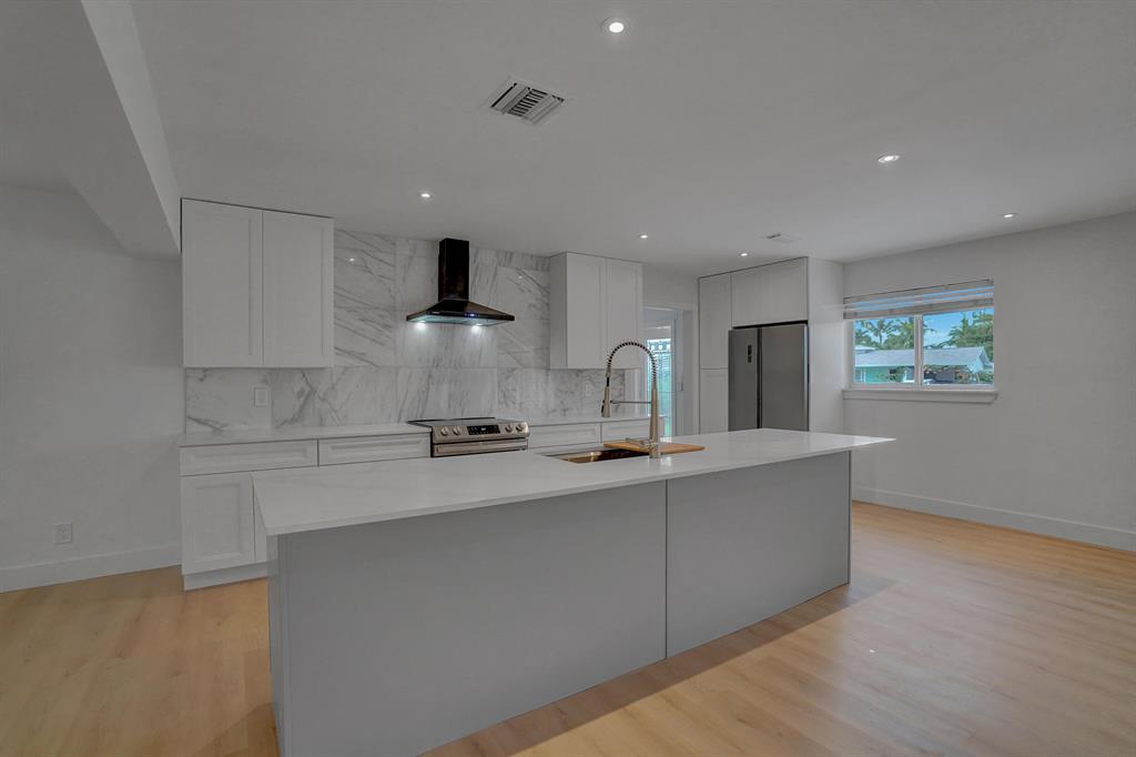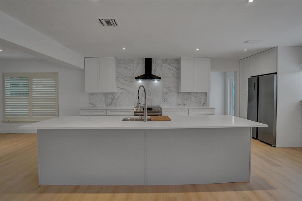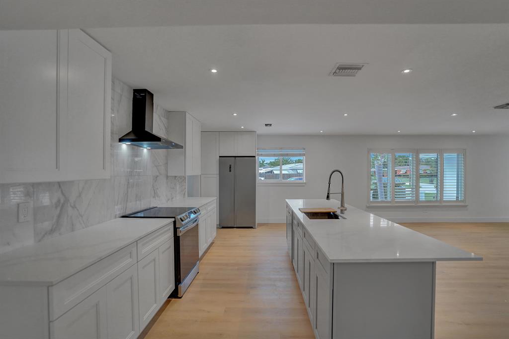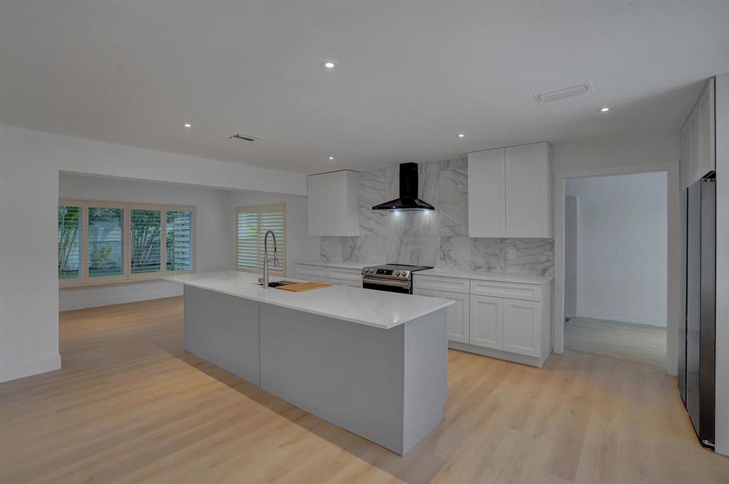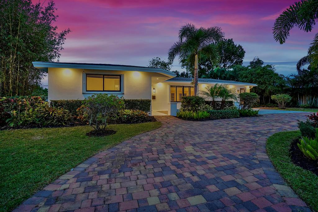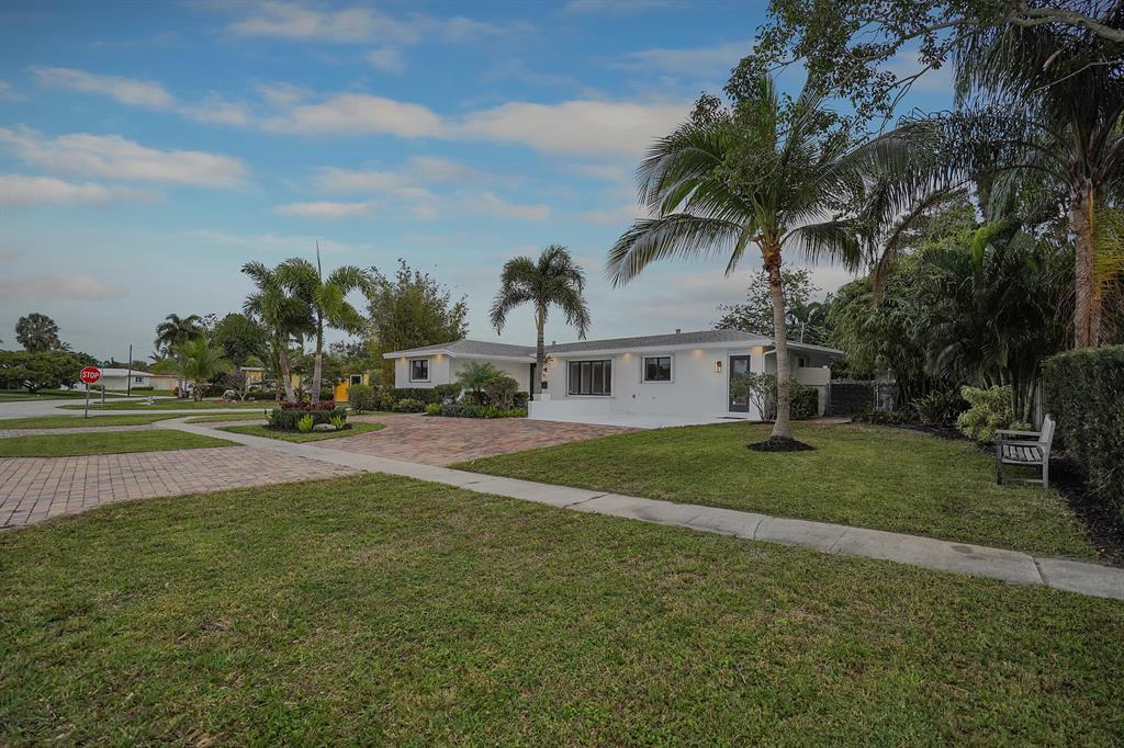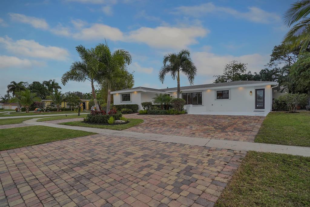 Exquisite modern design. Luxurious finishes. Sophisticated open-concept living. In the heart of east Boca Raton lies a mid-century modern home situated on a lushly landscaped corner lot with a grand ciruclar driveway. Experience the pinnacle of open concept living with a designer kitchen serving as the heart of the home. The kitchen boasts luxurious calacatta quartz countertops with a carrera marble feature wall, curated fixtures, and a 12 ft center island that serves as a versatile backdrop. The home features 3 bed/2 bath with a striking master bath ensuite inspired by Miami design. Further, partial impact windows, accordion shutters, fenced backyard, located in a charming community with no HOA in Boca Raton city limit. Minutes to beaches, downtown Mizner, and Lake Wyman Park